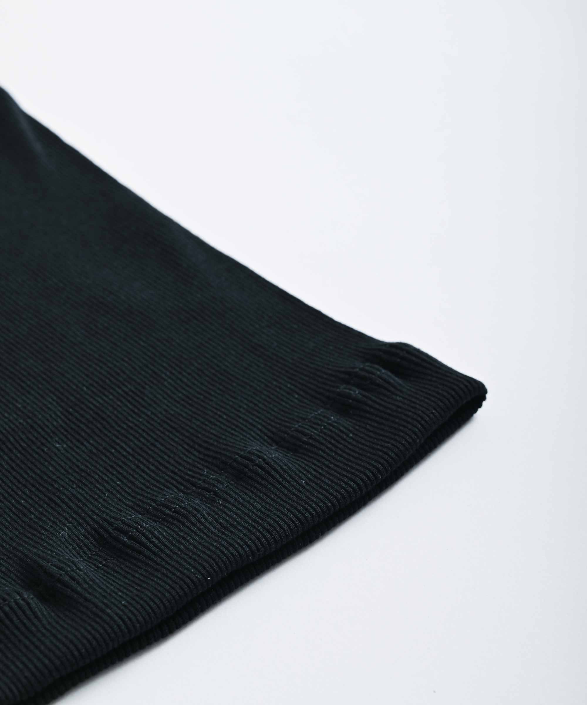 脇の縫い目がない丸胴リブ編みによる心地よいフィット感が特徴です。