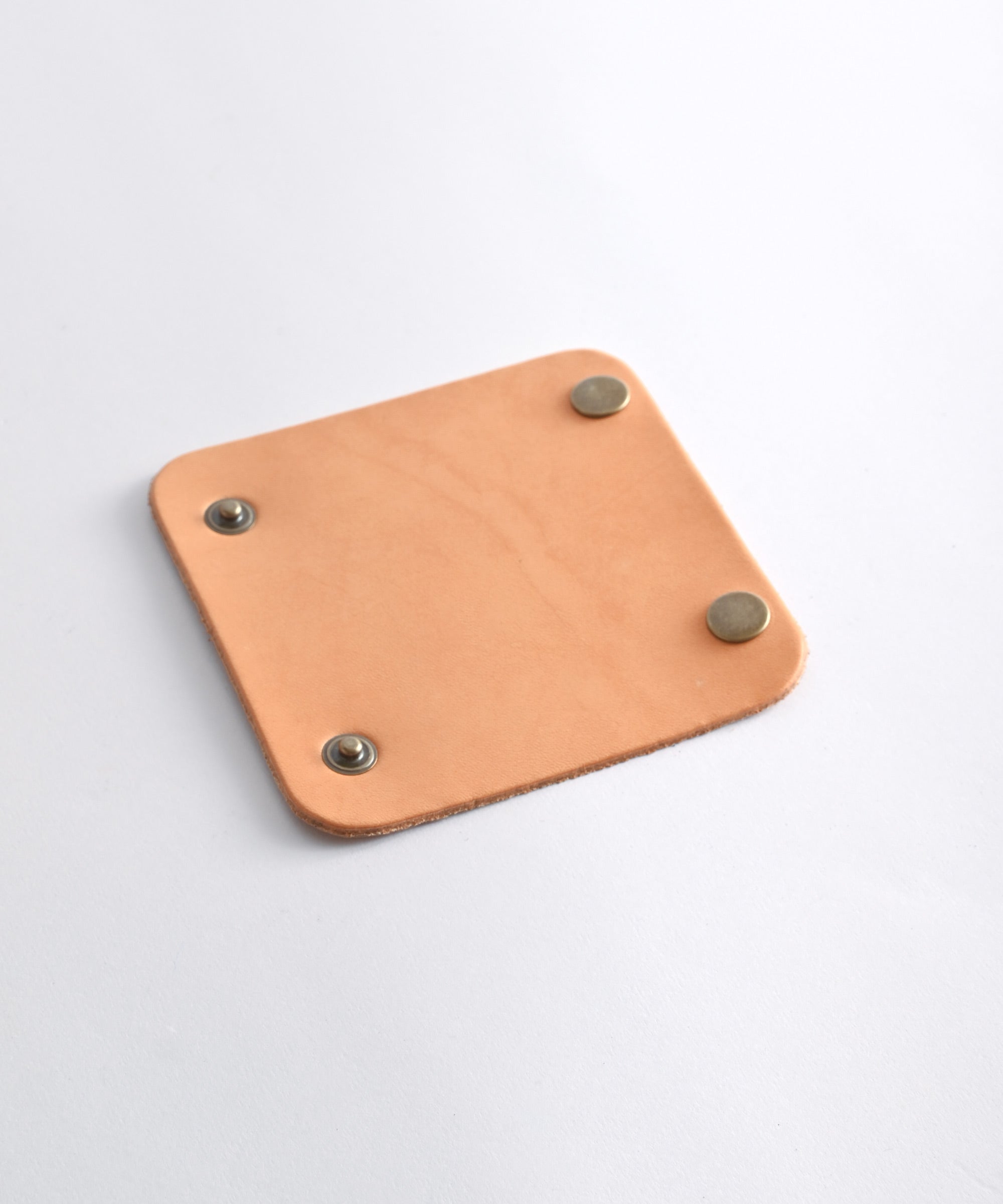 植物由来のタンニンで鞣されたハリのあるやや厚手ヌメ革を使用。