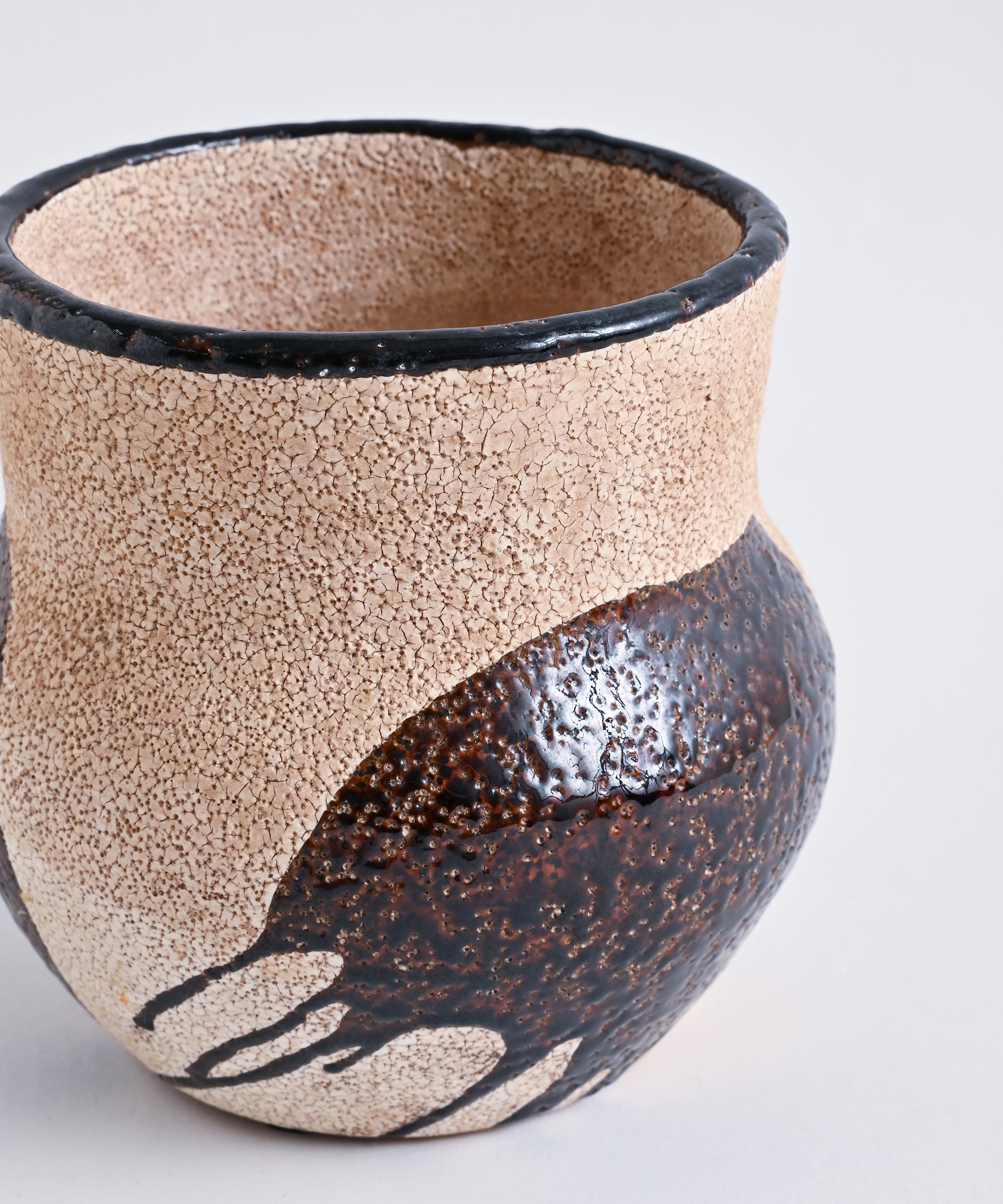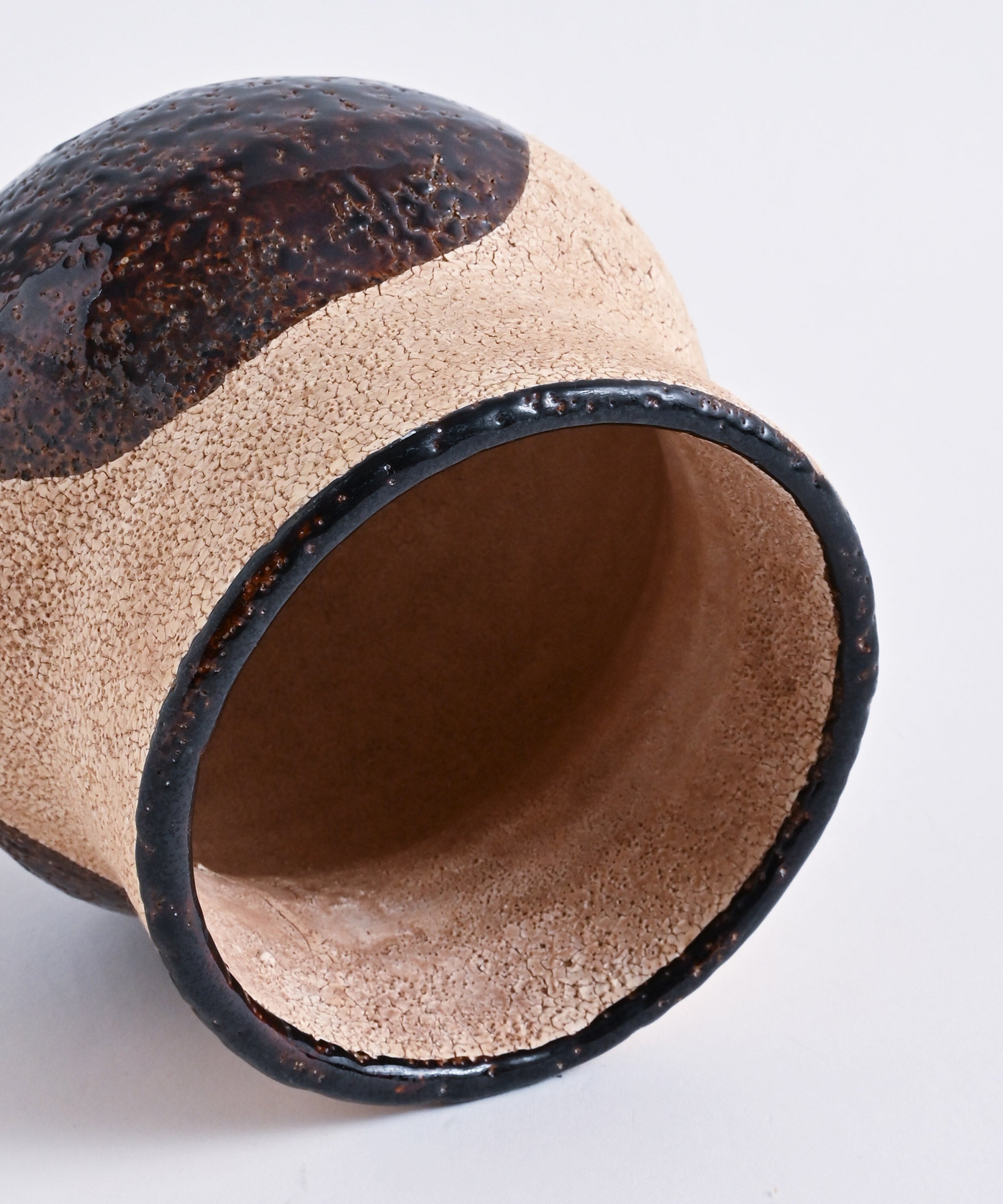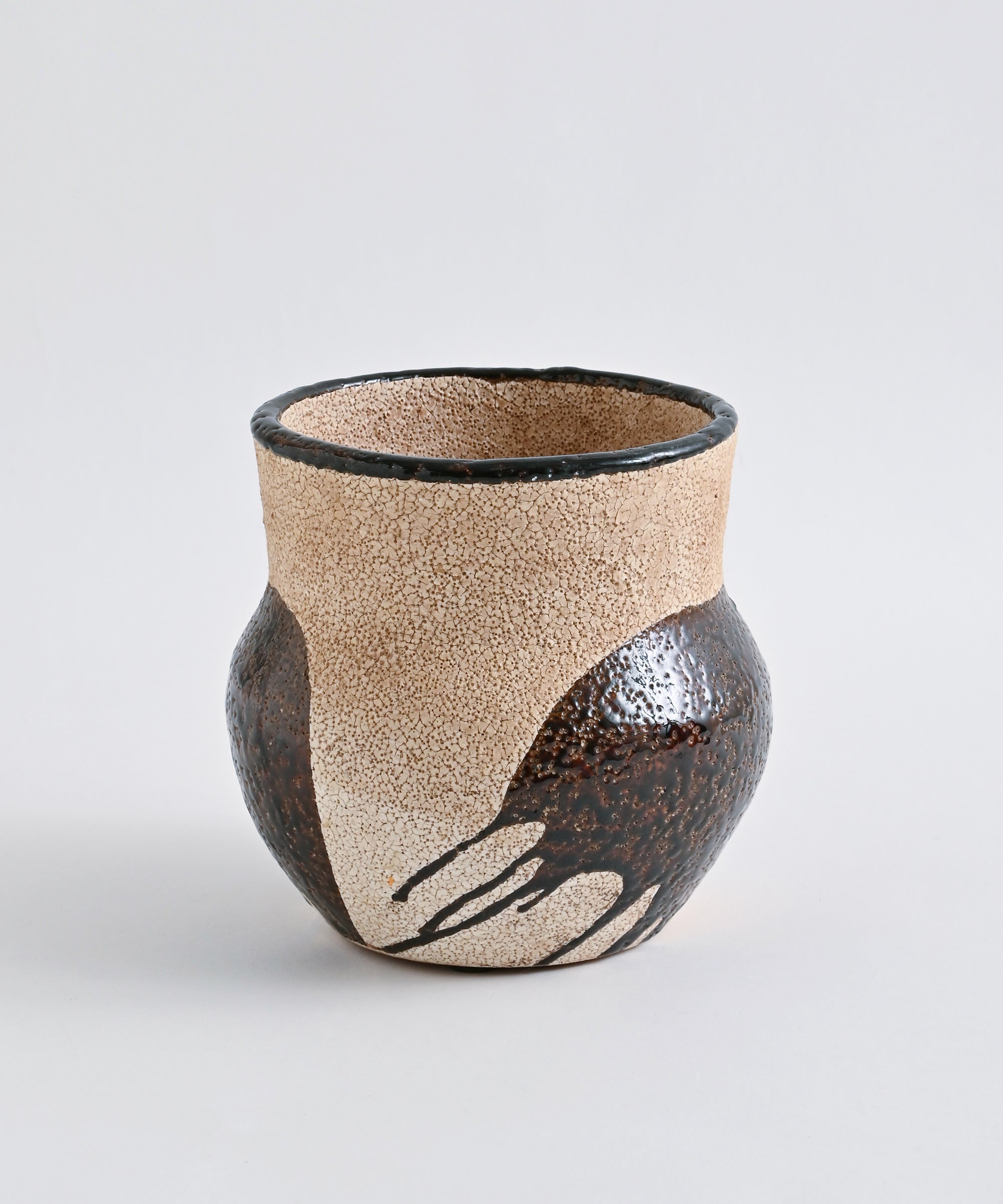 ひとつひとつ釉薬をドリッピングすることで生まれるダークブラウンの釉薬をかけた模様は、 ひとつとして同じものが無いという気ままでユニークな商品です。