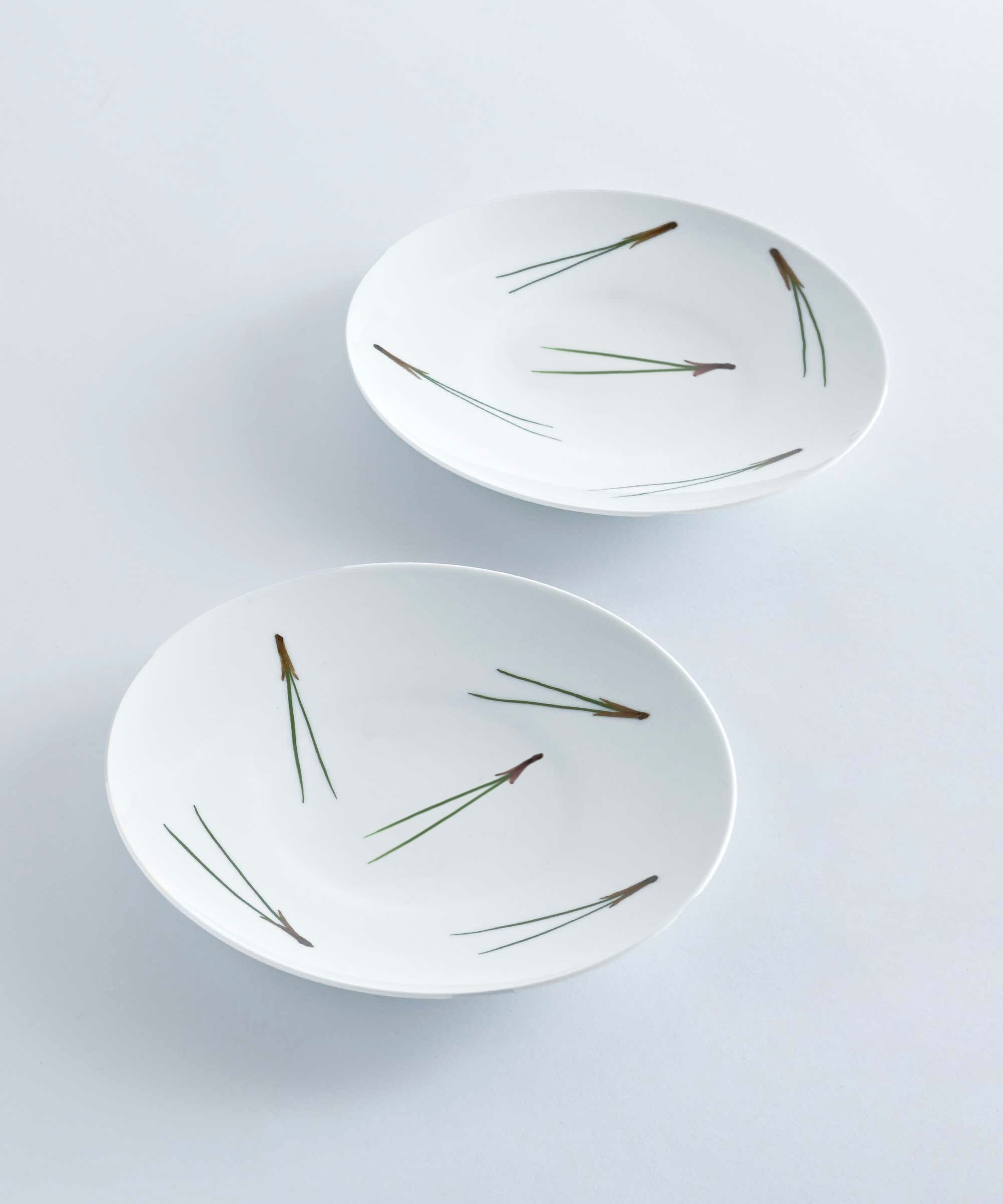 波佐見焼特有の艶のある滑らかな質感に、味わい深い松葉柄が素朴な五寸皿。