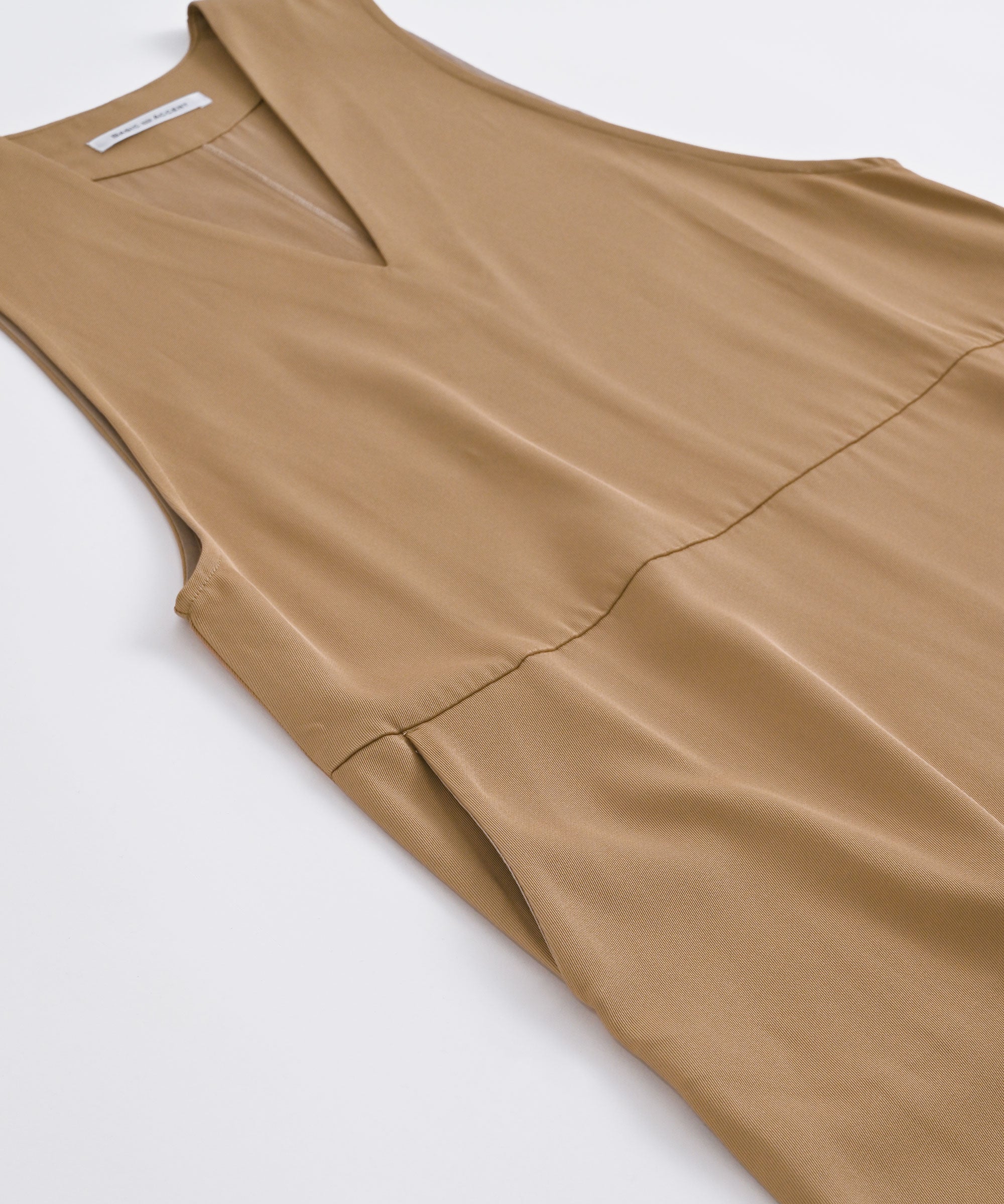 表情の綺麗なツイル生地を使用したVネックジャンパースカート。