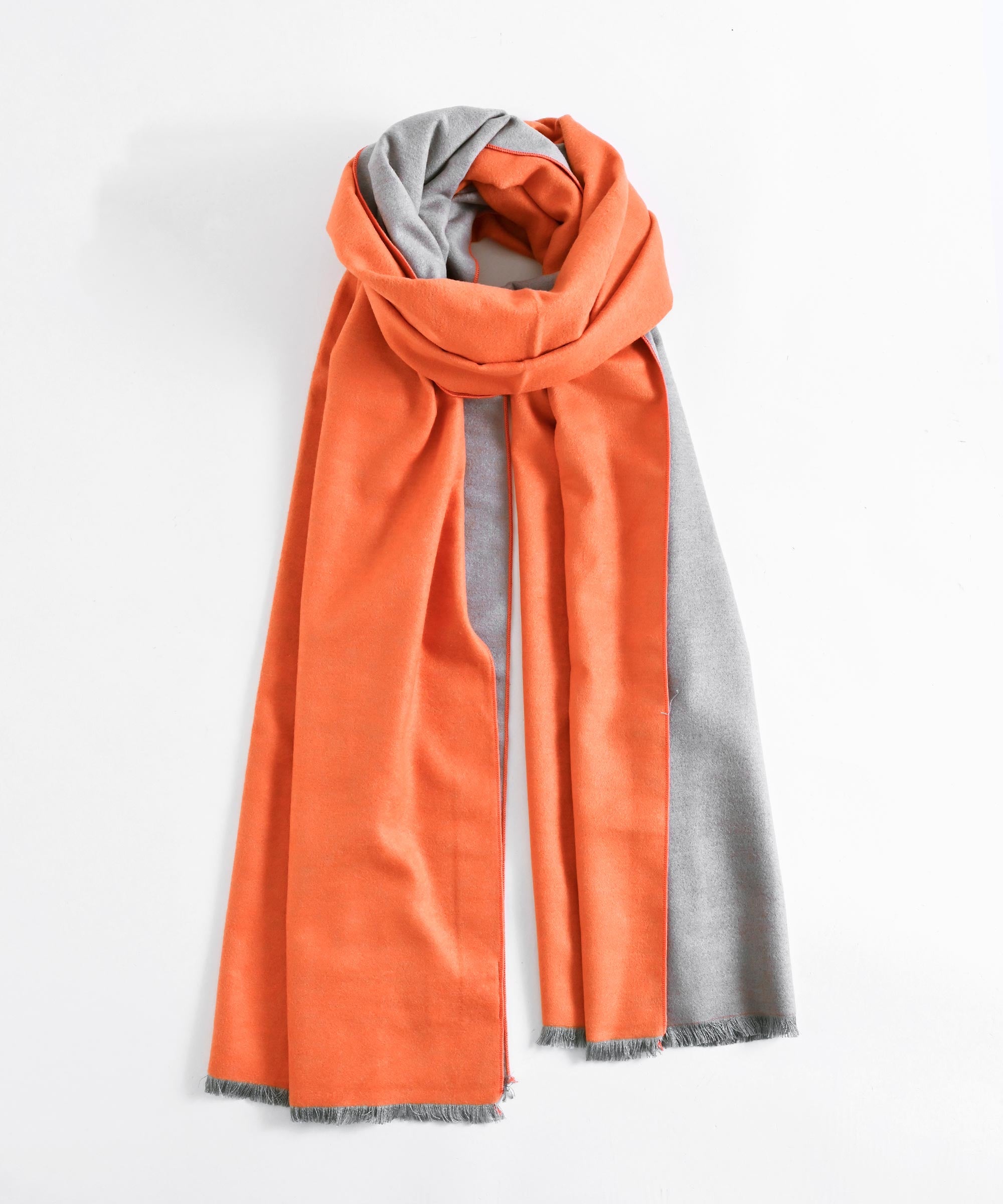 発色のよいカラーコンビのデザインのBASIC AND ACCENT定番のストール。
