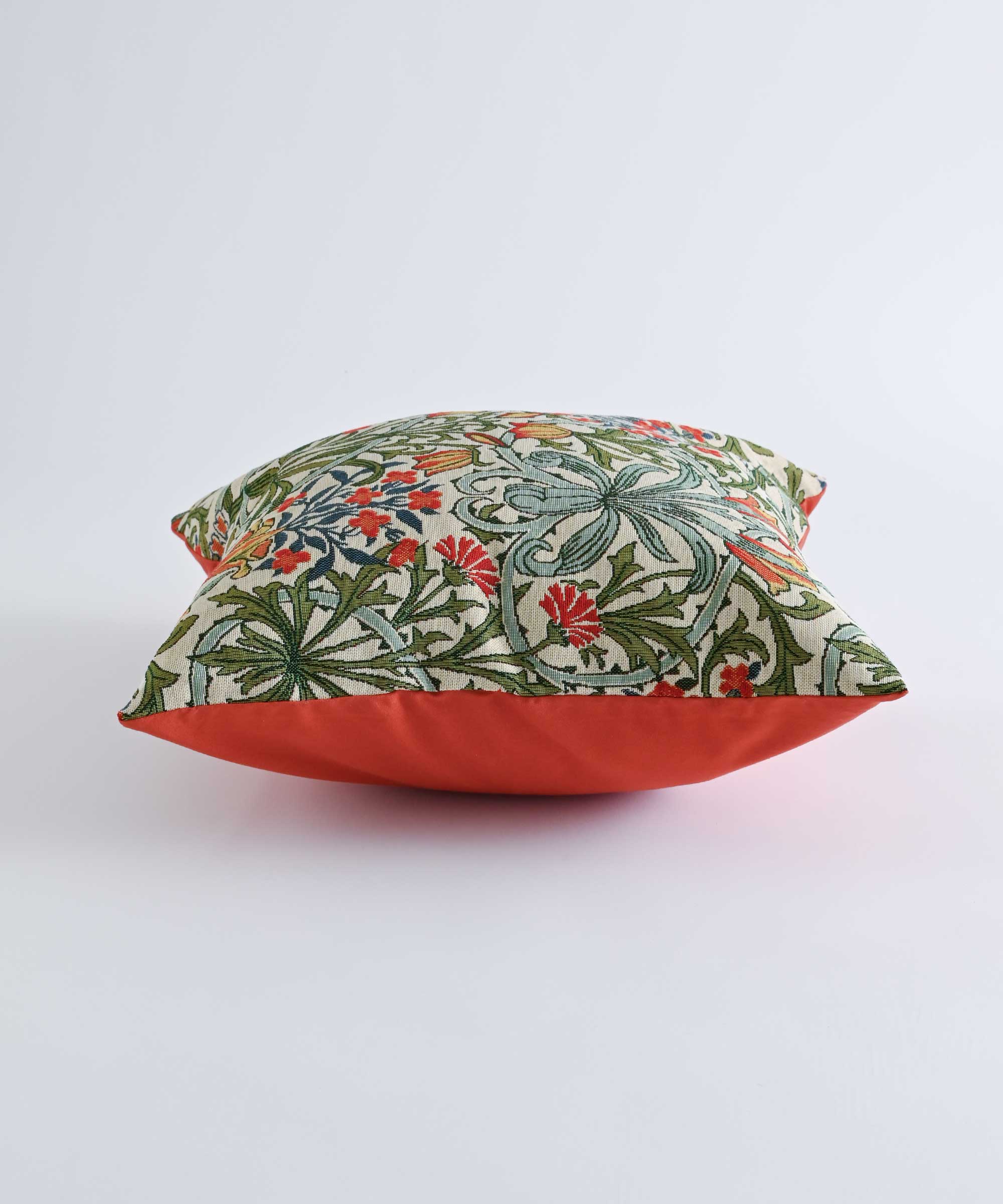 印象的な花柄が目を引くジャガード織りの生地を使用したクッションカバー。