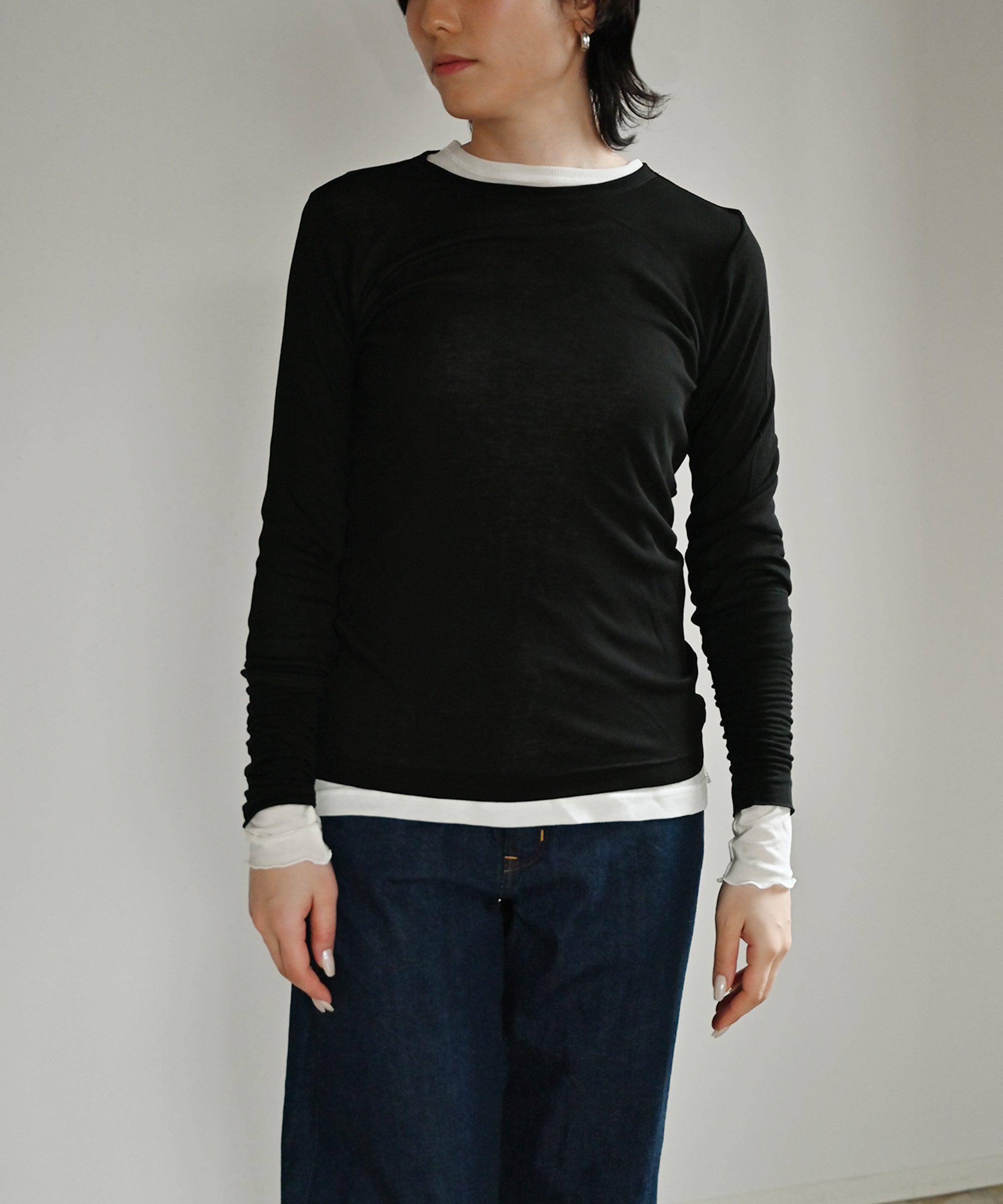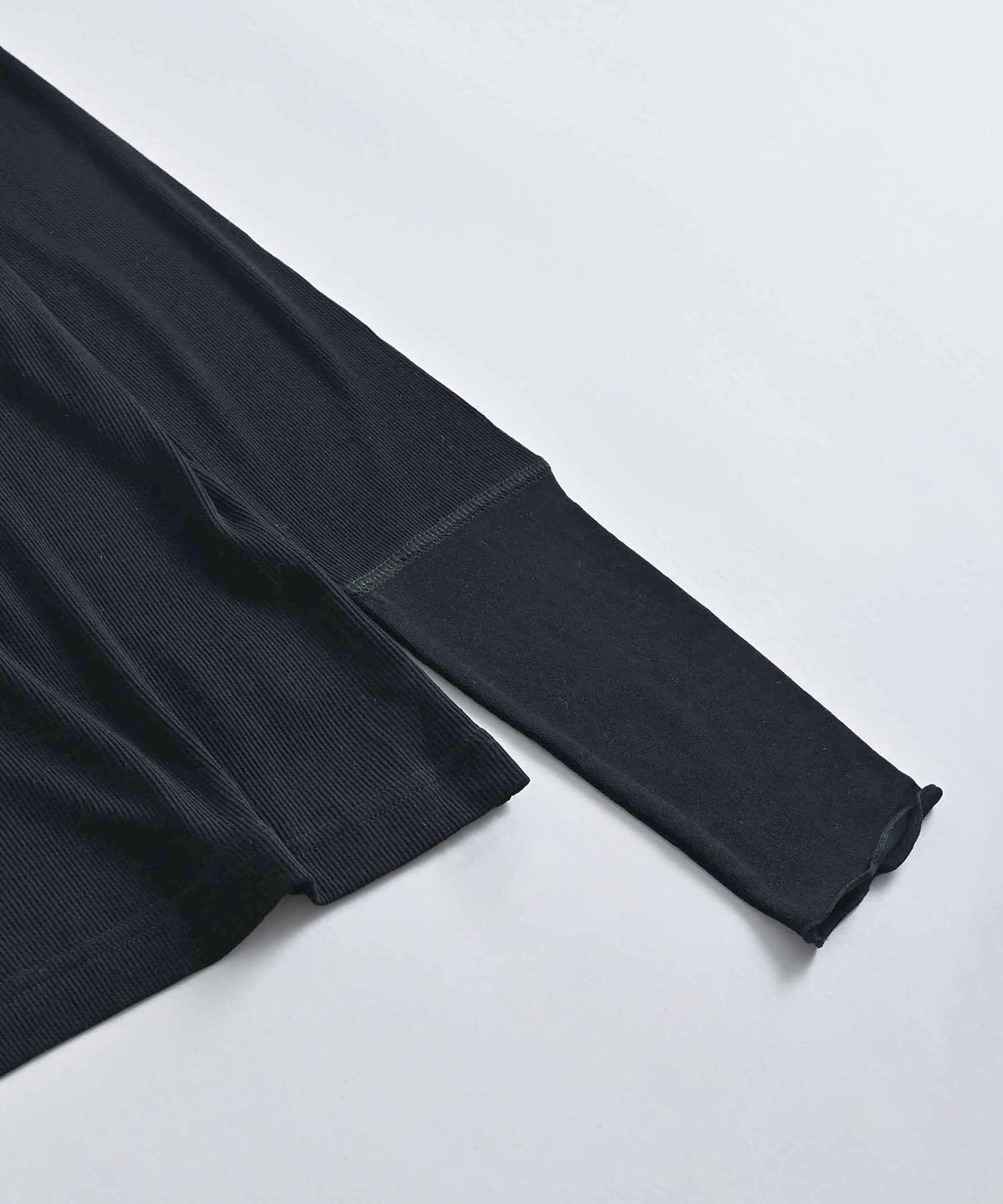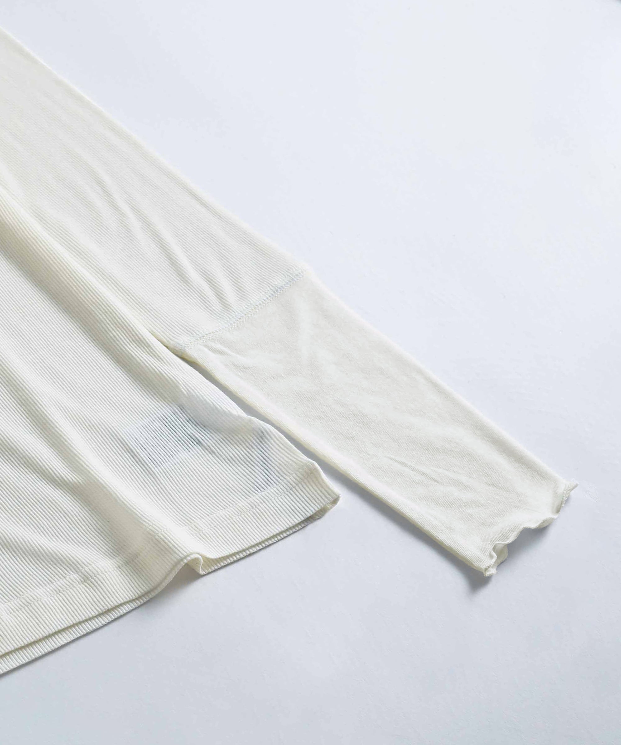 首回りと袖にはシルキータッチな柔らかく伸縮性のあるテレコ生地を使用したコンビデザイン。