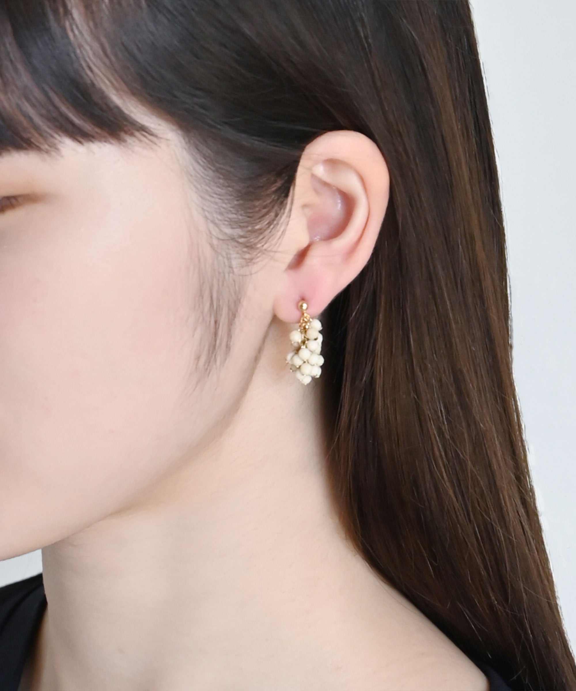 つぶつぶのフリンジが程よいボリューム感で、耳元をさり気なく華やかに演出します。