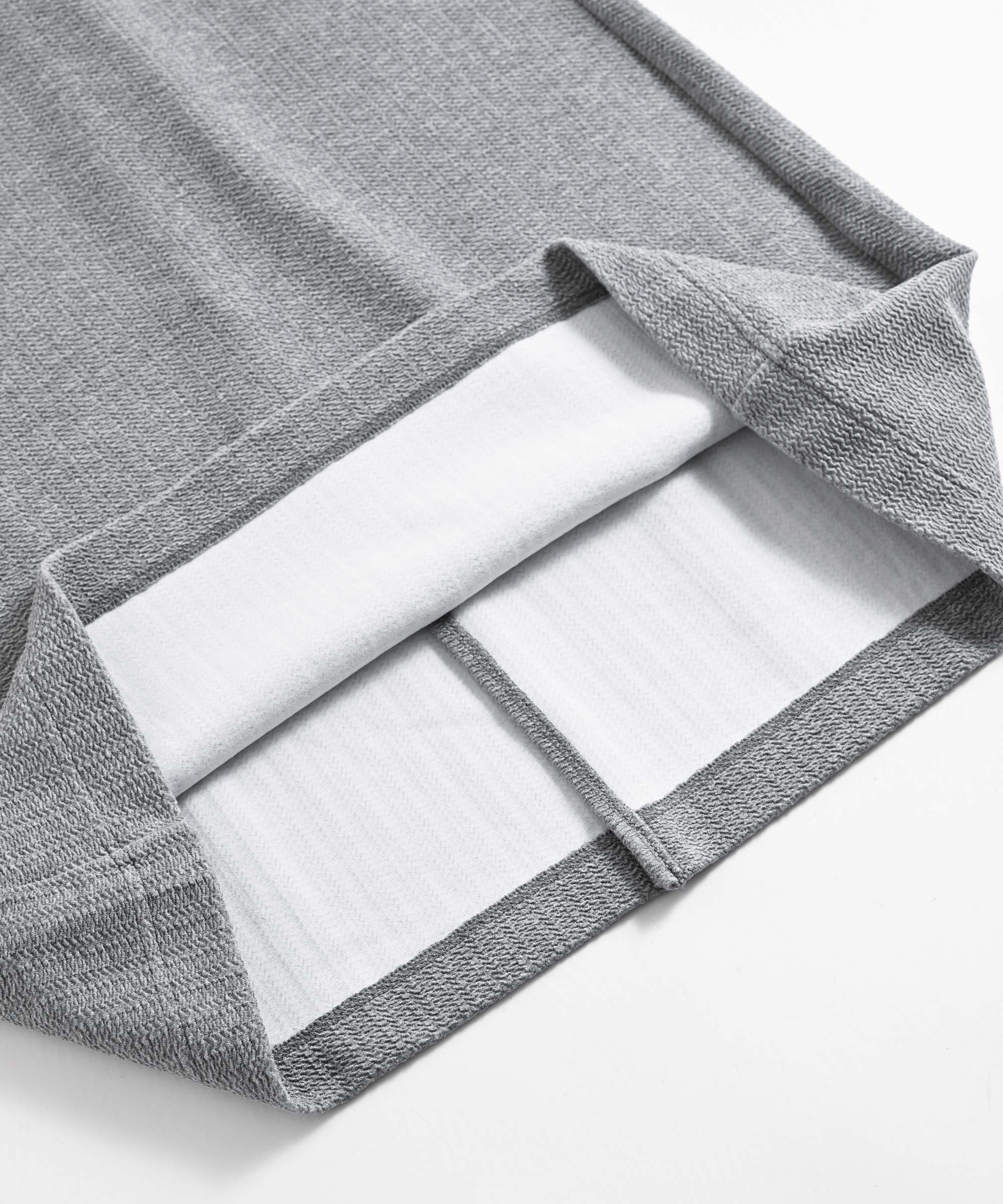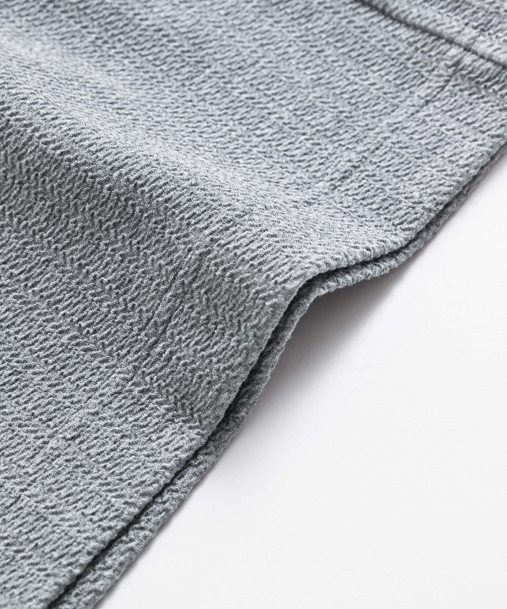 ブリスター編み(ジャカード編み機で編んだ編地全体に細かい隆起のある編地)の表情のあるカットソー生地を使用。