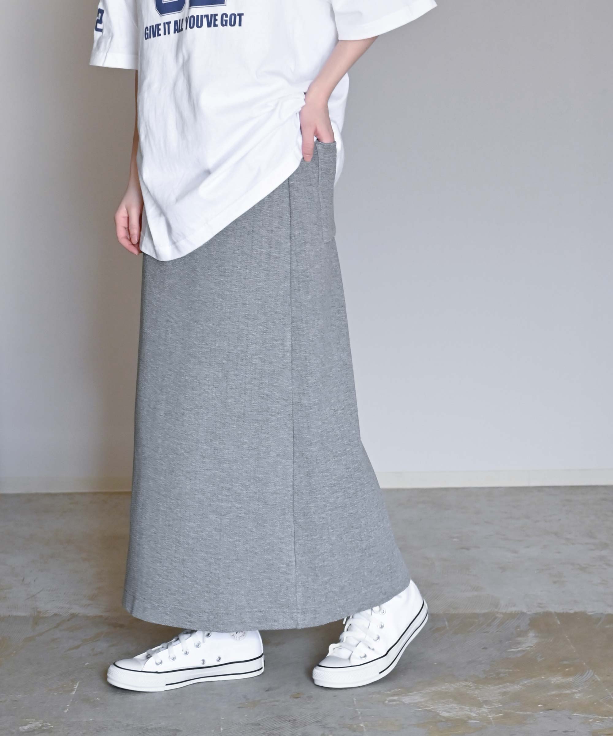 カットソー生地のBASIC AND ACCENTの新作ロングスカートが入荷。