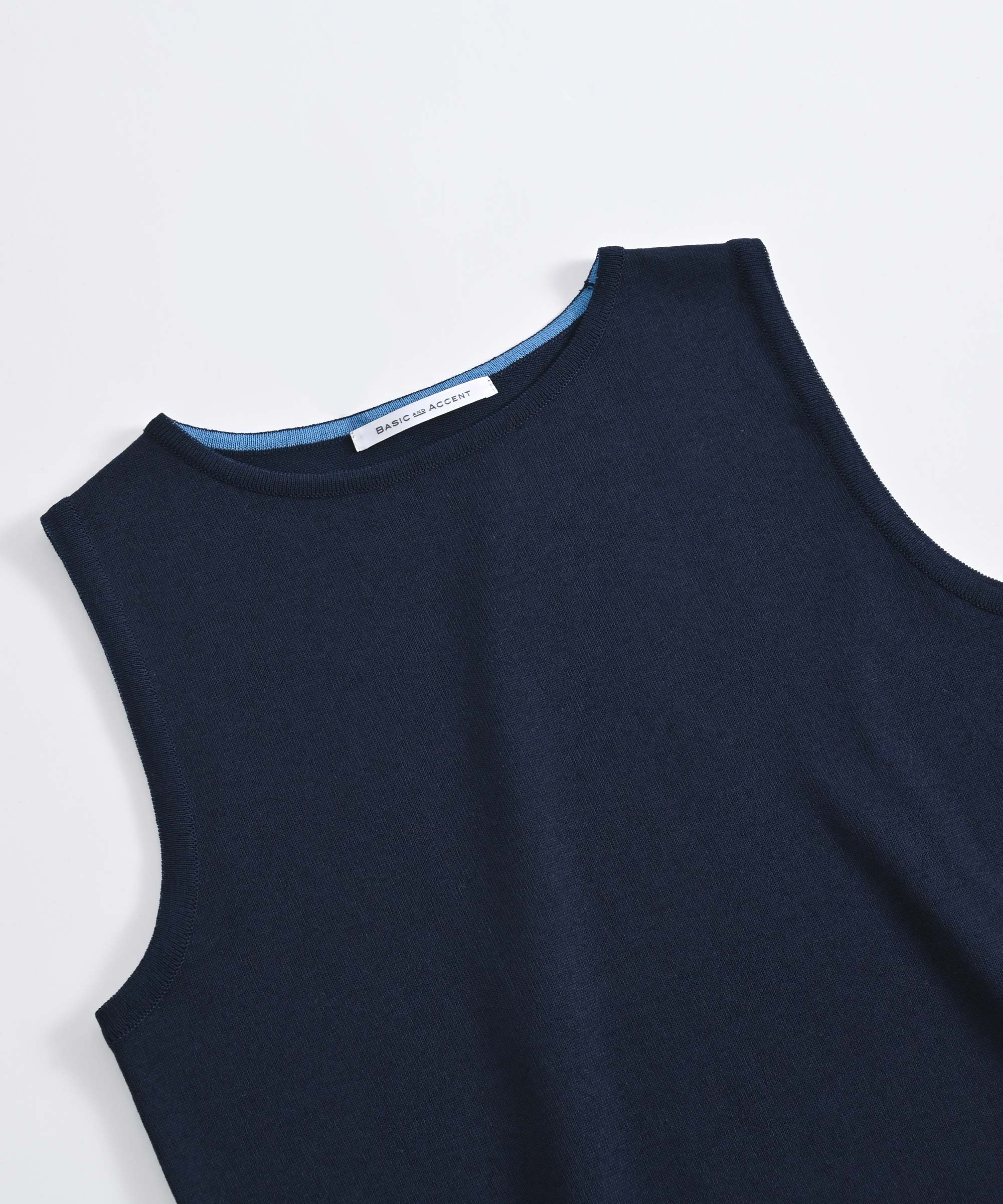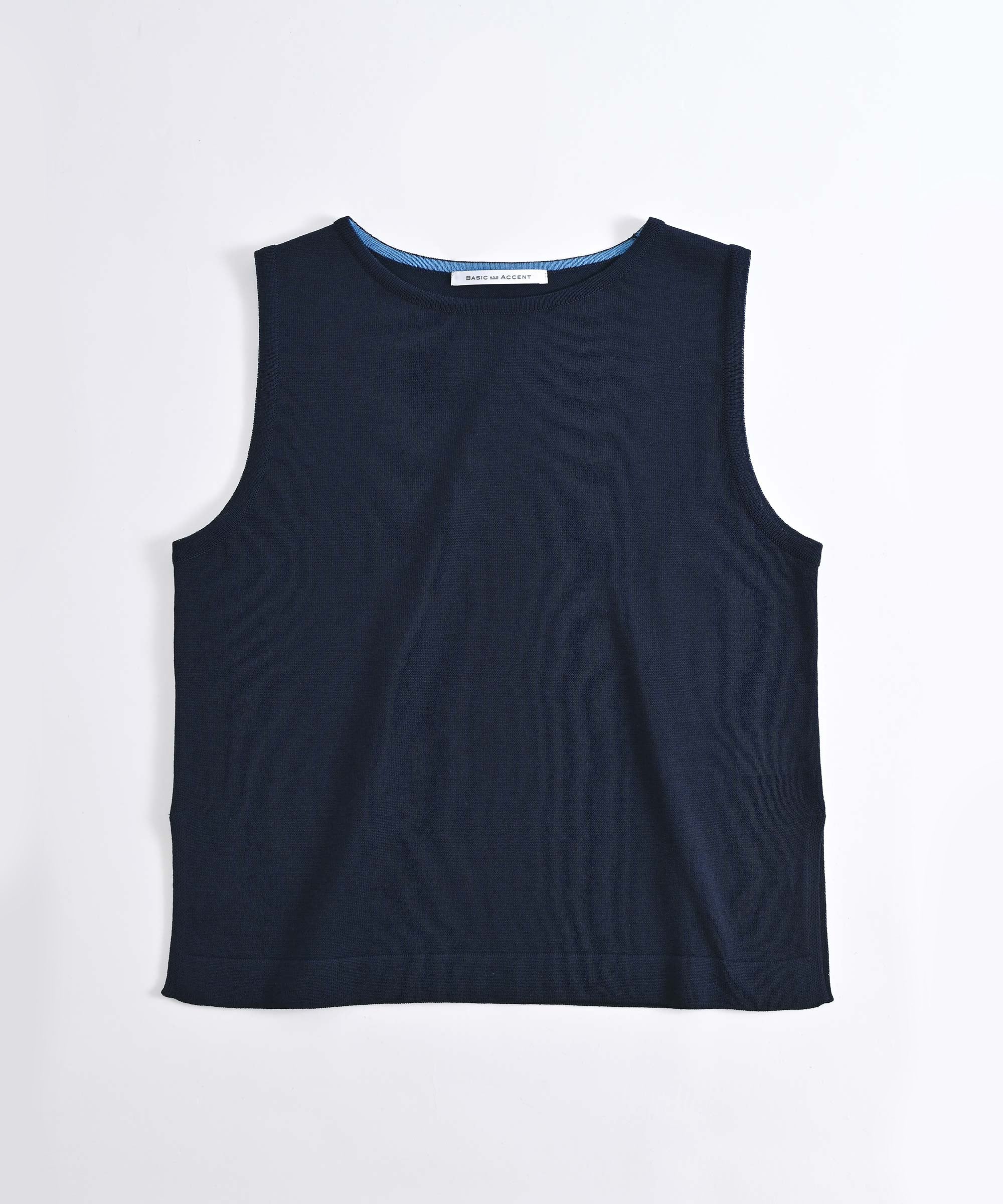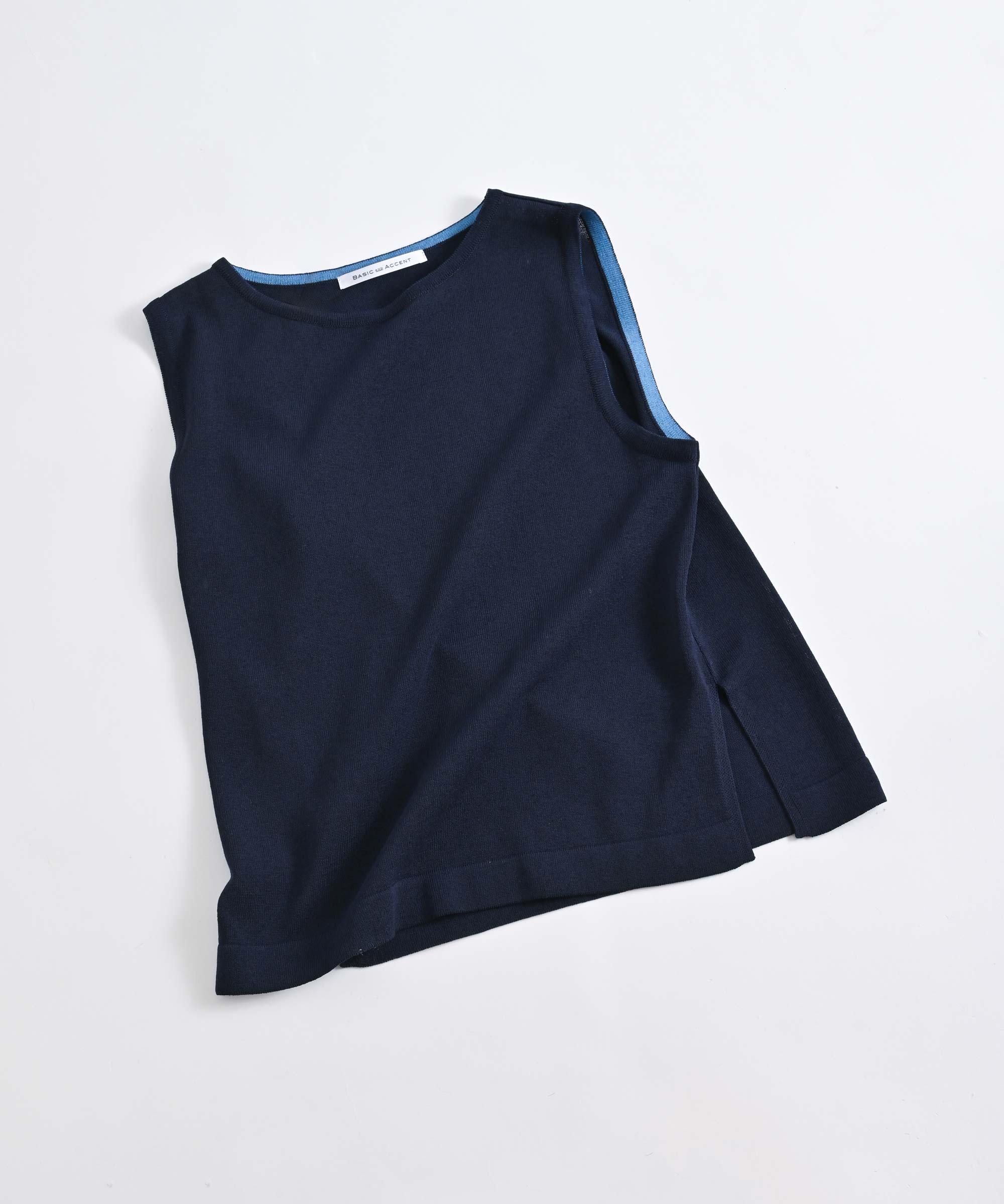さらりと気持ちの良い肌触りのBASIC AND ACCENTオリジナルのコットン混ニットベスト。