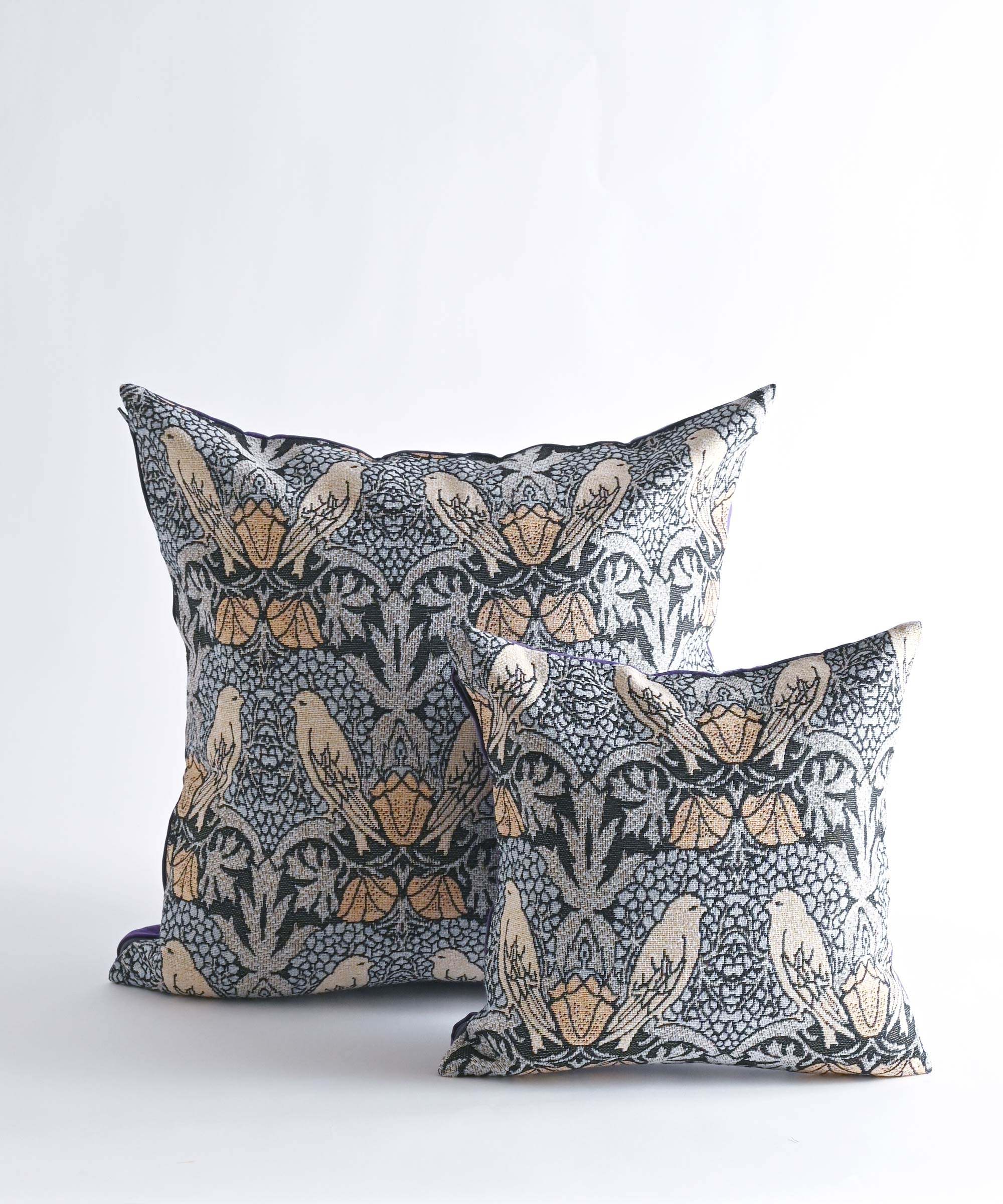 表情のあるジャガード織りの生地を使用したクッションカバー。