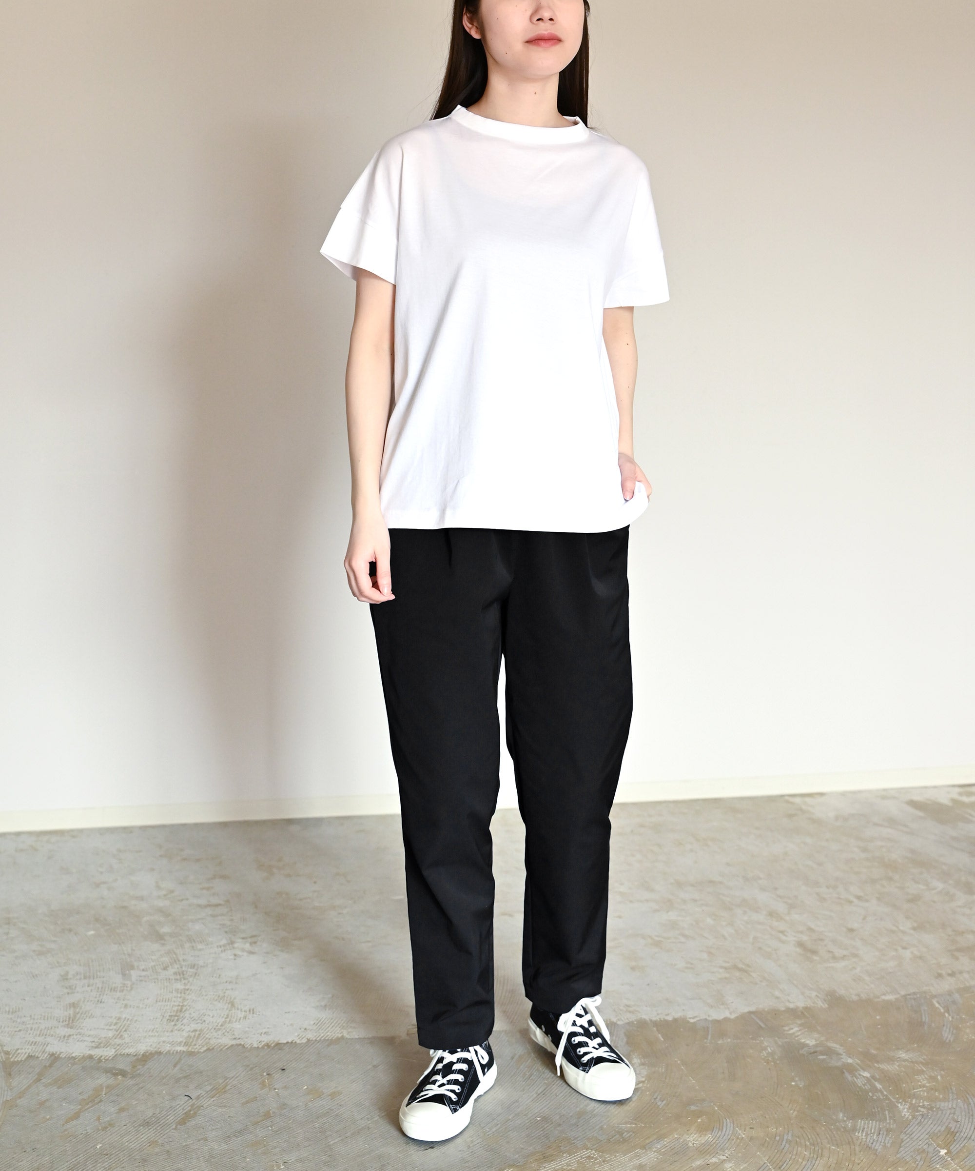 適度な張り感があるので、カジュアルコーデはもちろん、きちんと感のあるスタイルにも活用いただけます。