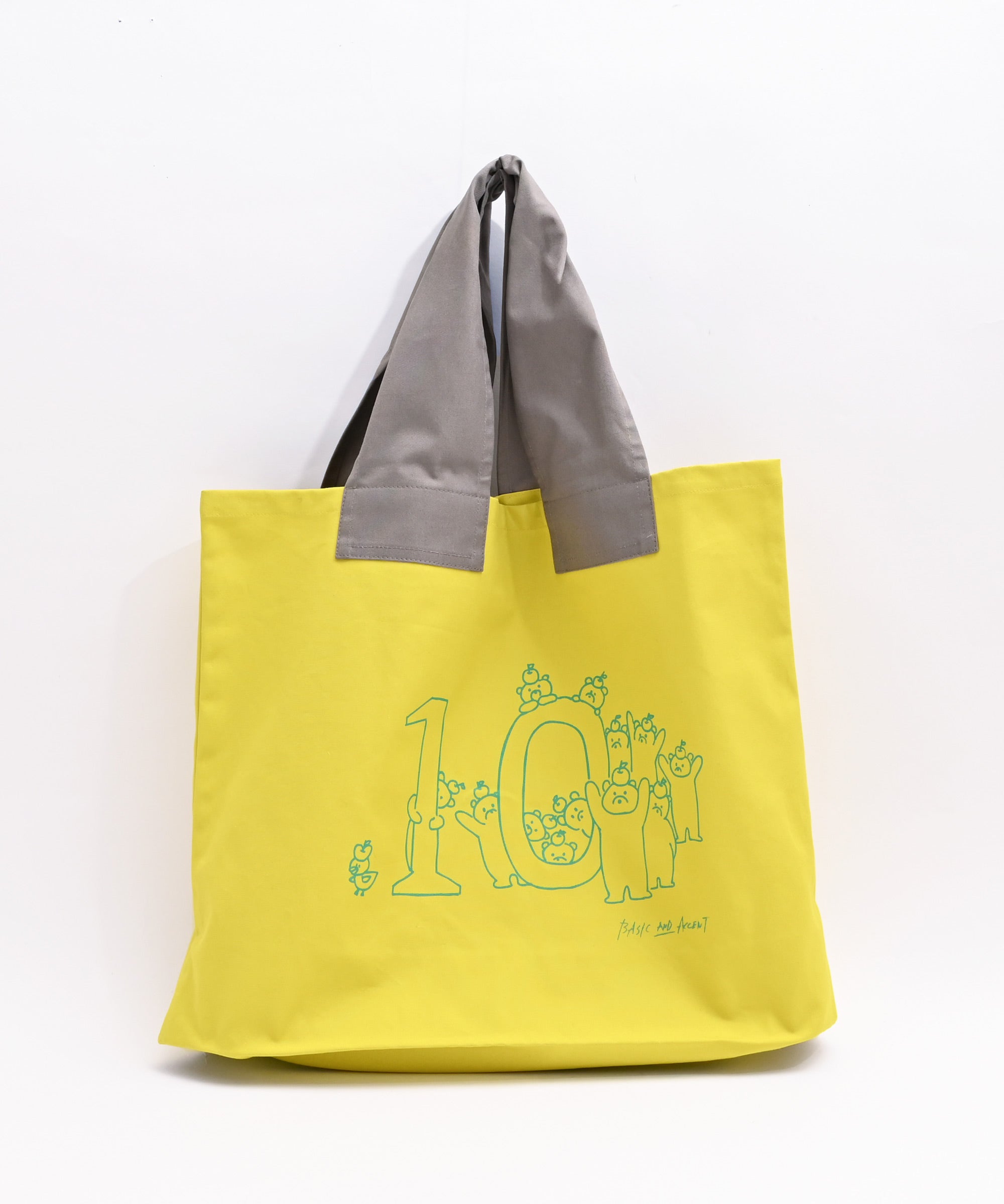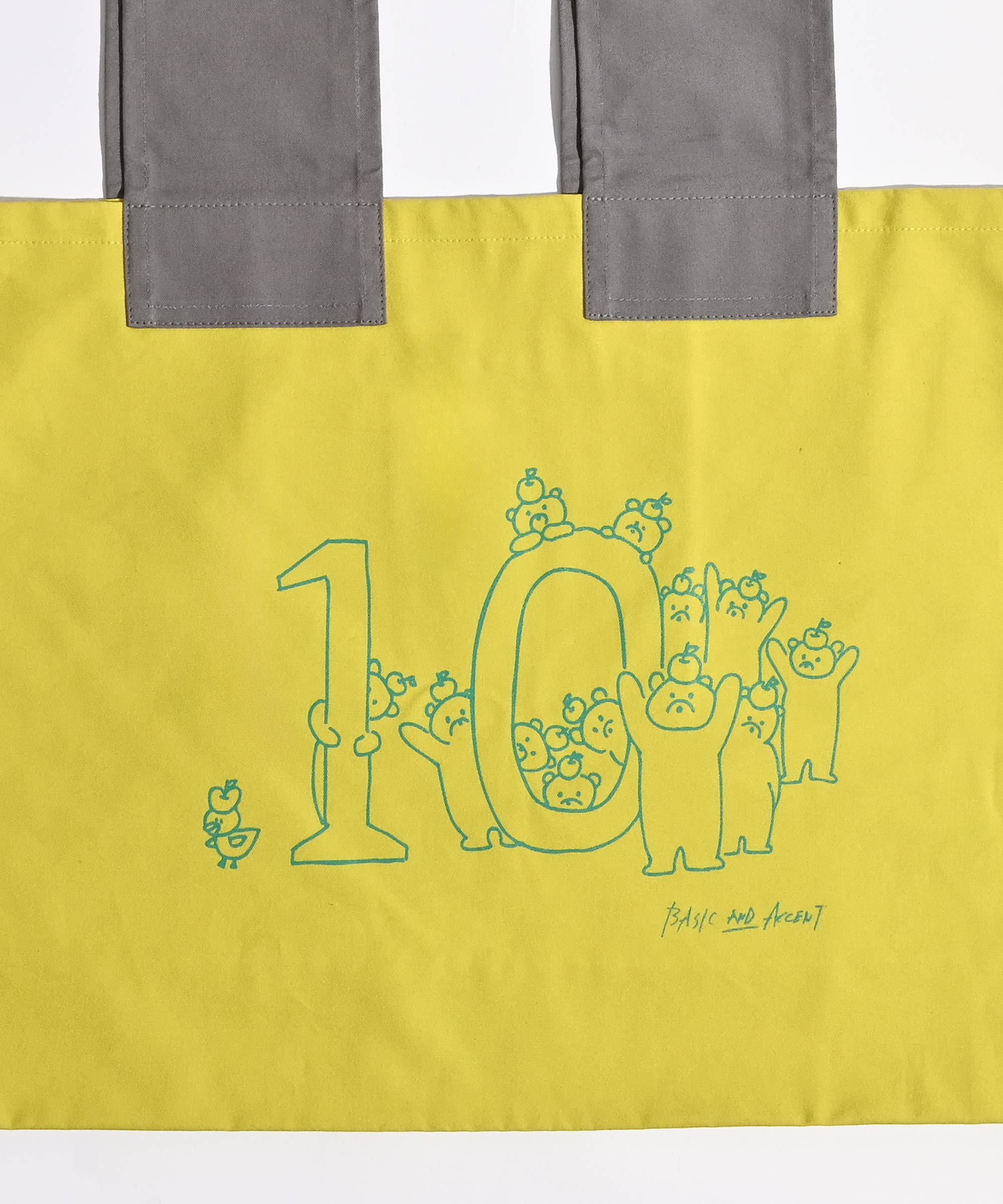 BASIC AND ACCENT 10周年を記念して作られたビッグバッグ。BASIC AND ACCENTのイニシャルBとAにちなんだメッセージと隠れたキャラクターBIRD・BEAR・APPLEをデザインしています。