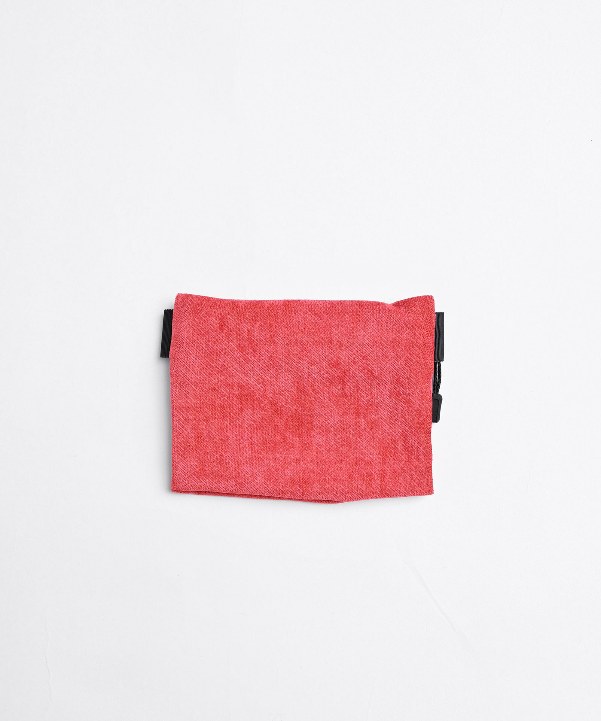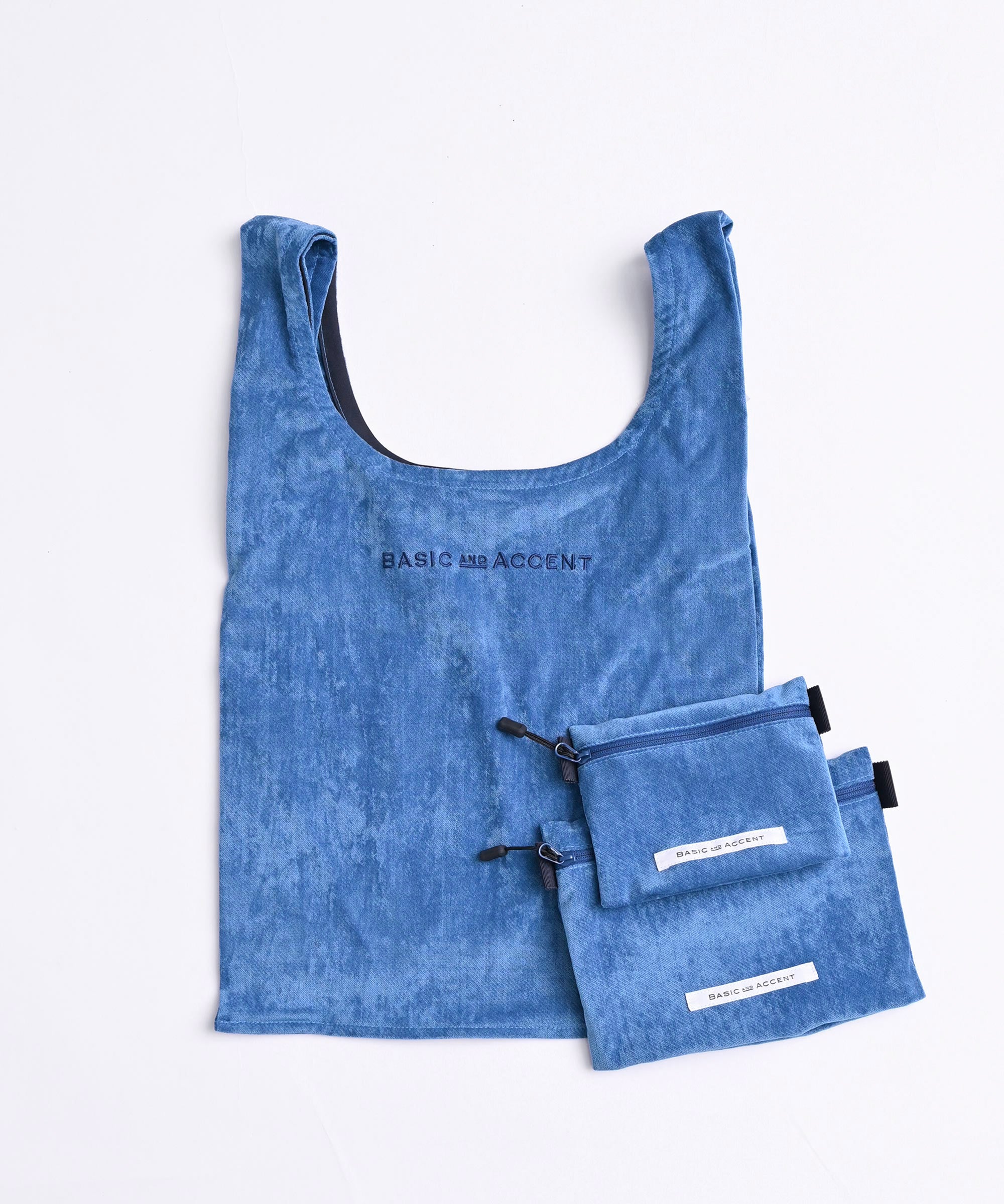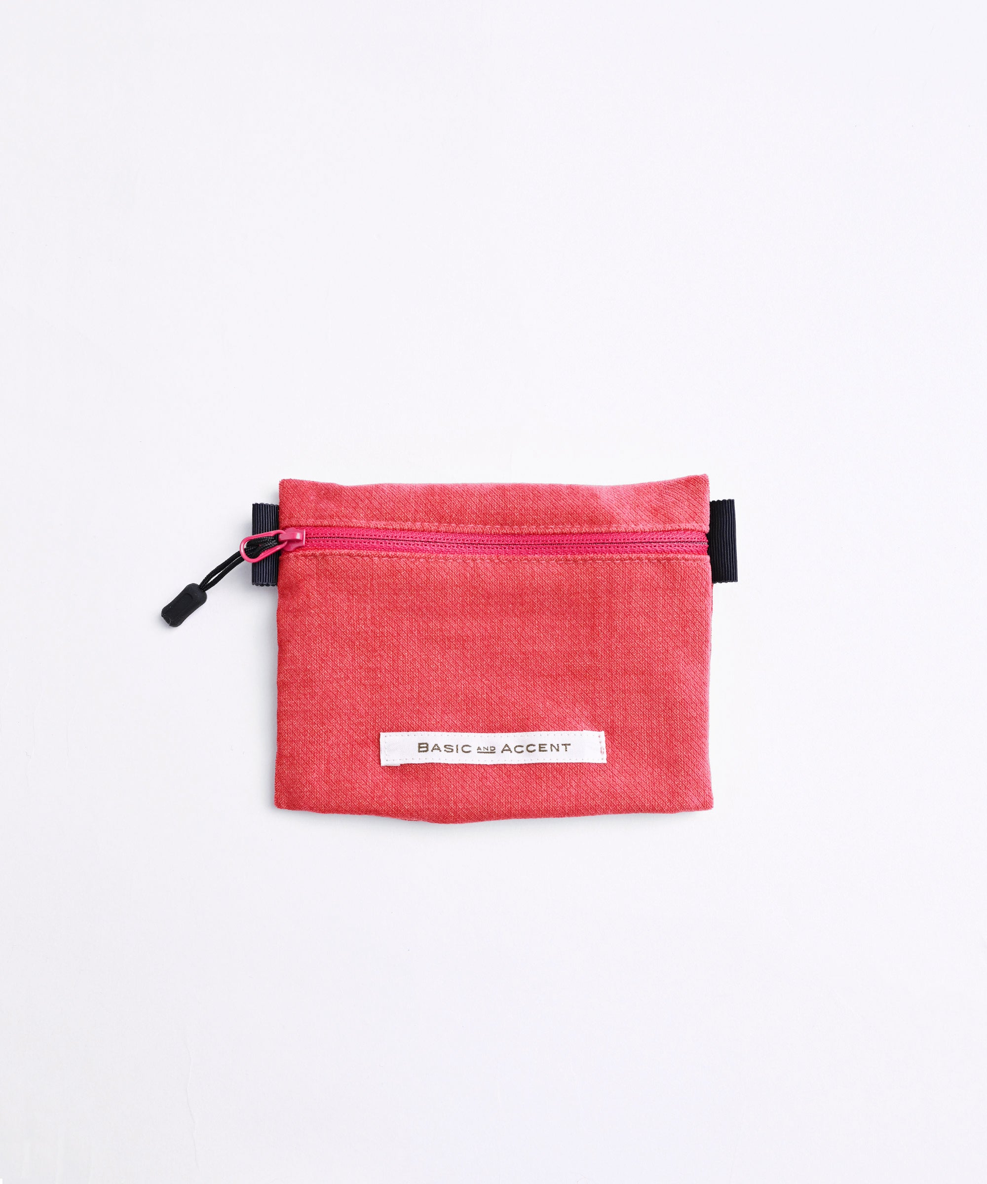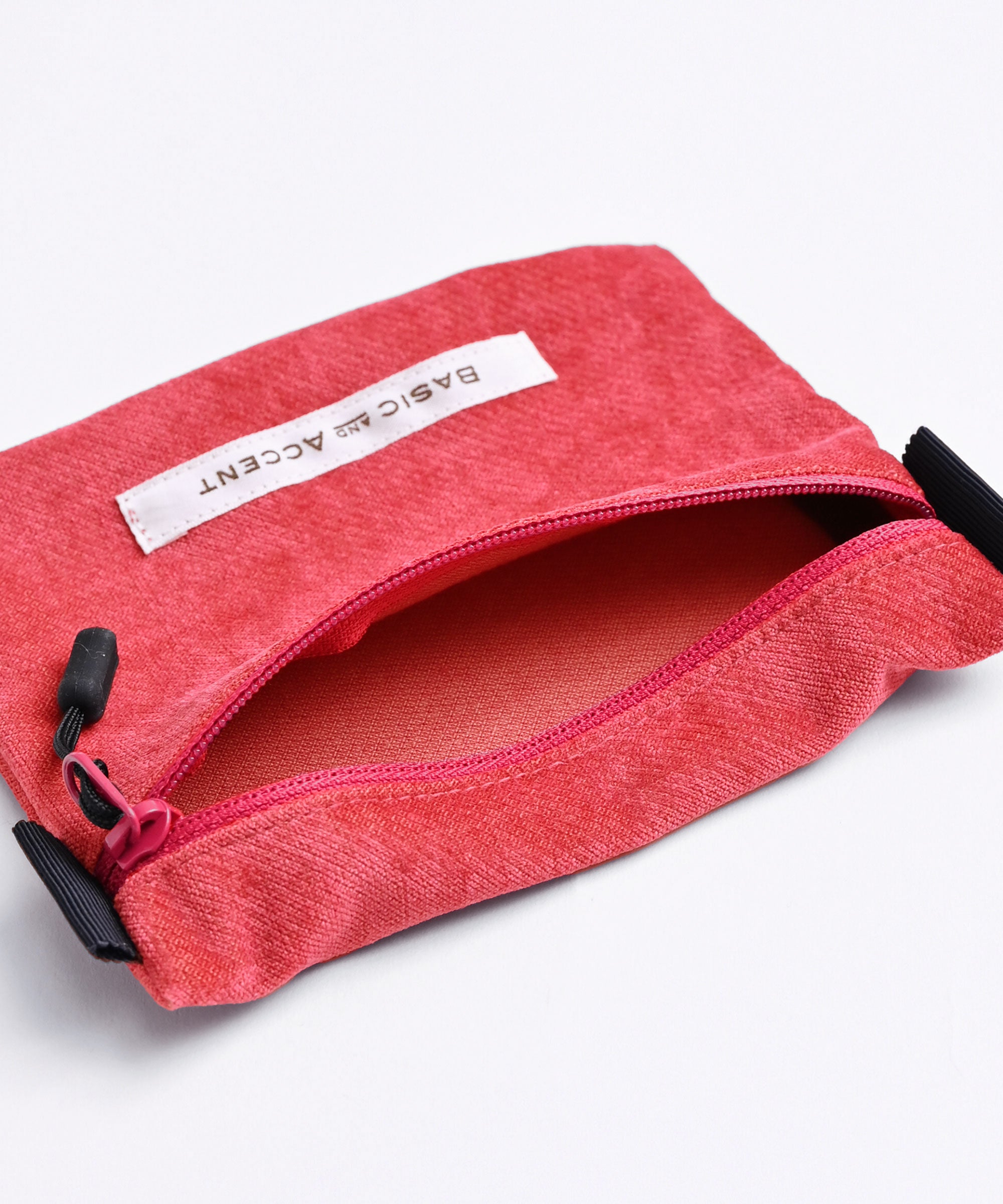 ツヤ感のある生地と、鮮やかなカラーリングの「glow color バッグ」と同素材のポーチ。