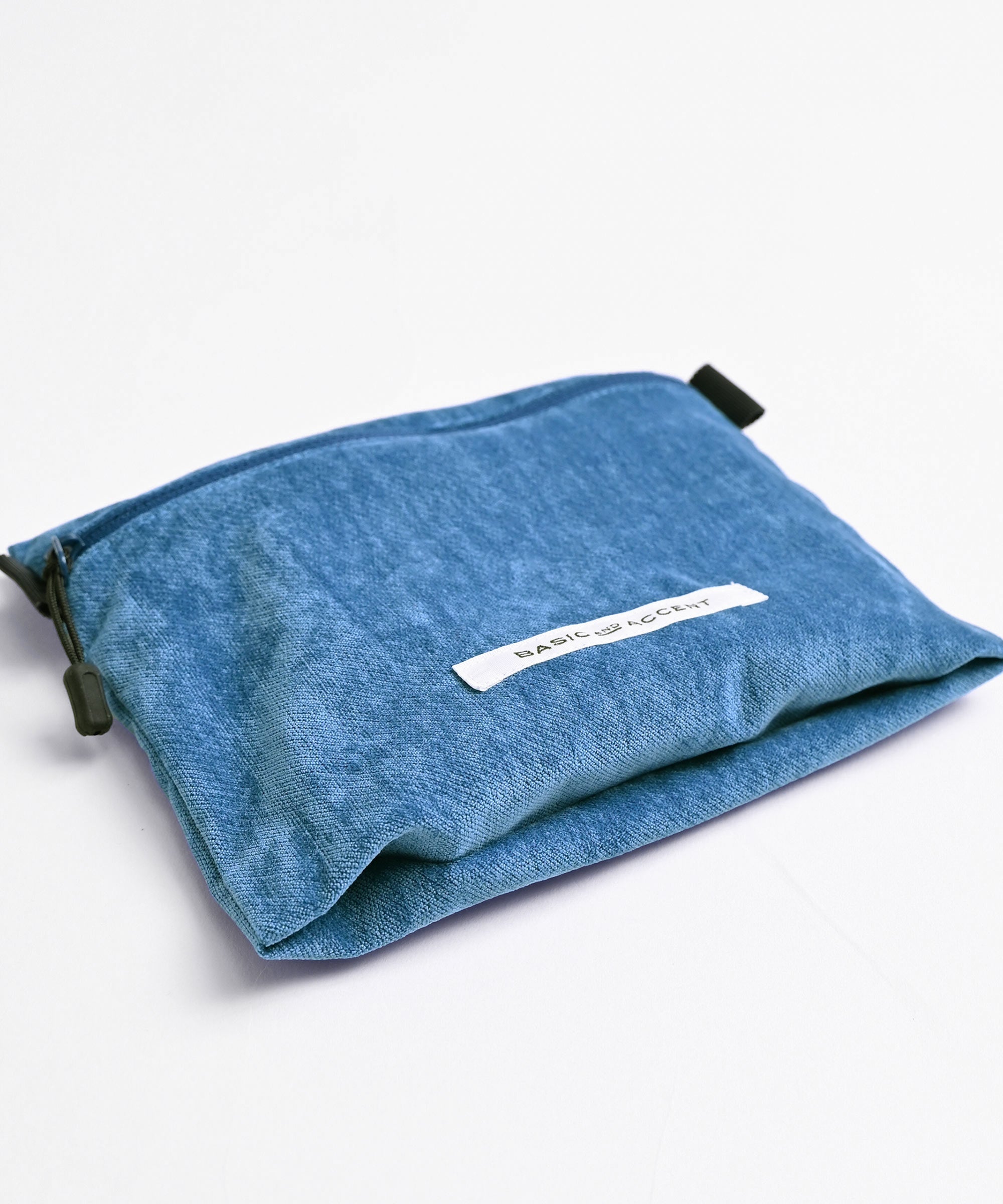 ツヤ感のある生地と、鮮やかなカラーリングの「glow color バッグ」と同素材のポーチ。