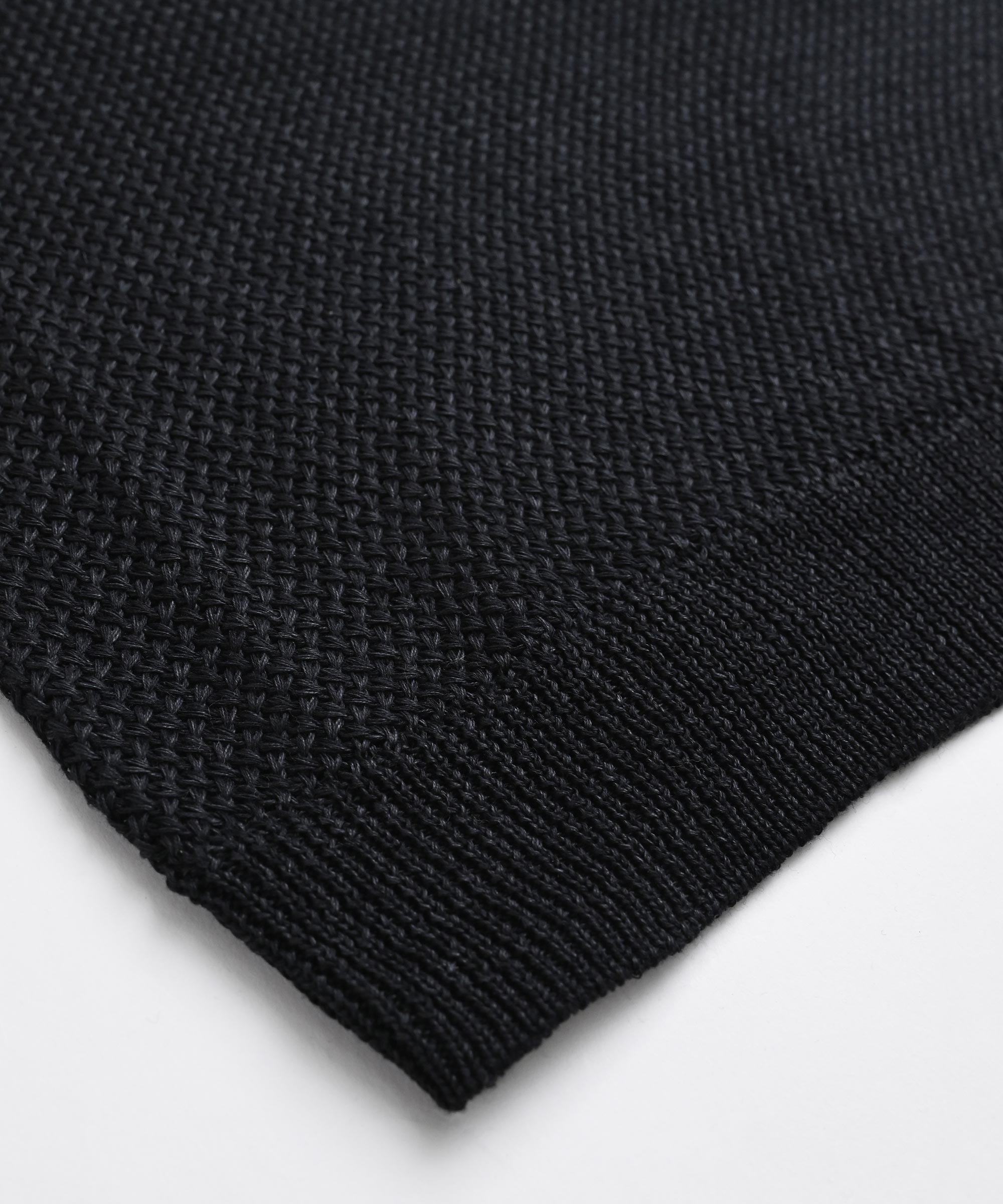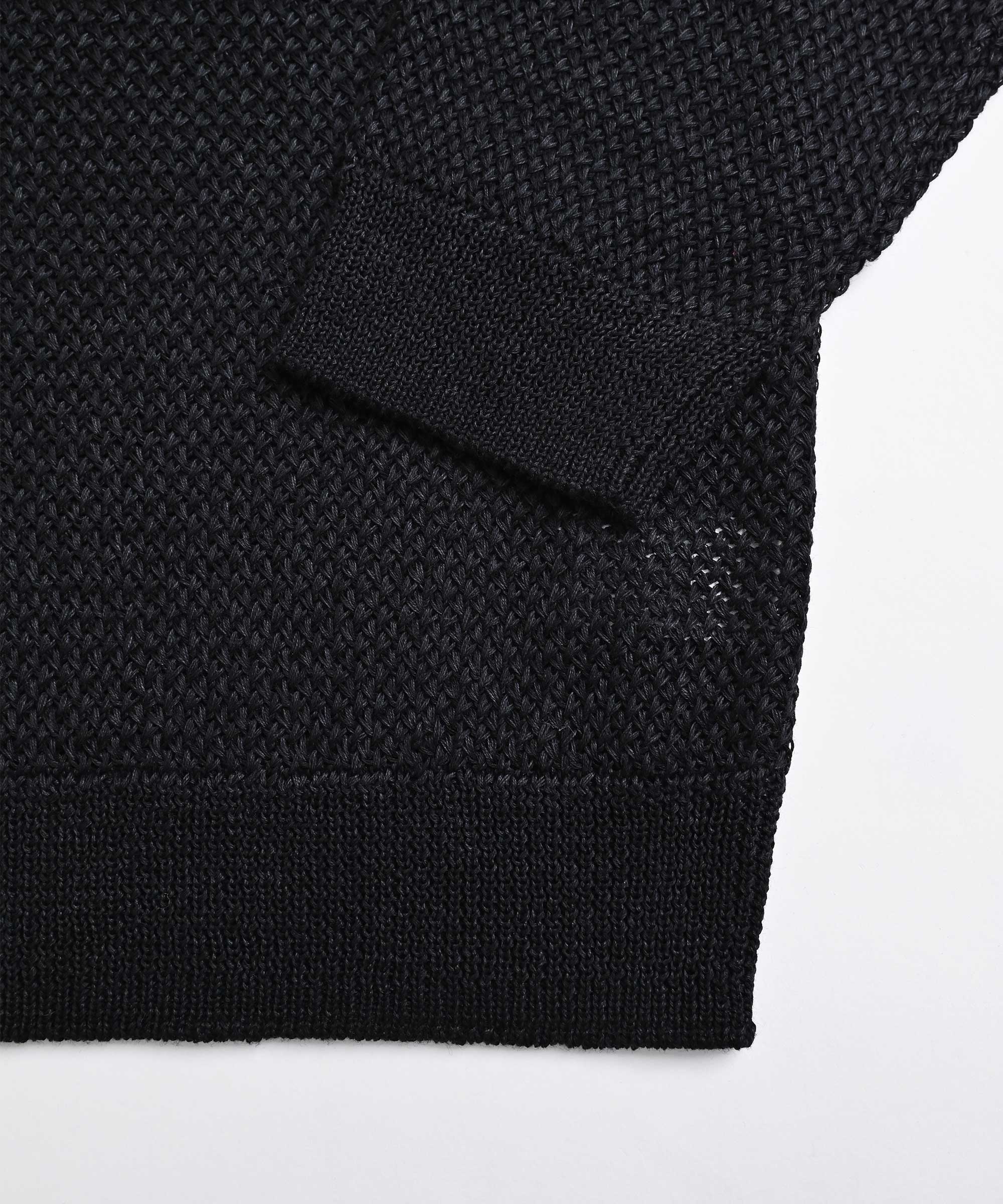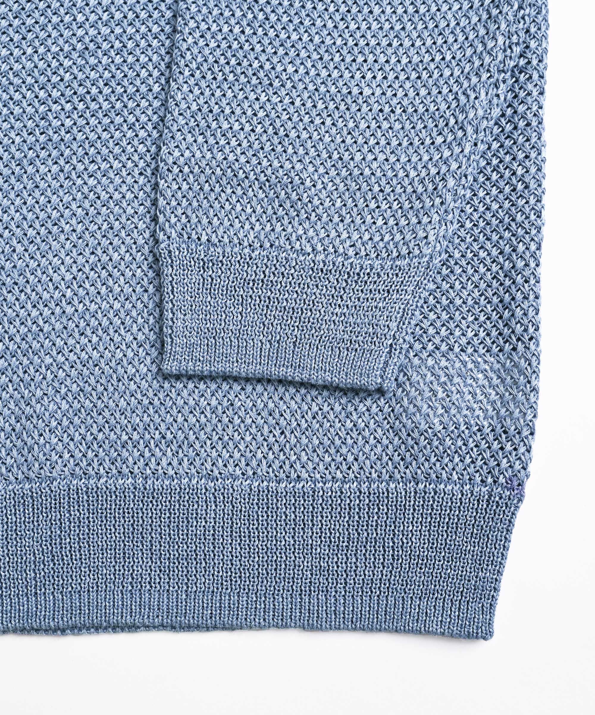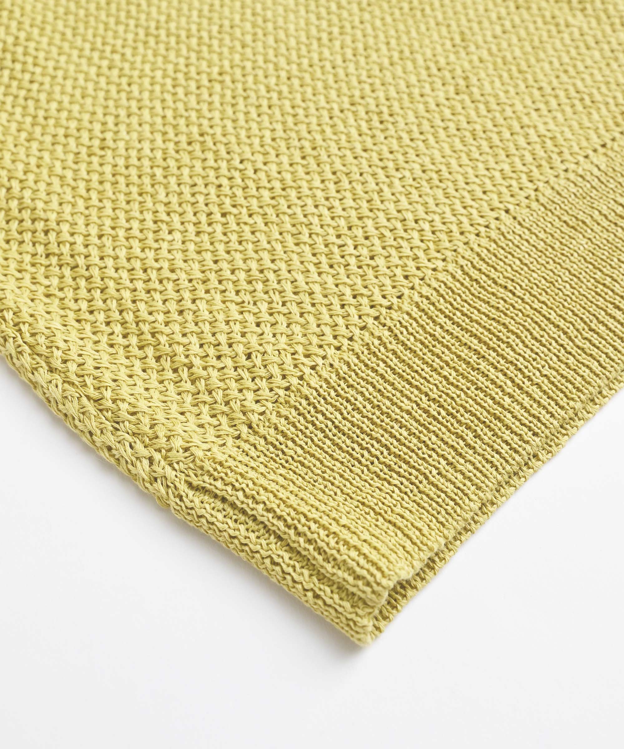 ギマ(麻のような風合いに加工し仕上げた糸)をフラットになるよう撚った糸を、バスケットの編み目のように編い込んだ編み目が特徴のシリーズです。