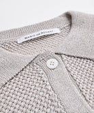 ギマ(麻のような風合いに加工し仕上げた糸)をフラットになるよう撚った糸を、バスケットの編み目のように編い込んだ編み目が特徴のシリーズです。