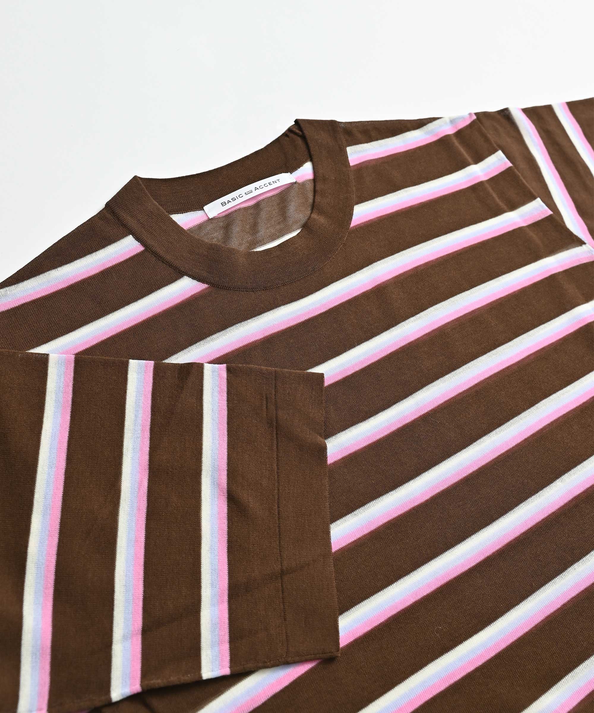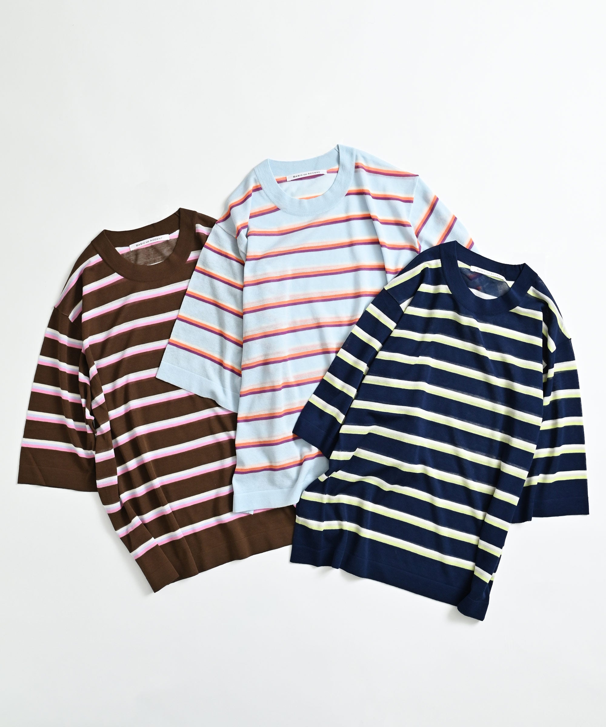ほどよい透け感が魅力のボーダー柄ニット。軽やかな編み地が抜け感を演出し、シーズンムードを高めてくれる一枚です。