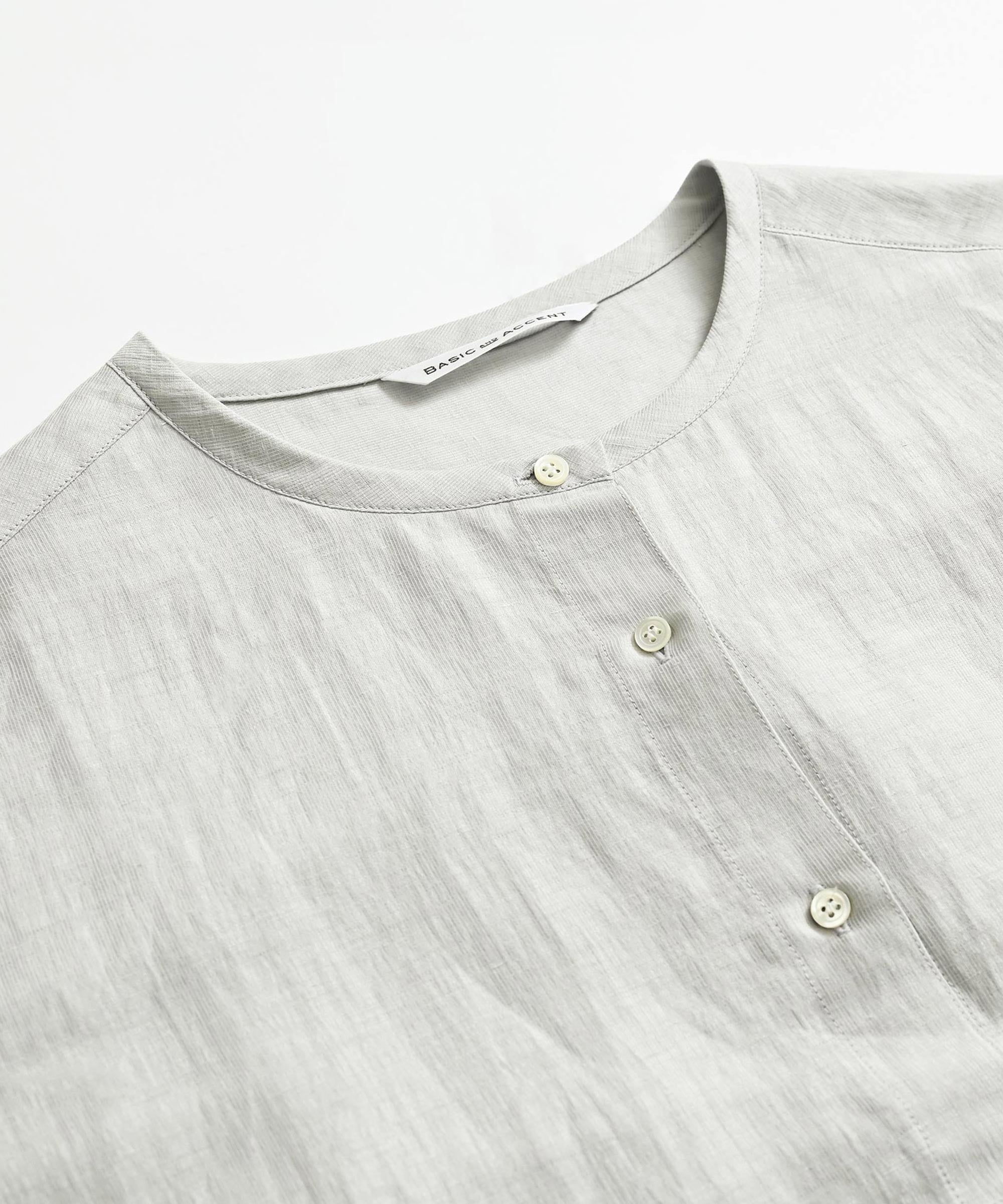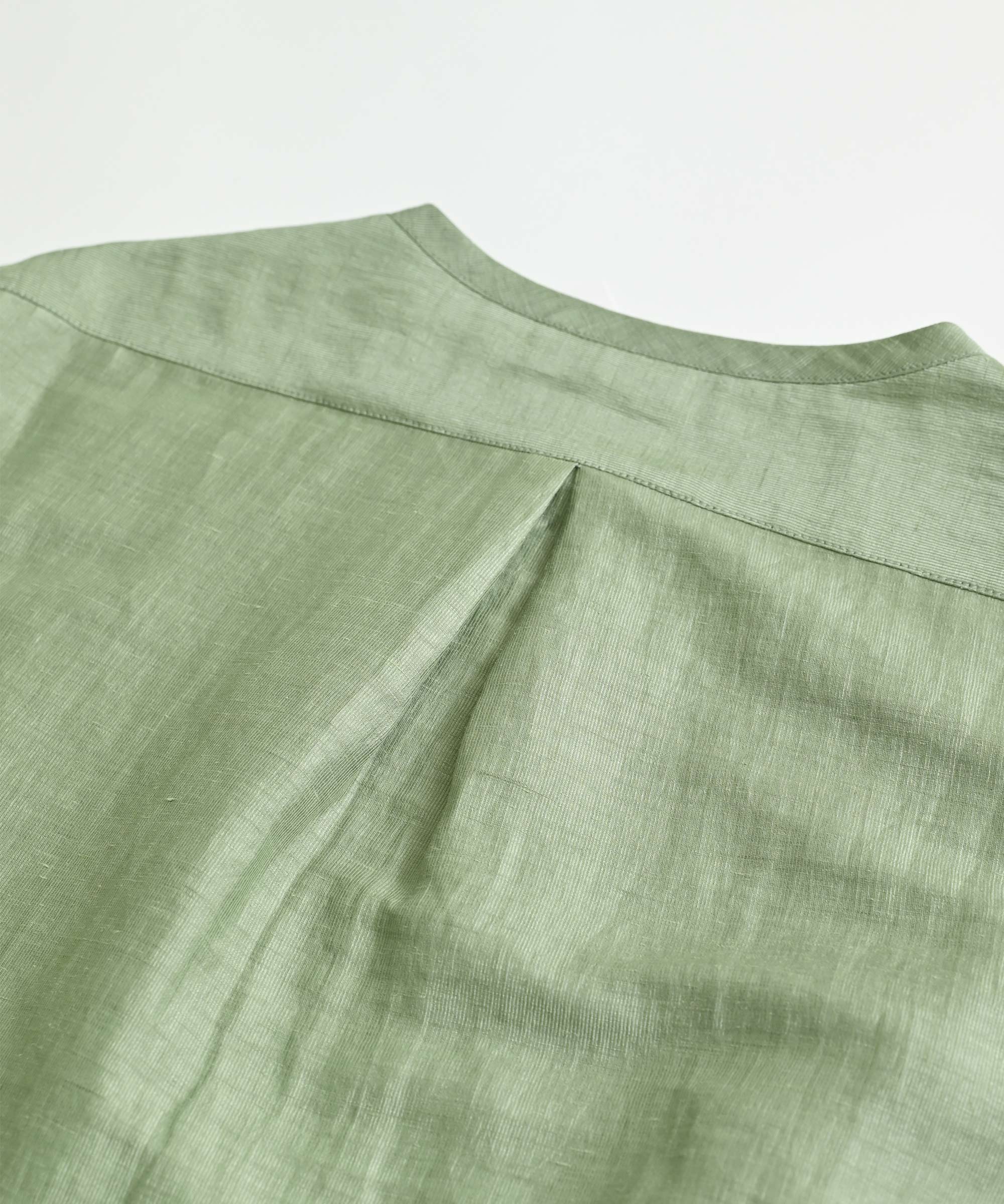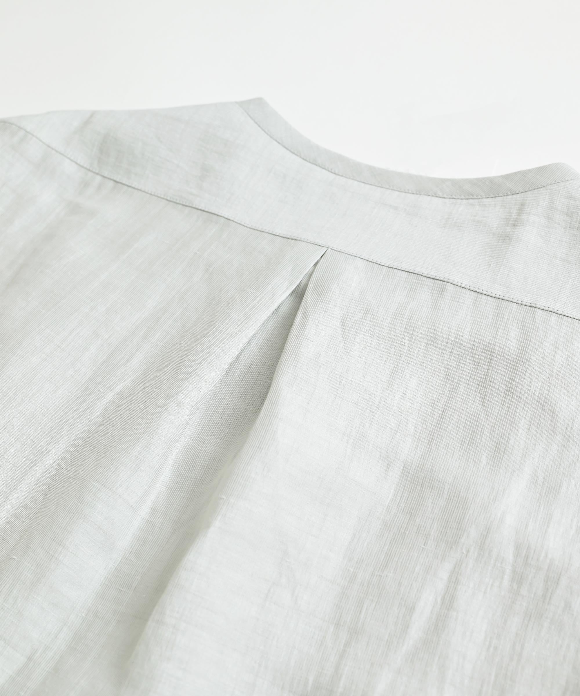 細番手のポリエステルがもたらす上品な光沢に、麻のナチュラルな表面感が重なり、程よいシワ感がこなれた雰囲気を演出。