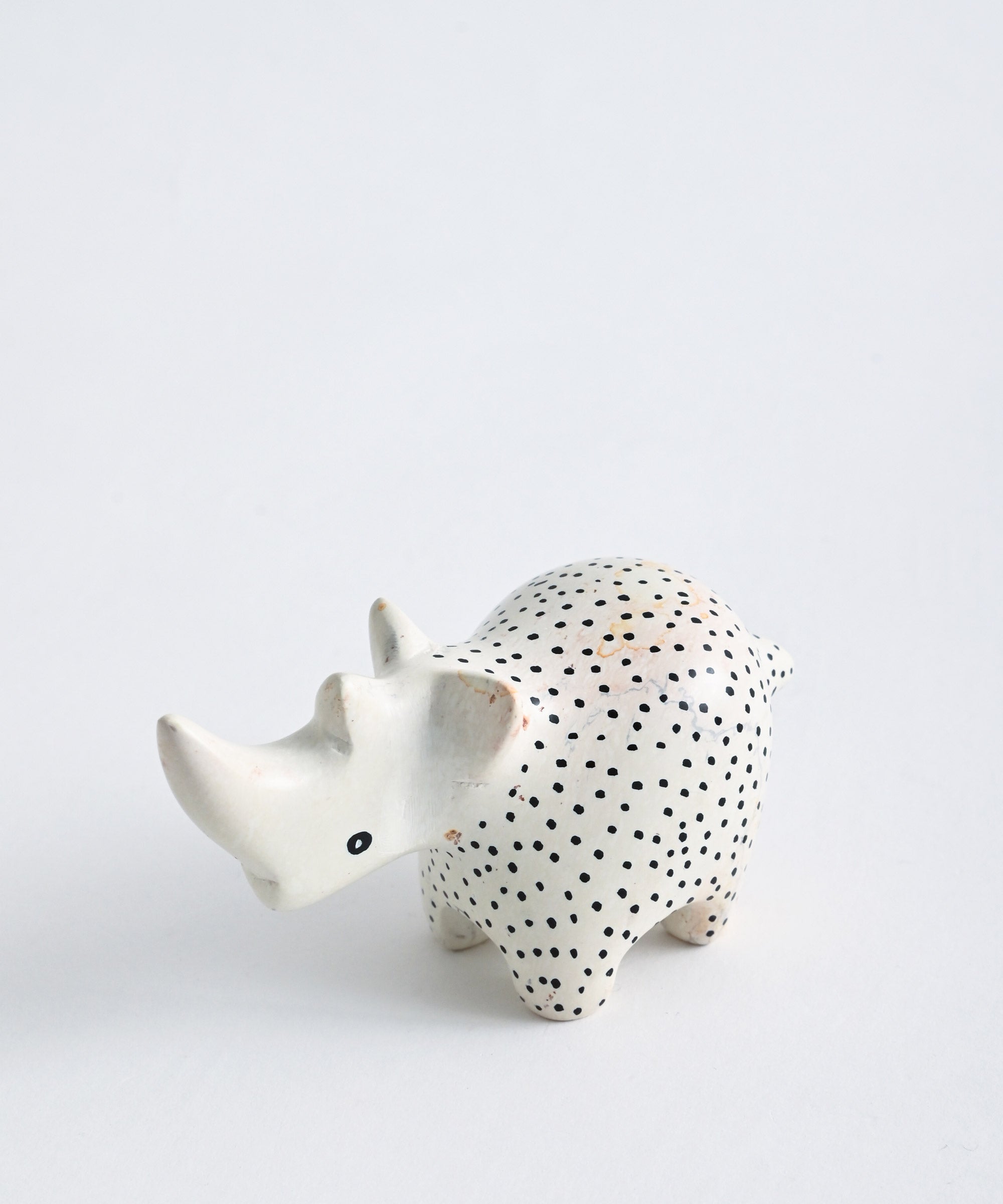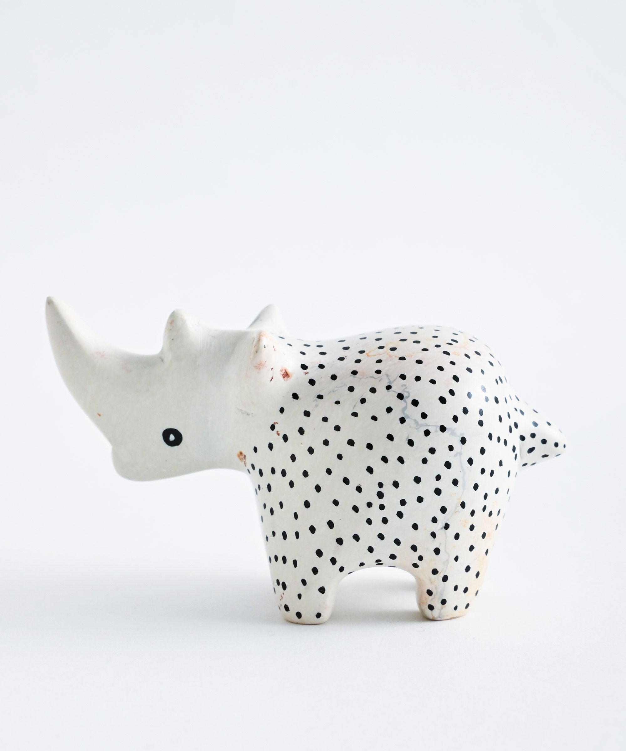 ケニアの特産品ソープストーンに手描きの味わいある絵付けが施された置物。