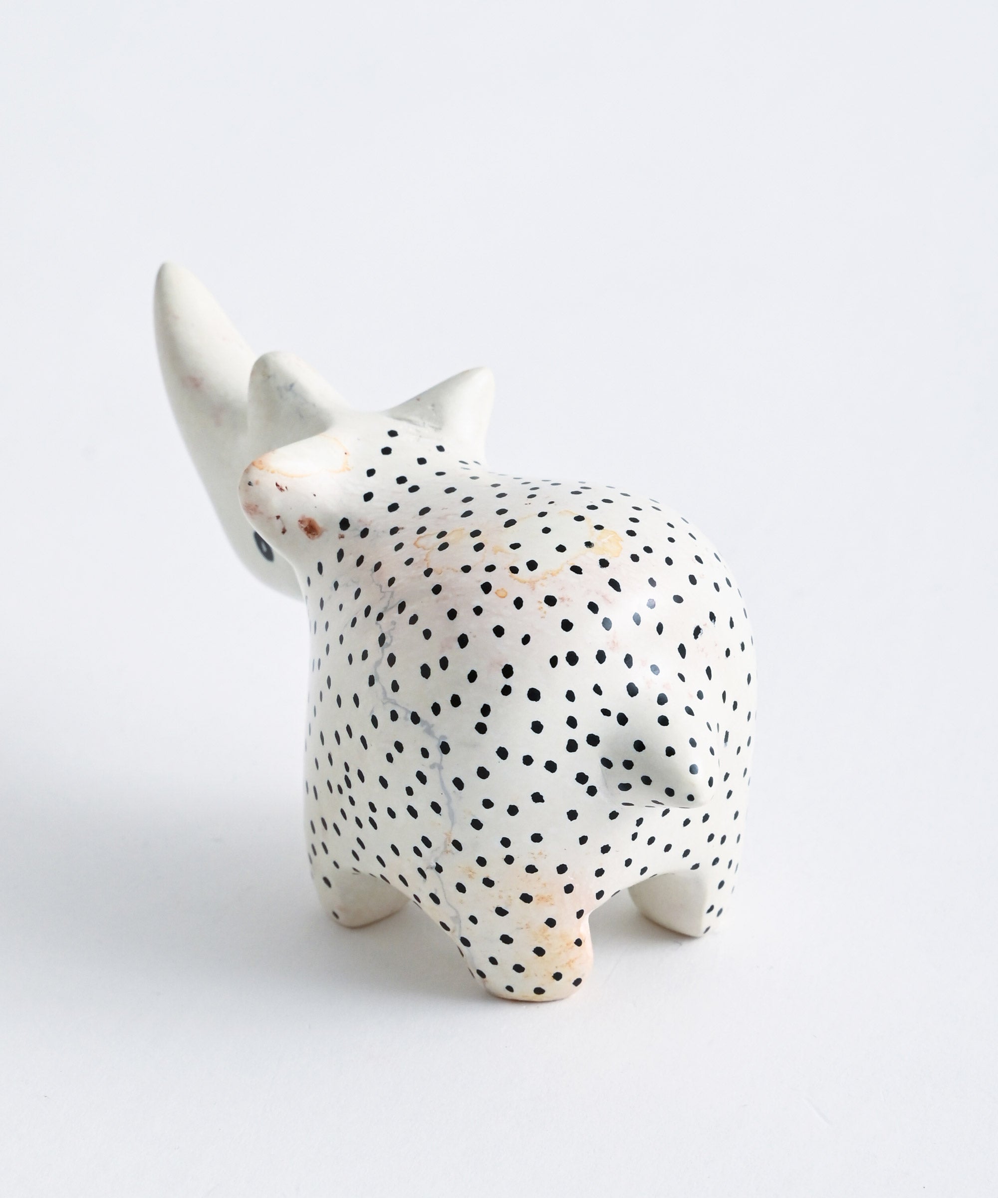 石鹸のような滑らかな質感が美しい”ソープストーン”で作られたサイのオブジェ。