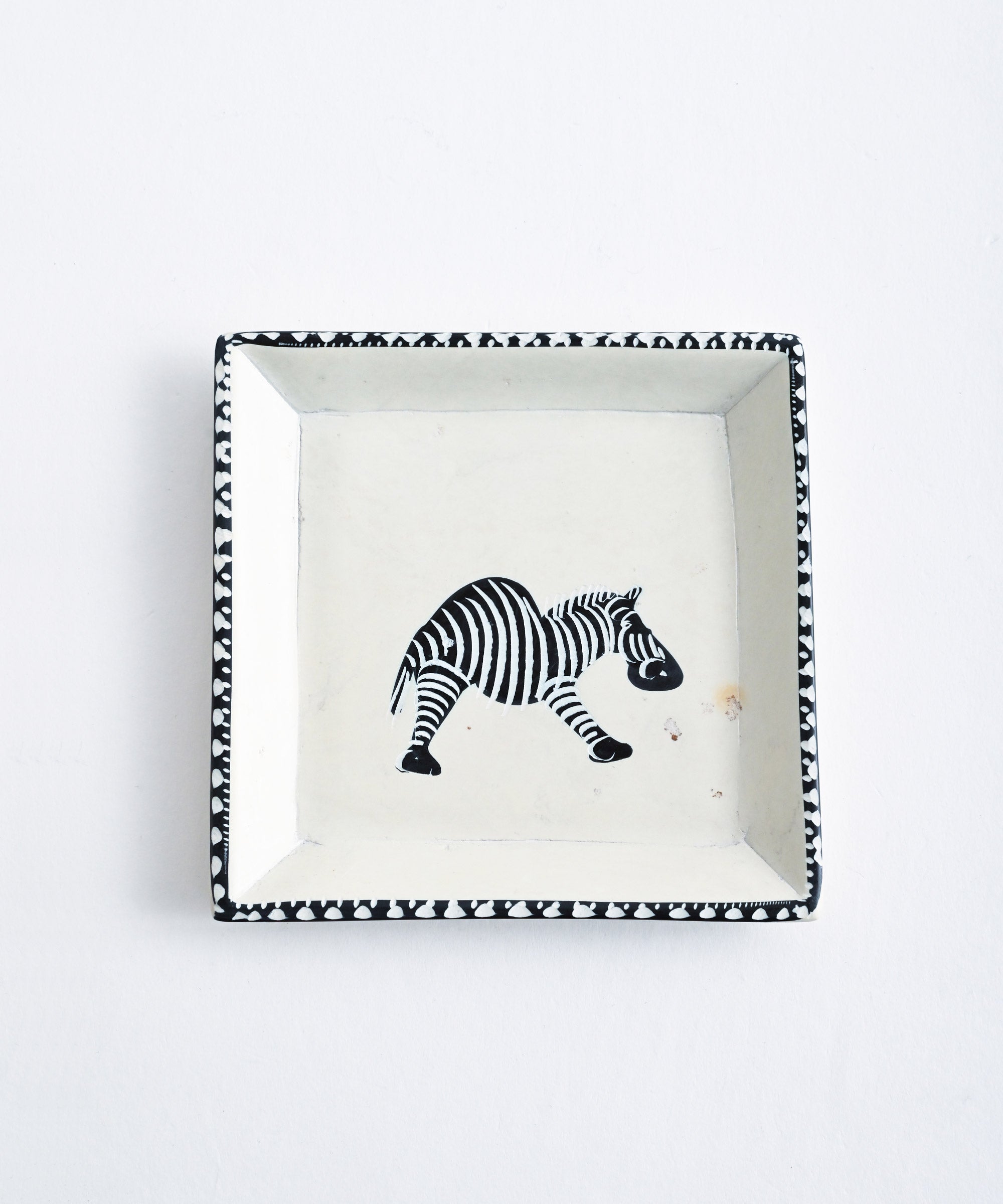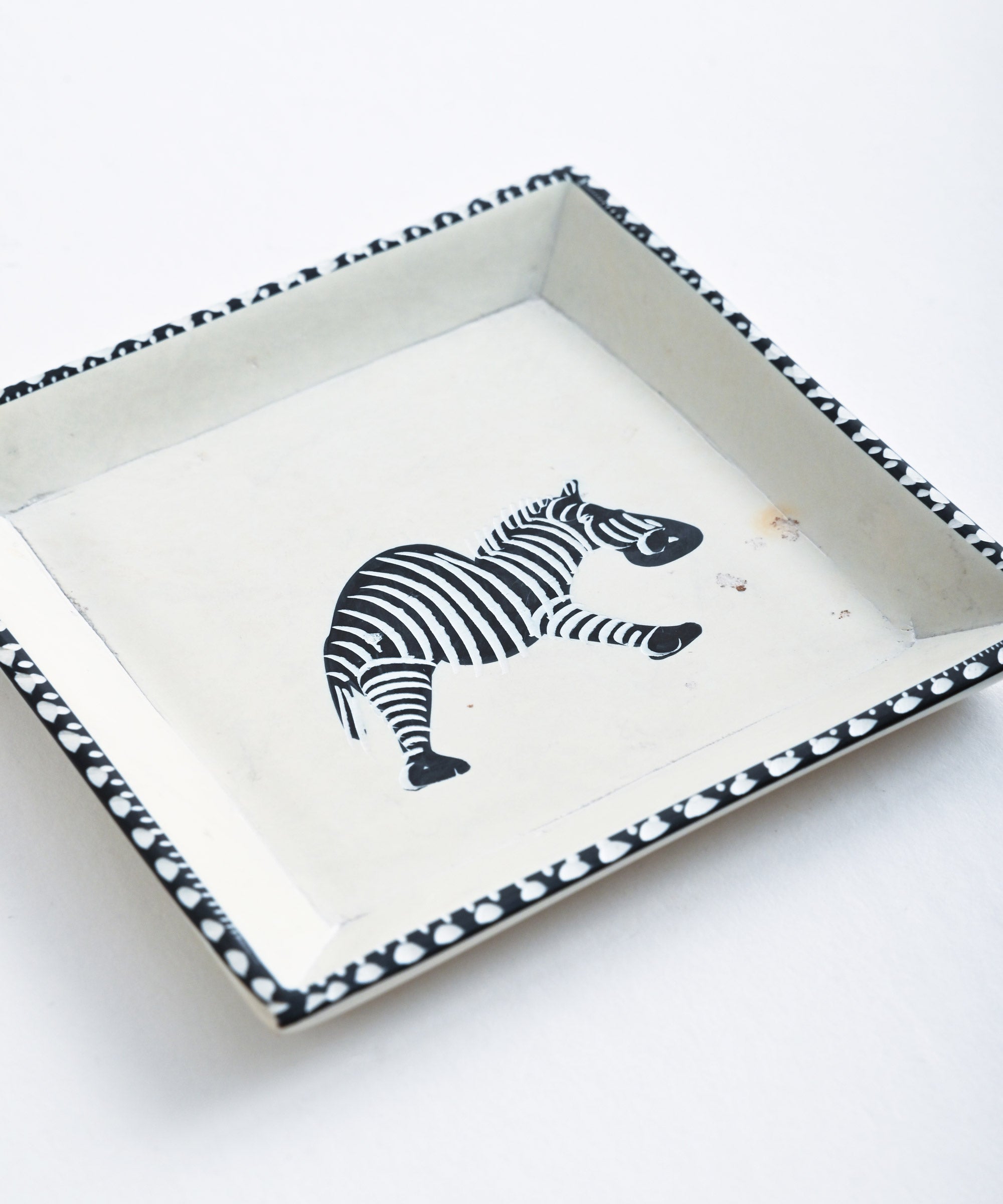 手づくりの風合いとスタイリッシュなモノトーンのしまうまの絵付けがモダンな印象。