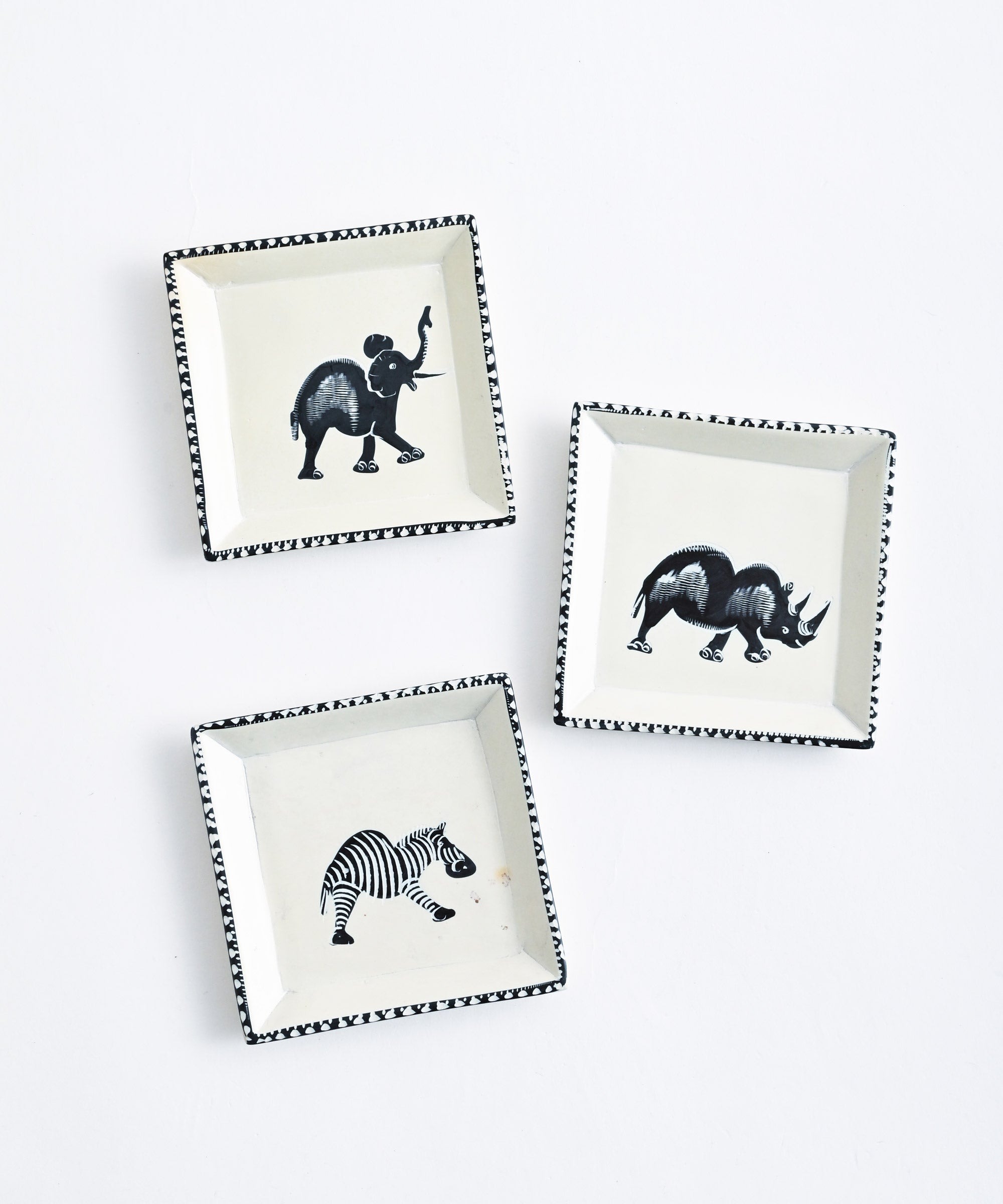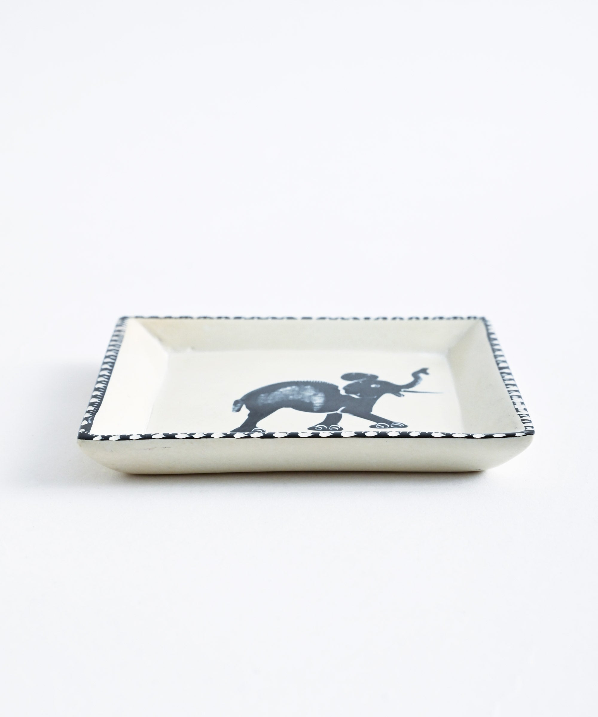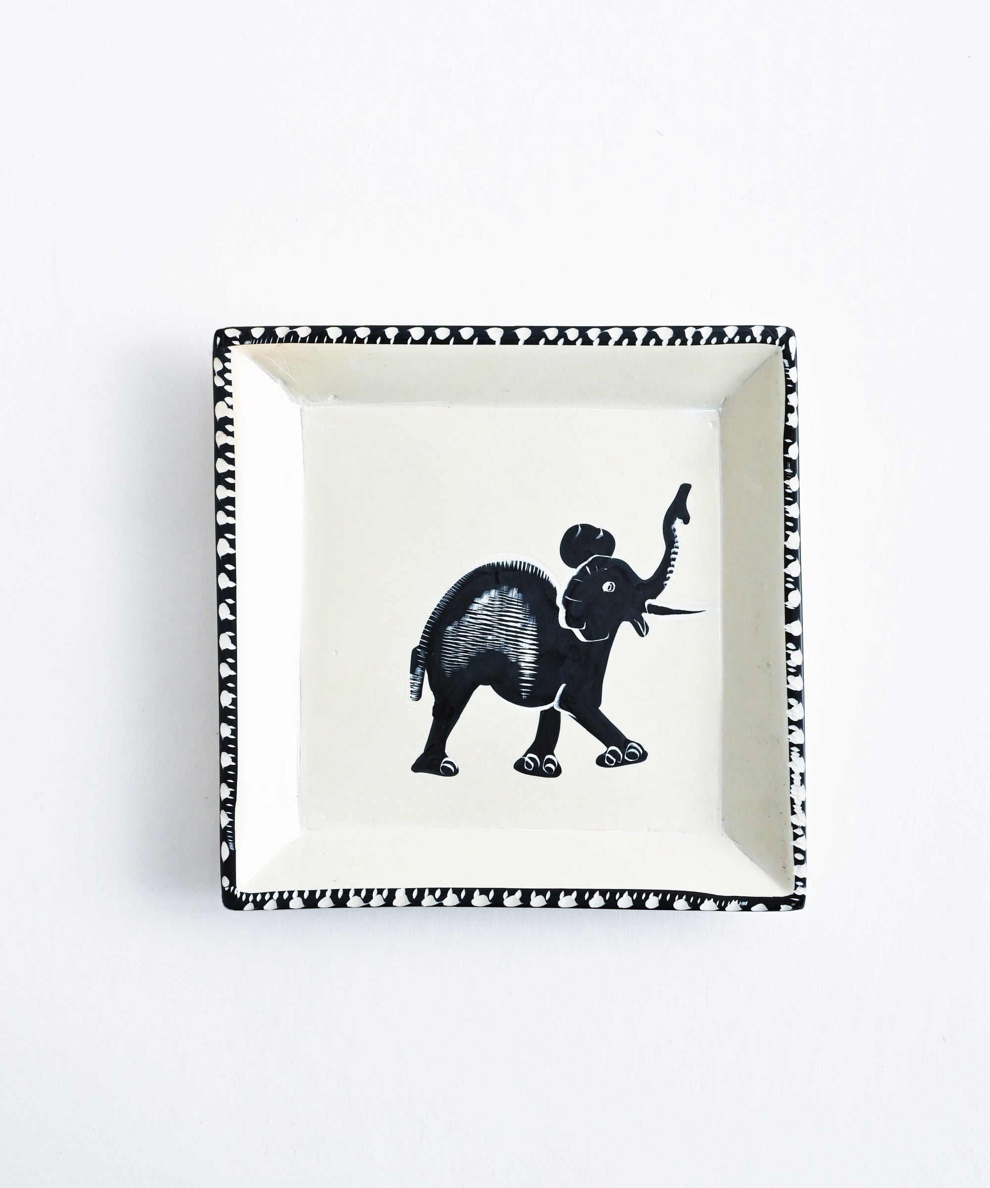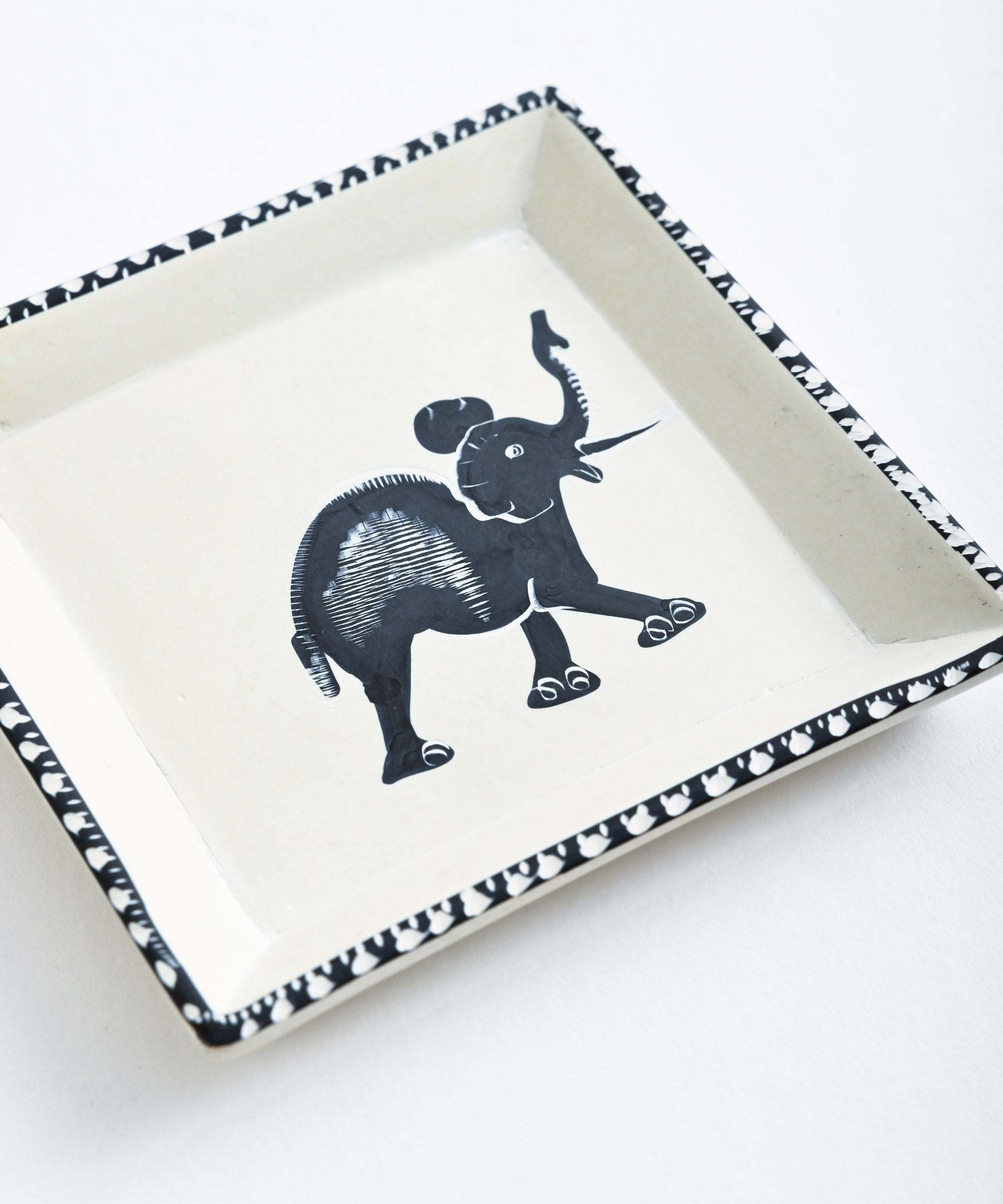 手づくりの風合いとスタイリッシュなモノトーンの象の絵付けがモダンな印象。