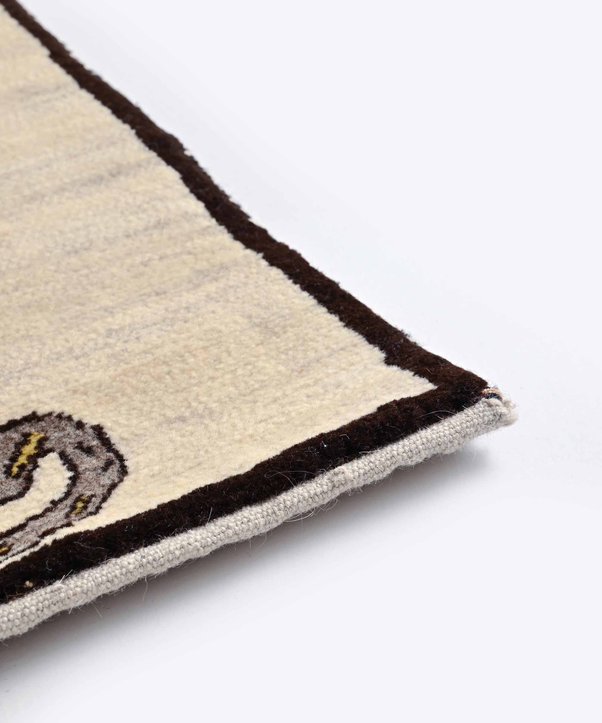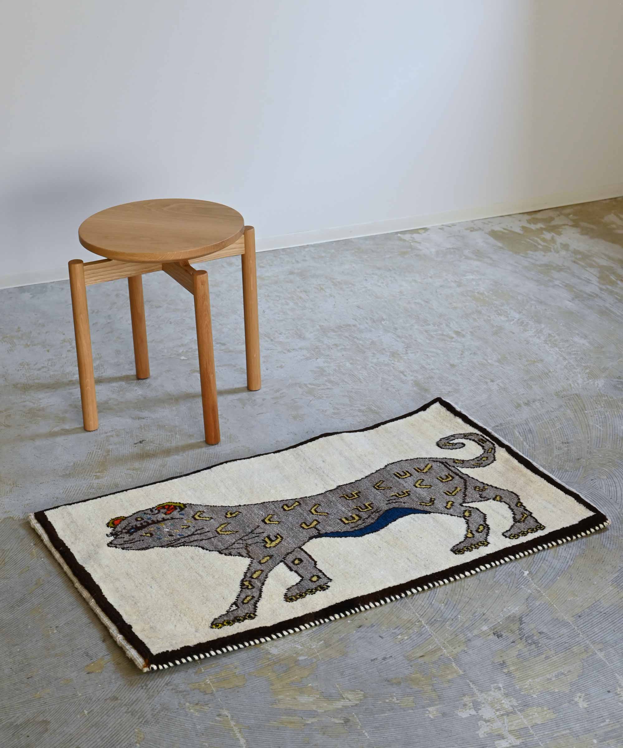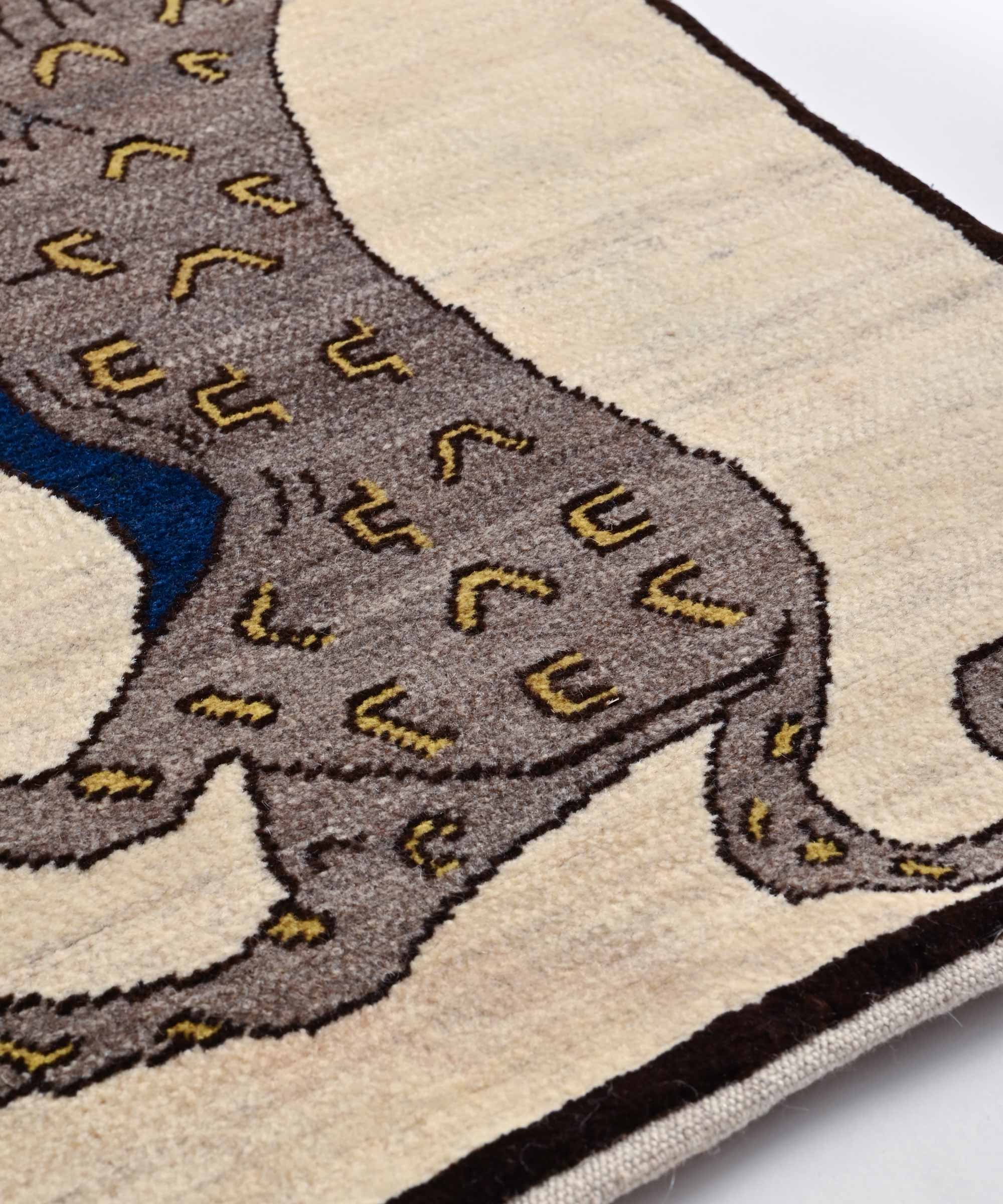 ご自宅の玄関やベッドサイドに置くだけでポイントになりそうな動物柄。架空の動物をモチーフに織り手のオリジナリティと遊び心がたっぷり詰まったこだわりの逸品です。一人がけのソファの足元やデスク回りに敷くのもおすすめです。
