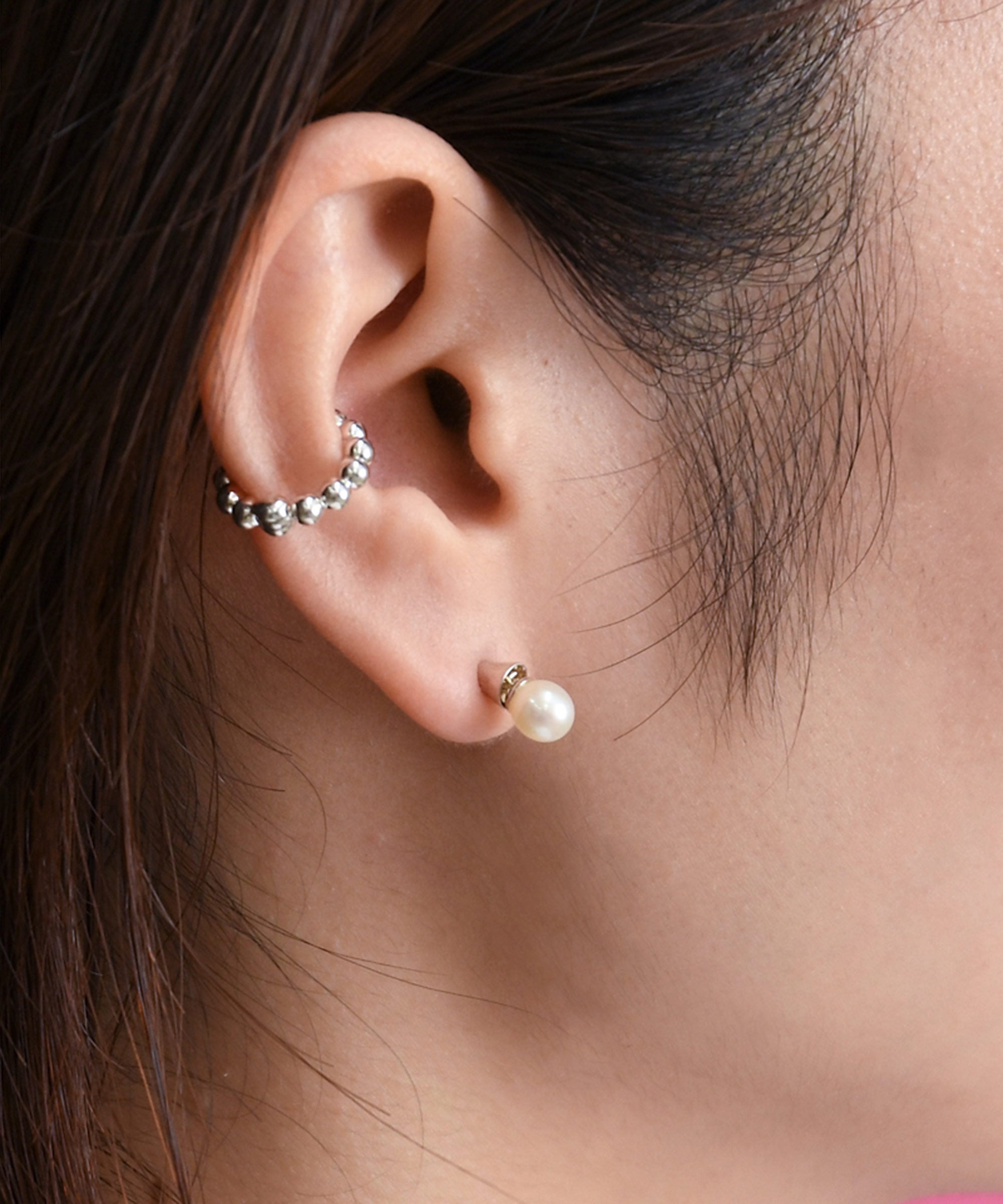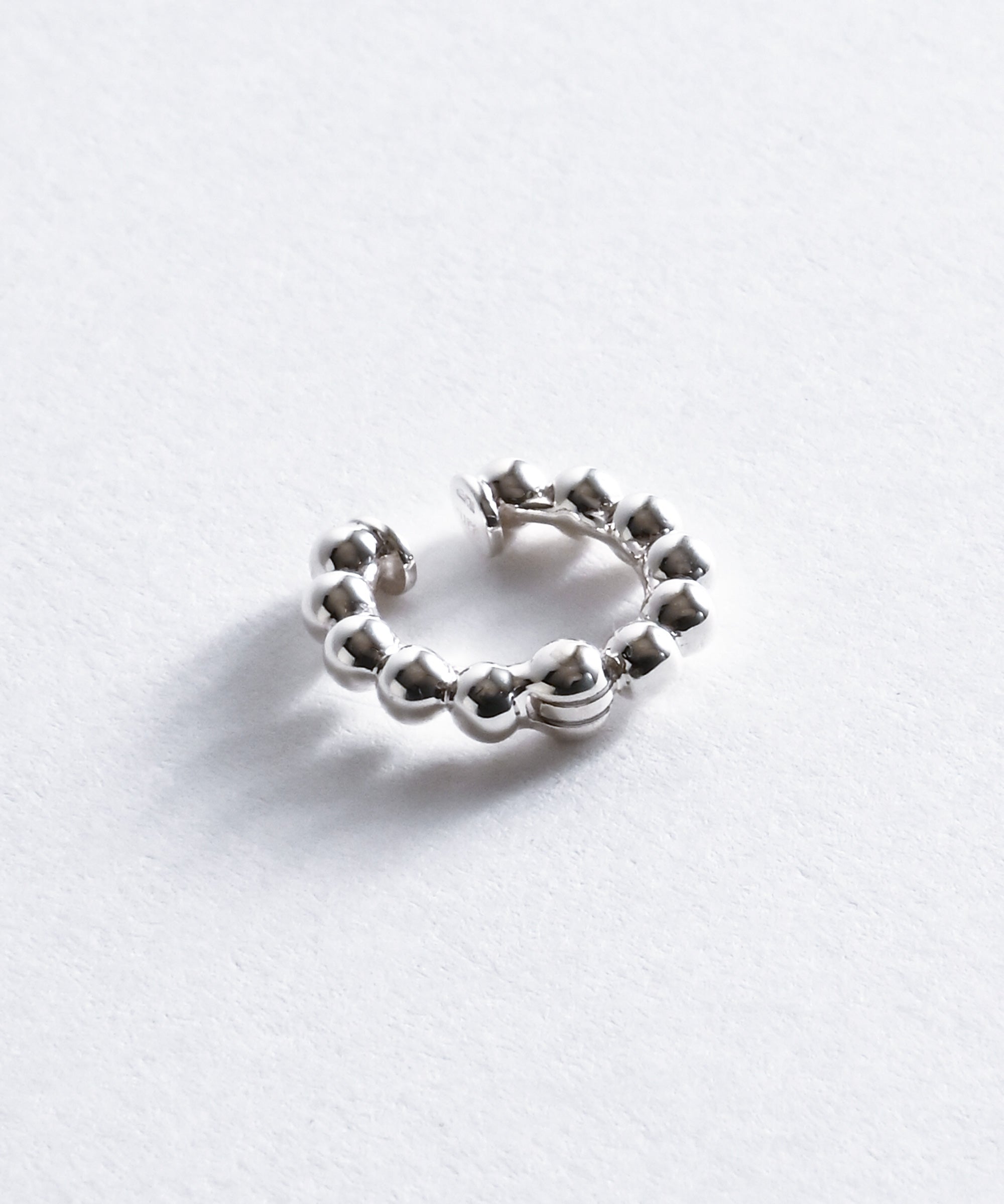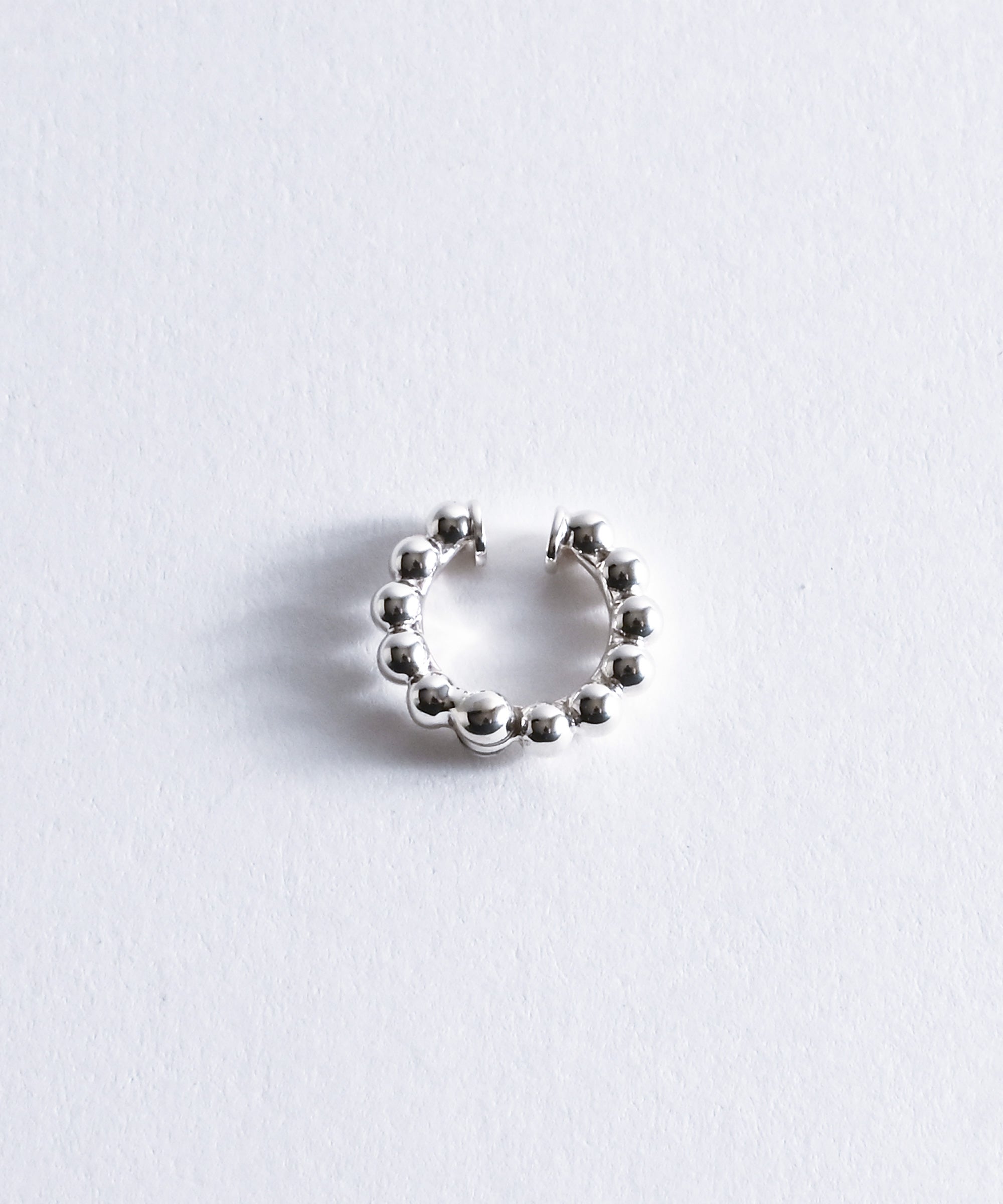 丸いシルバーの輝きを楽しめるメタルなイヤーカフは