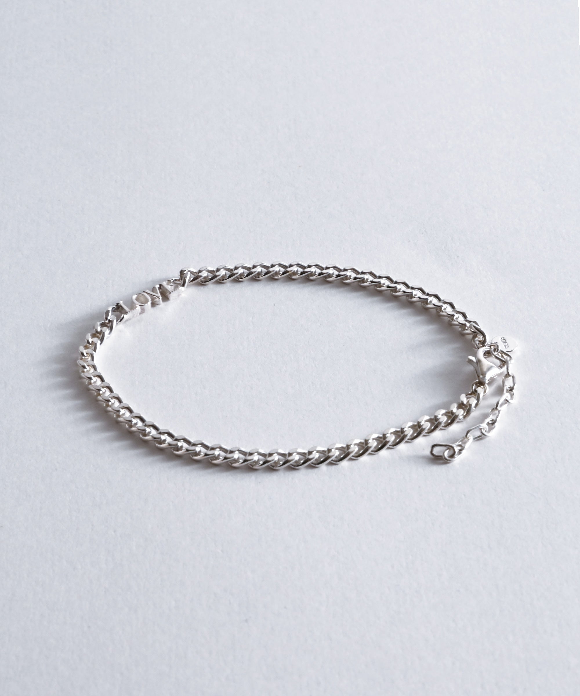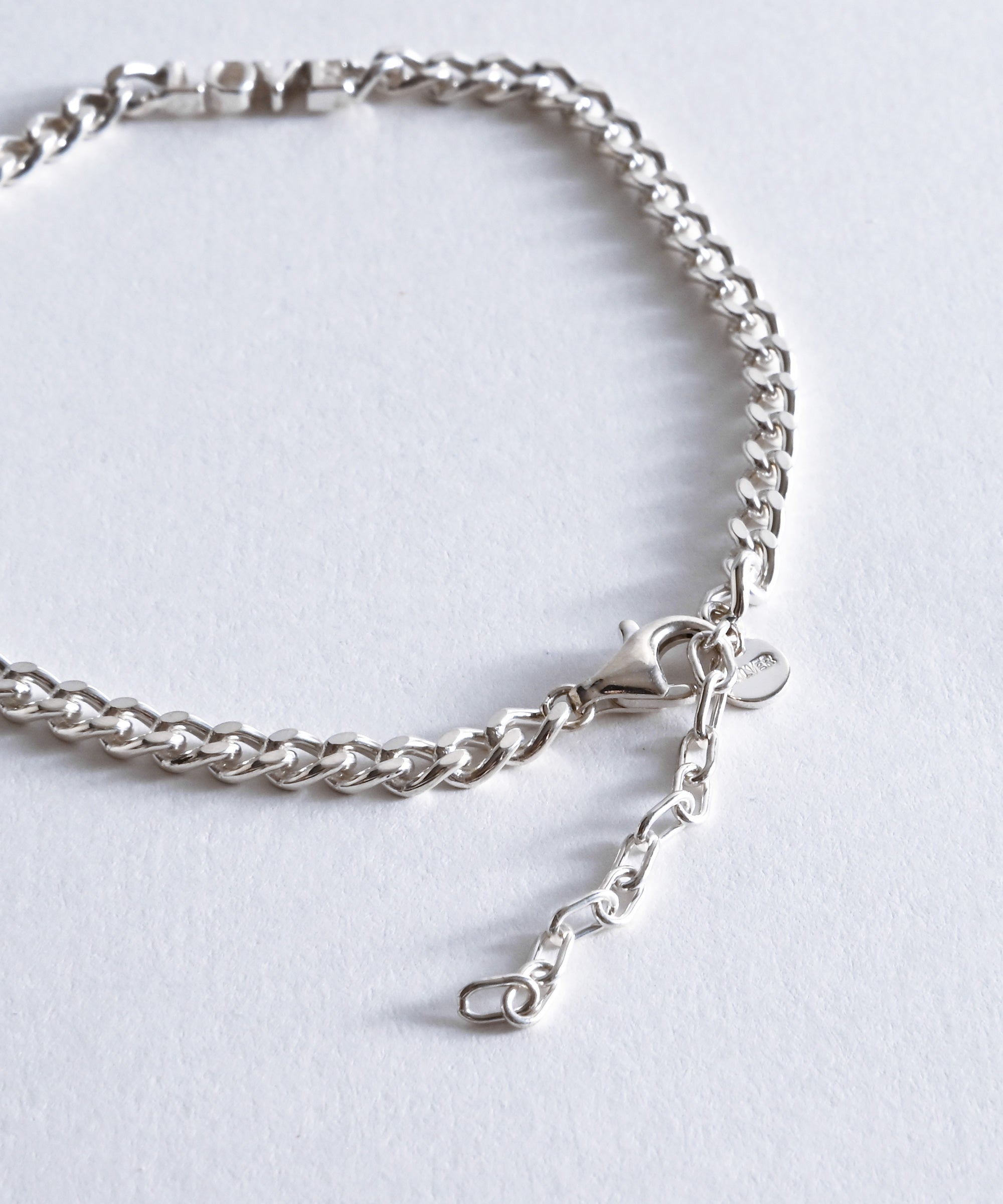 太めのチェーンにLOVEが隠れているシルバーのブレスレット。