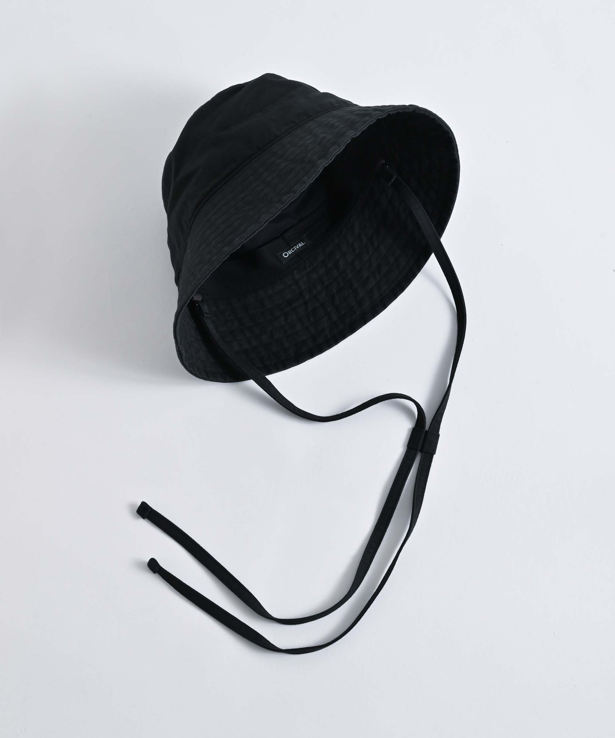 深めのクラウンのバケットハット。日差しをしっかりと遮ってくれます。