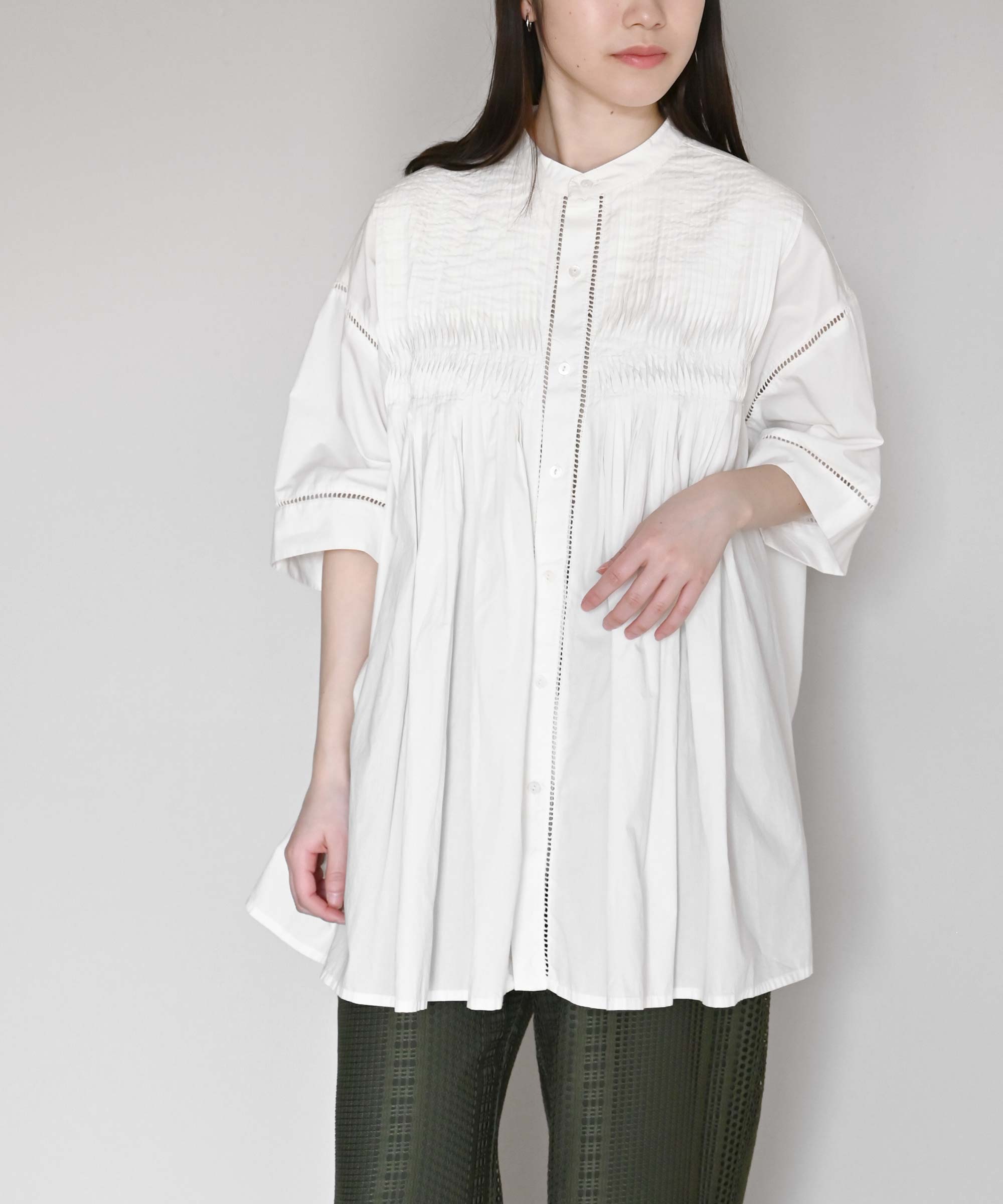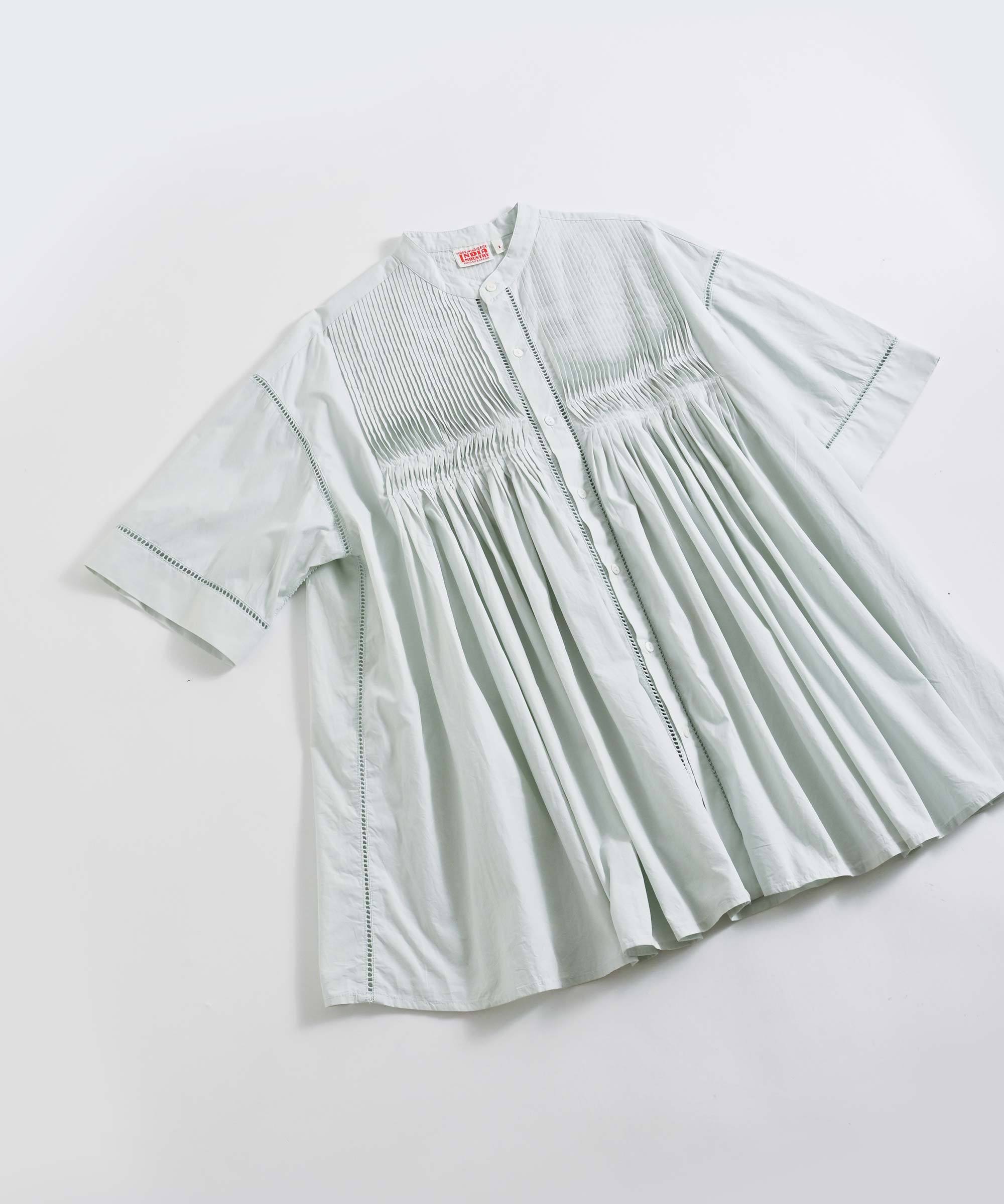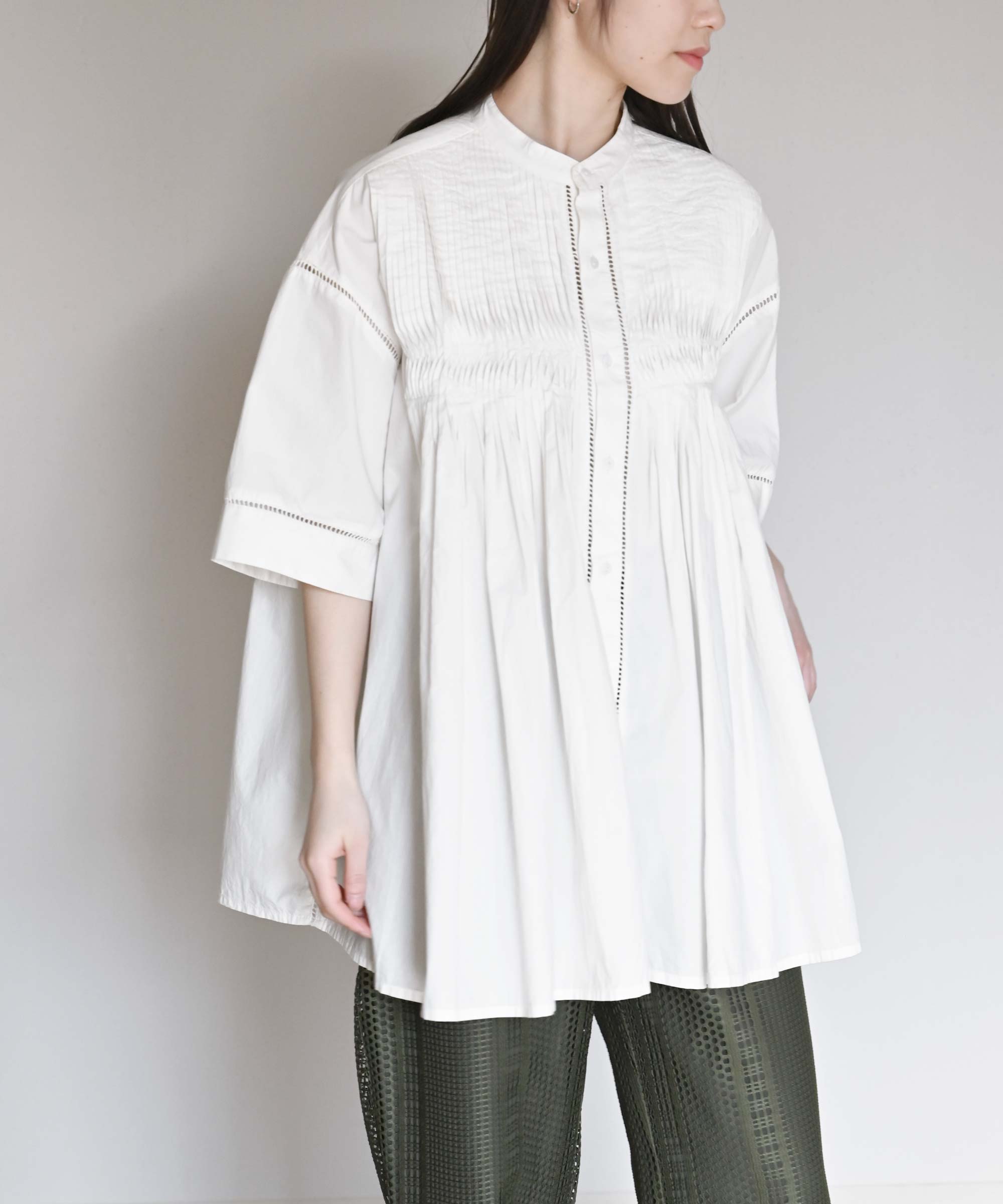 たっぷりのピンタックから生まれるボリューム感と、長めのチュニック丈で体型カバーも叶う大人なバランスに仕上げました。