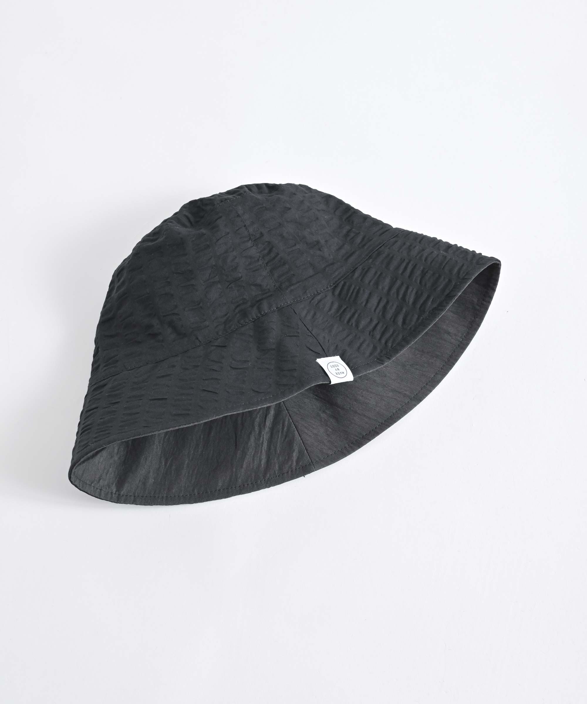 凹凸のあるサッカー生地を使用したリバーシブル仕様のバケットハット。