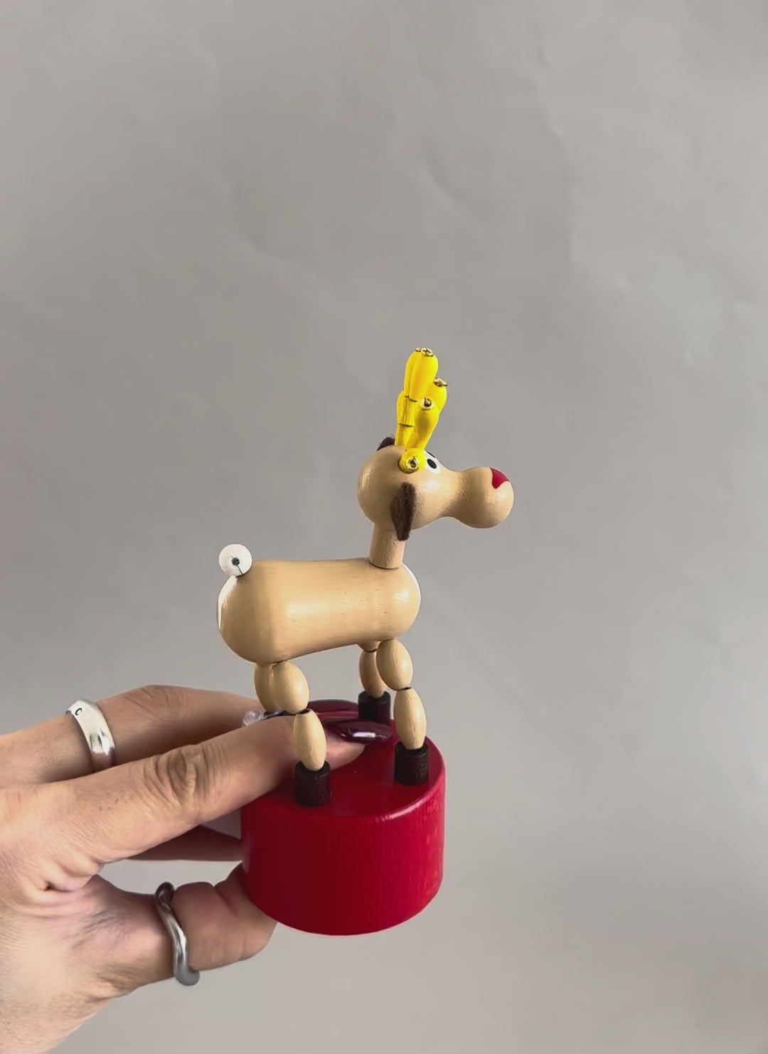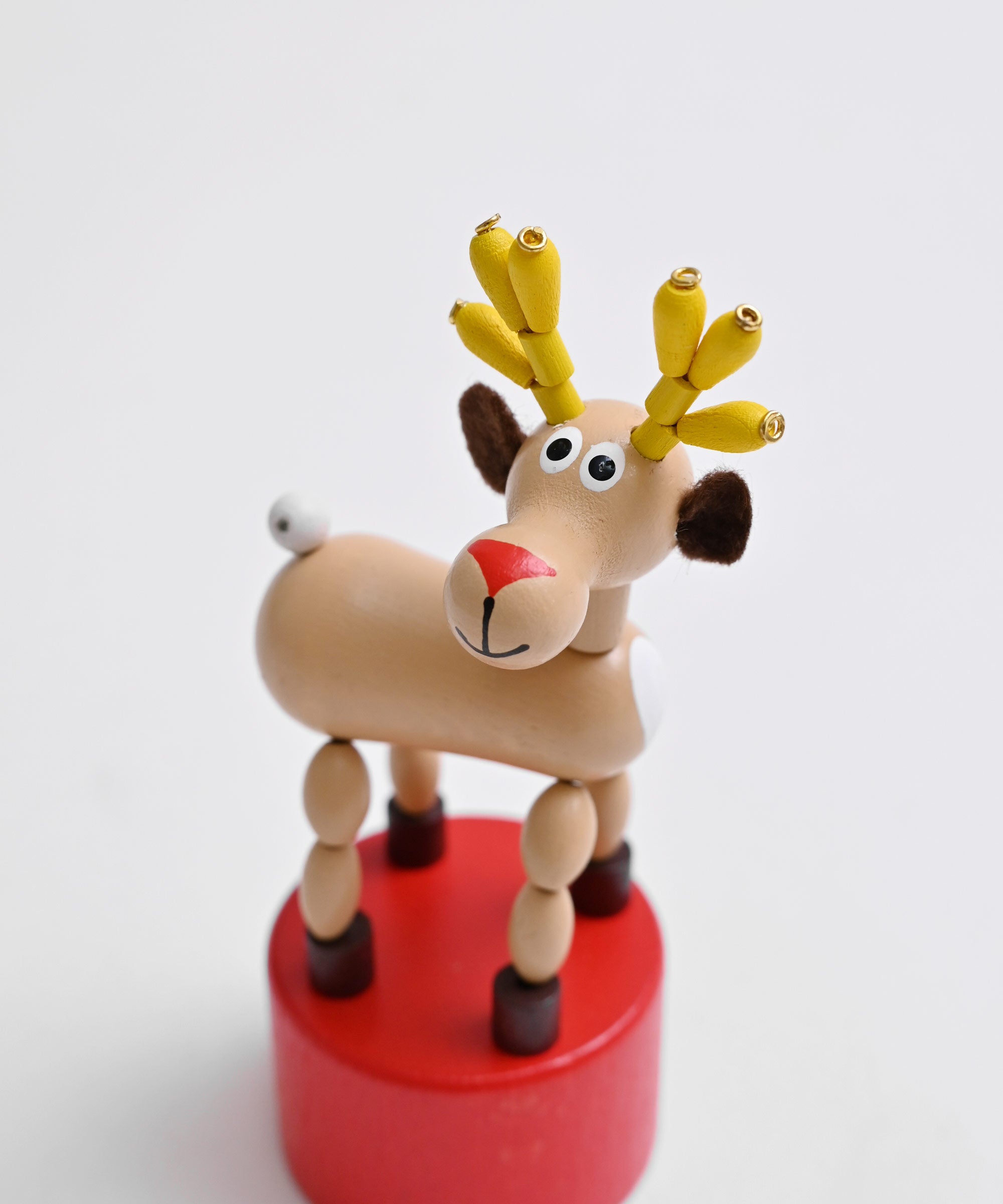 チェコで作られたトナカイの木製プッシュアップトイ。