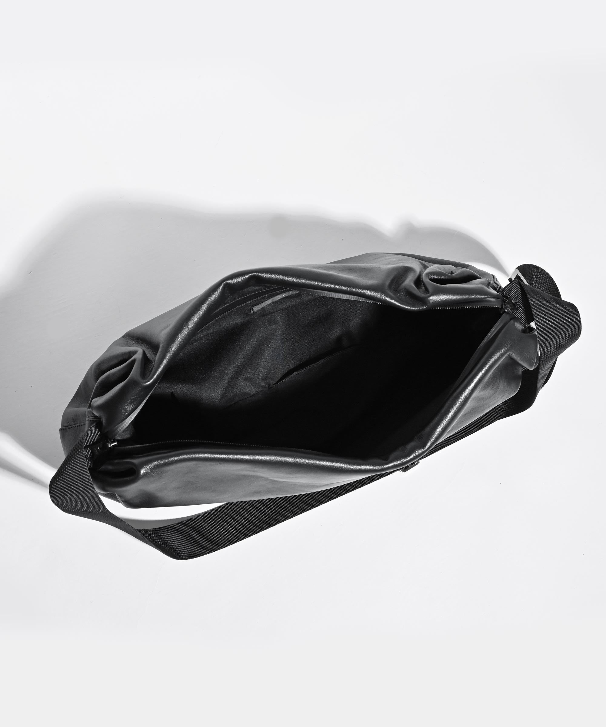 船の竜骨(船首から船尾にかけて通す強度部材)のようなマチの設計にすることで、強度を確保。ボディバッグとしてもショルダーバッグとしても利用可能。使い込むと皮がなじみ程よくクタってくることをイメージしてデザインされました。