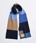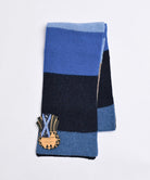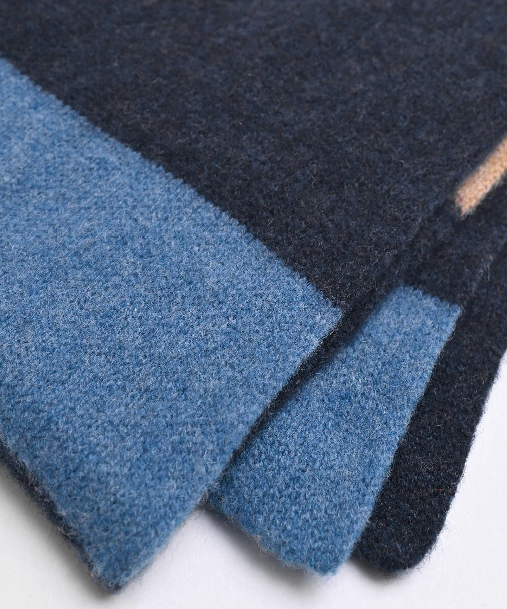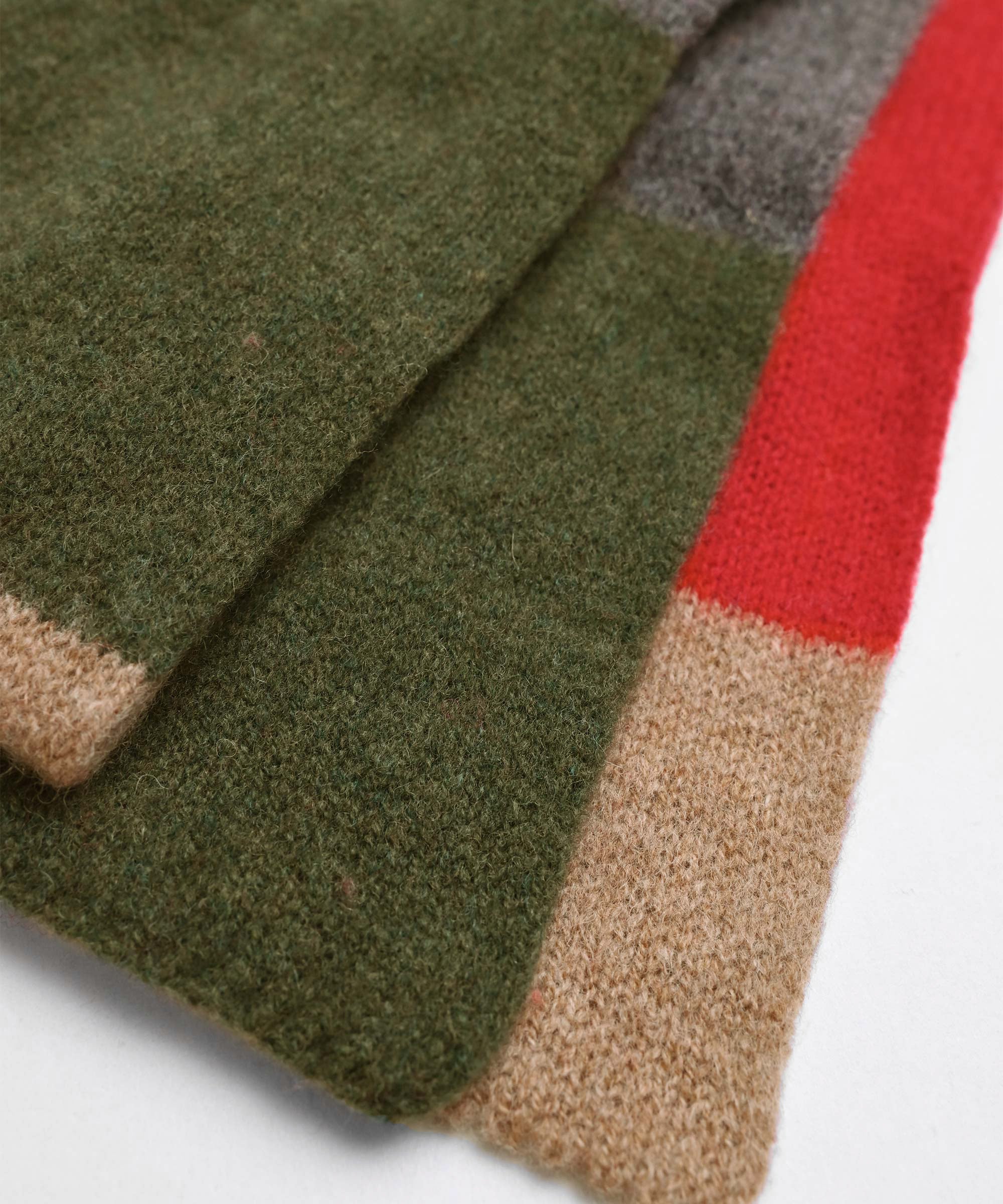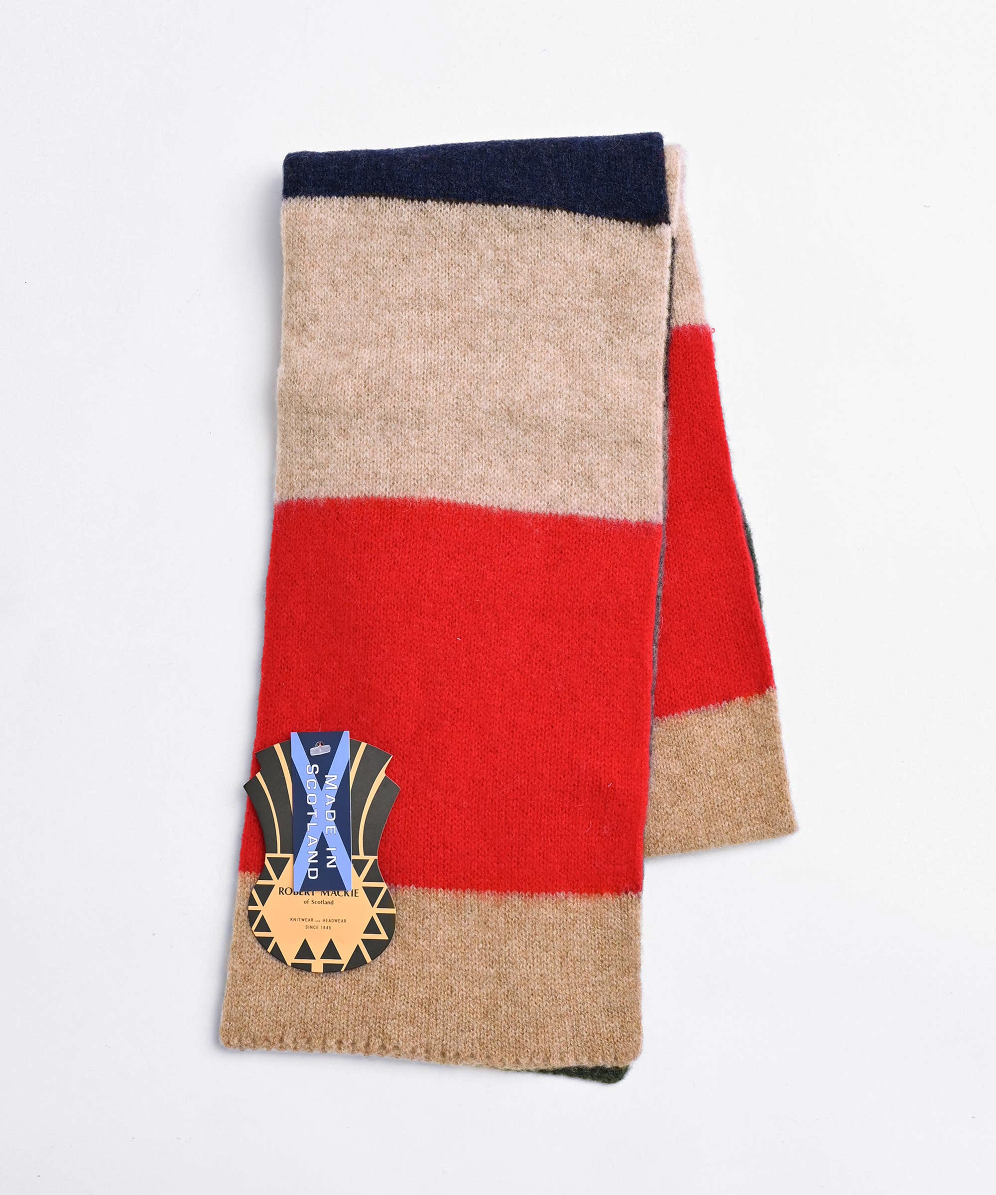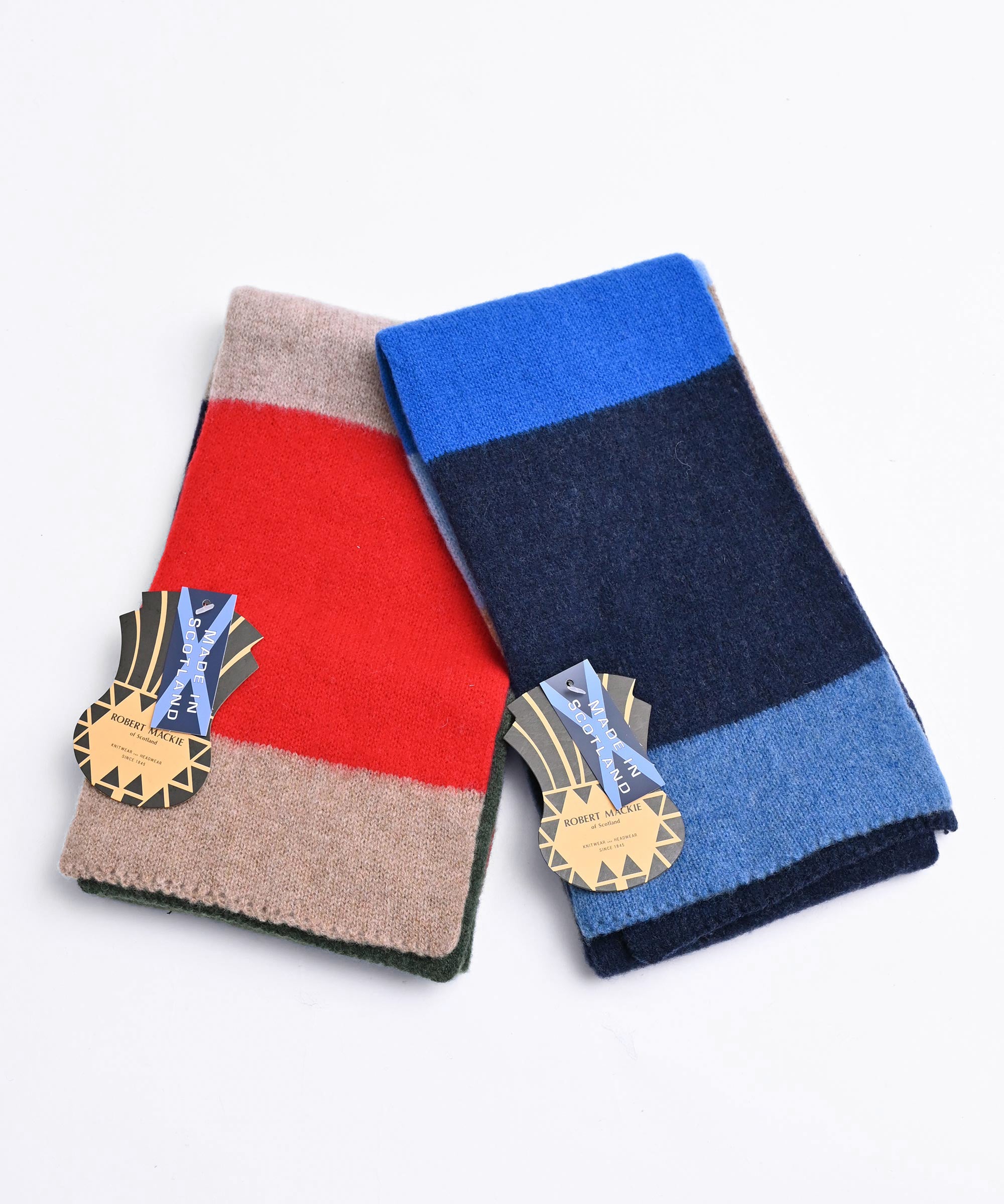 カラフルな色の切り替えがコーディネートのアクセントになるニットマフラー。プレゼントとしてもおすすめです。