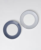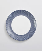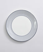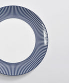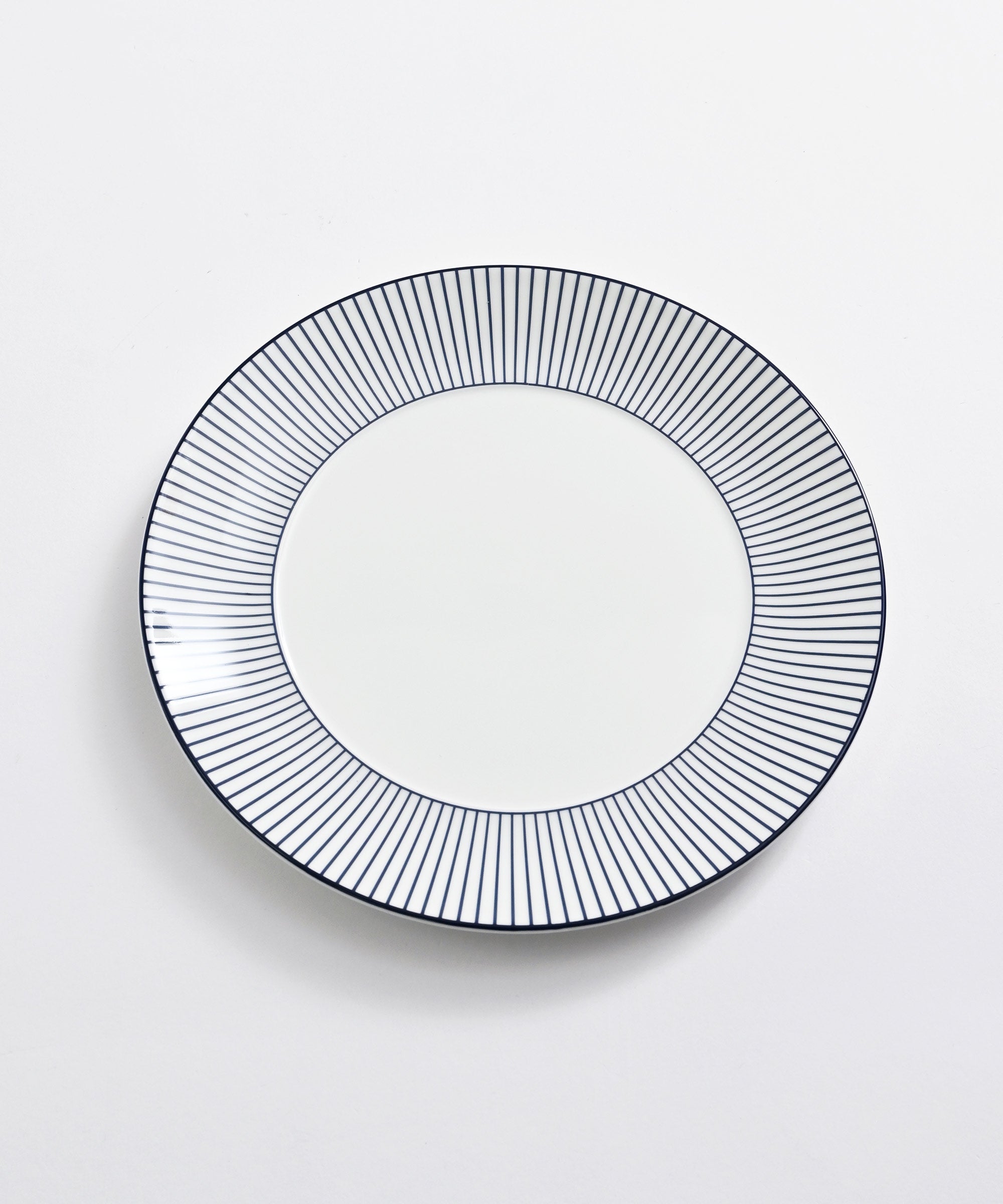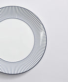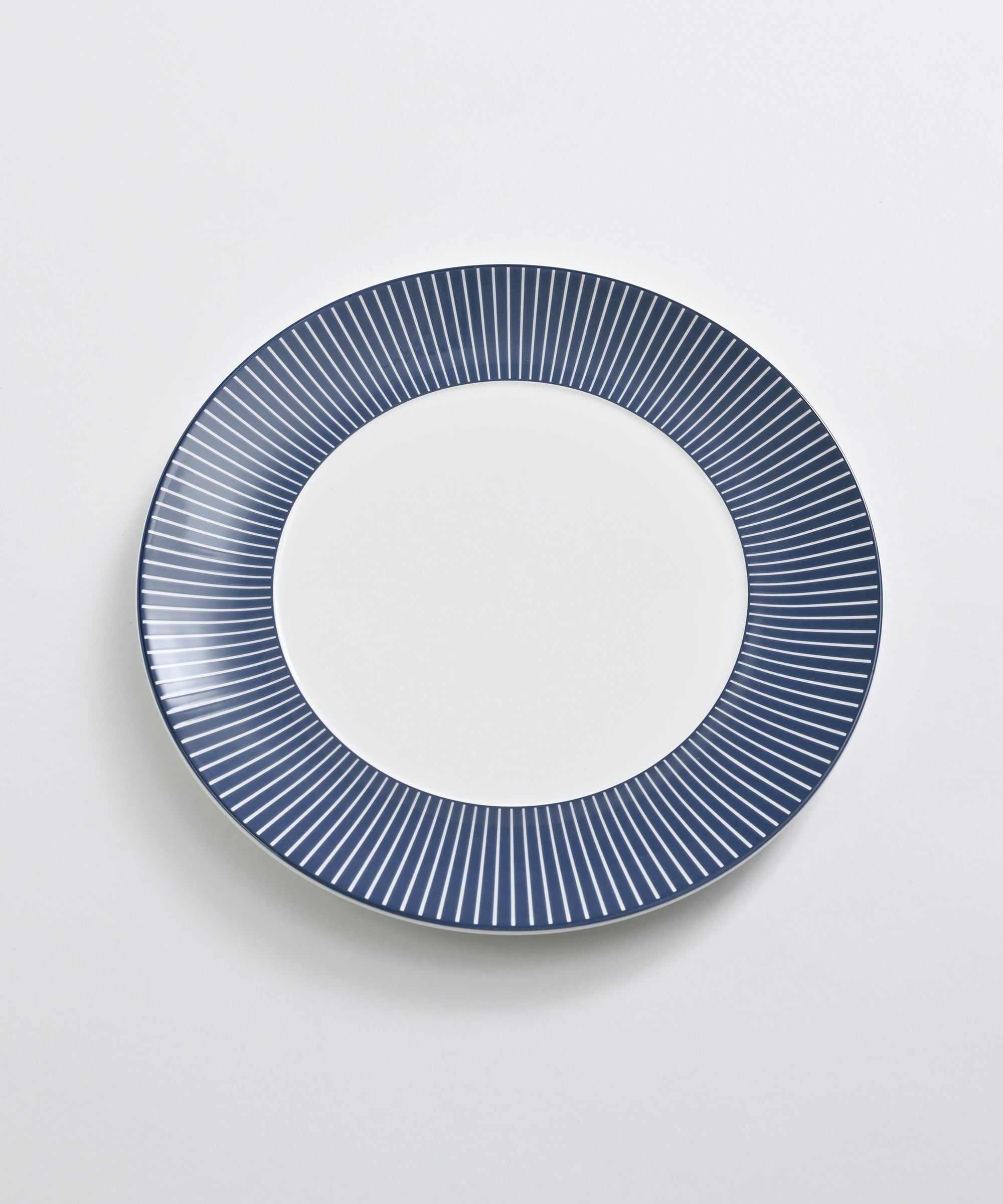 ジオ ブルー(ピンストライプ)コレクションは、ウェッジウッドの18世紀のアーカイブの中から、エンジンターン技法で制作されたブラックバサルトにインスピレーションを得てデザインされており、ジャスパーパンサーベースのなどの作品に見られる、エンジンターンで作り出すストライプ デザインを彷彿とさせます。深みのあるブルーはポートランドブルージャスパーに着想を得た色で、洗練されつつも心地よいダイニングを演出します。また、ピンストライプは、ジョージアンスタイルの建築に見受けられるフルーテッド(縦溝柄)にも通じ、スーツなどにも用いられる英国らしいモチーフでもあります。縁には、ブルーのハンドライニングが施され、印象を引き締めています。