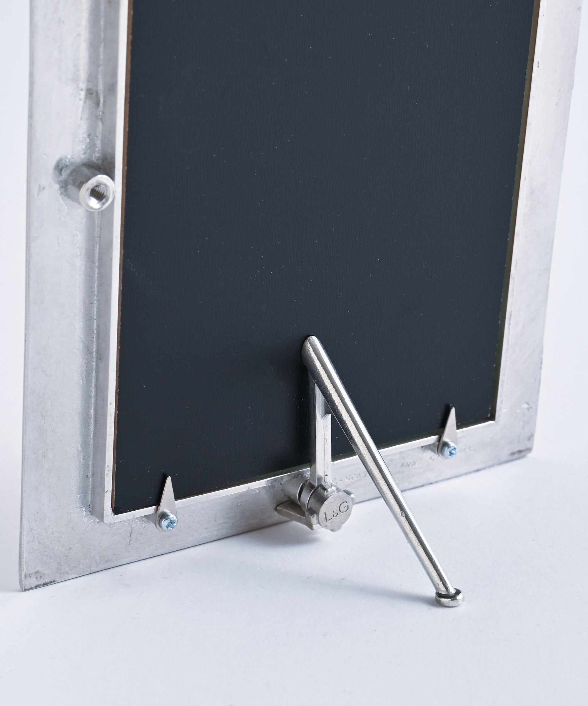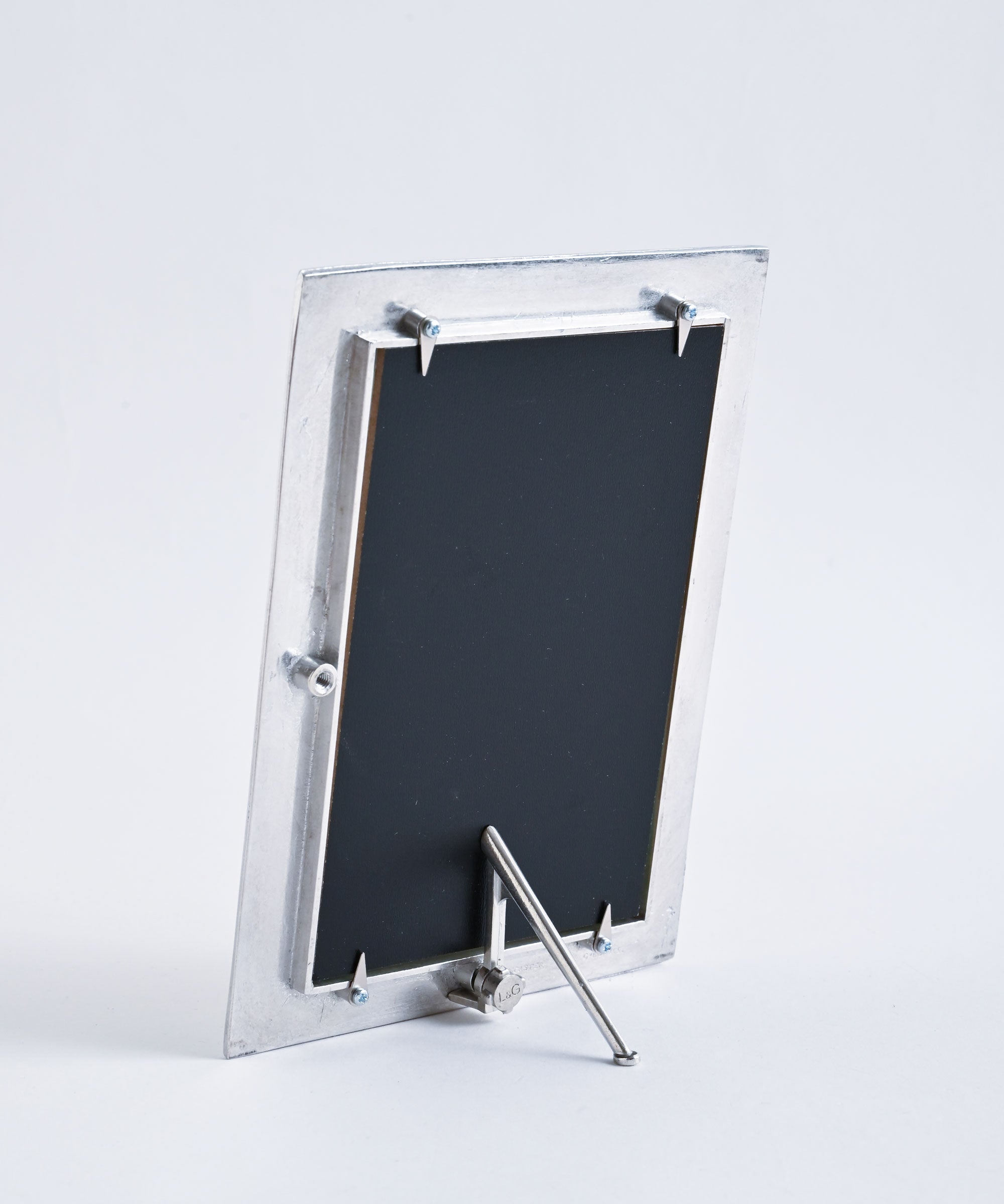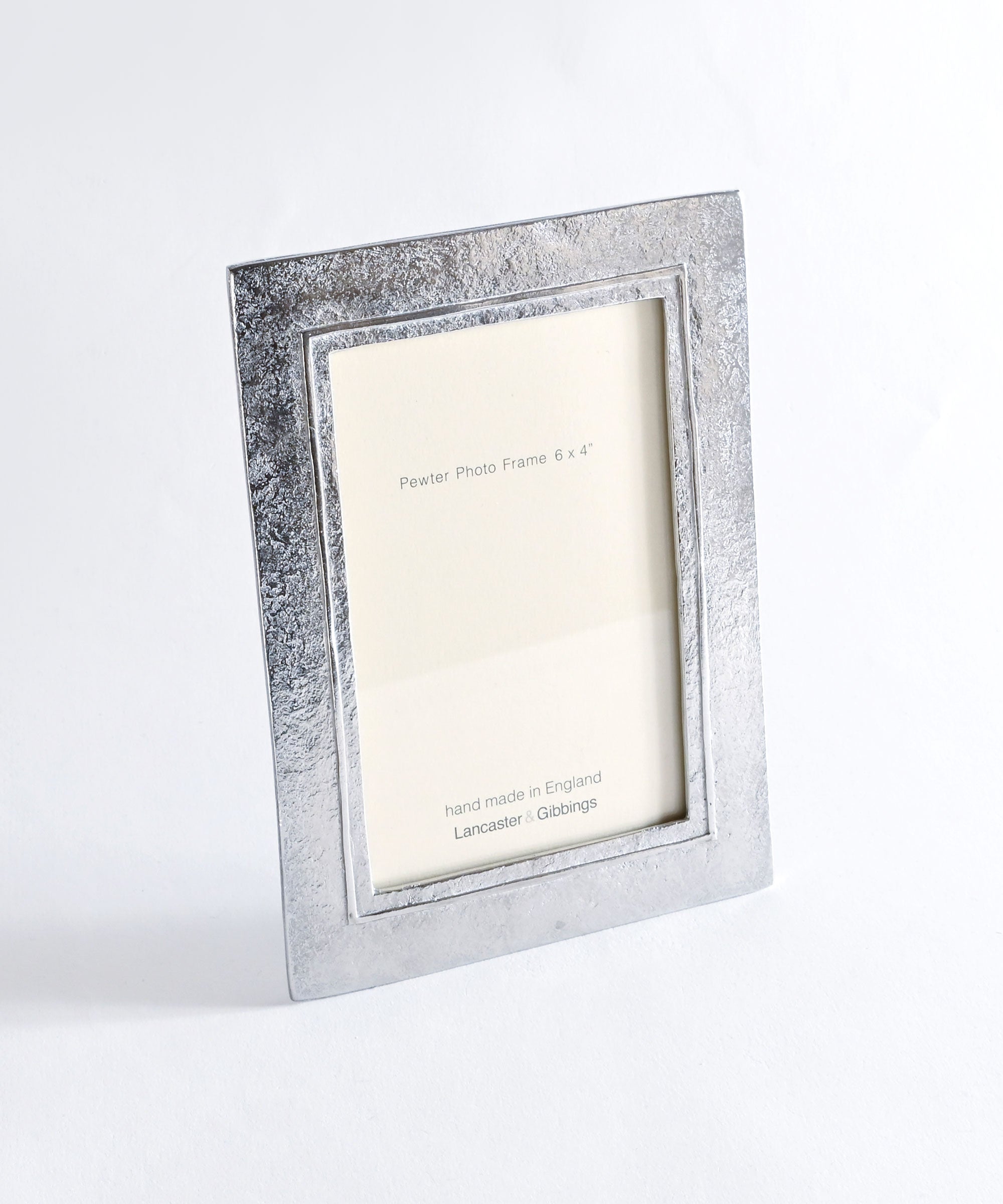 ピューターのマットな質感と職人によるハンドクラフトの風合いが絶妙なバランスの高級感のあるデザインフォトフレーム。