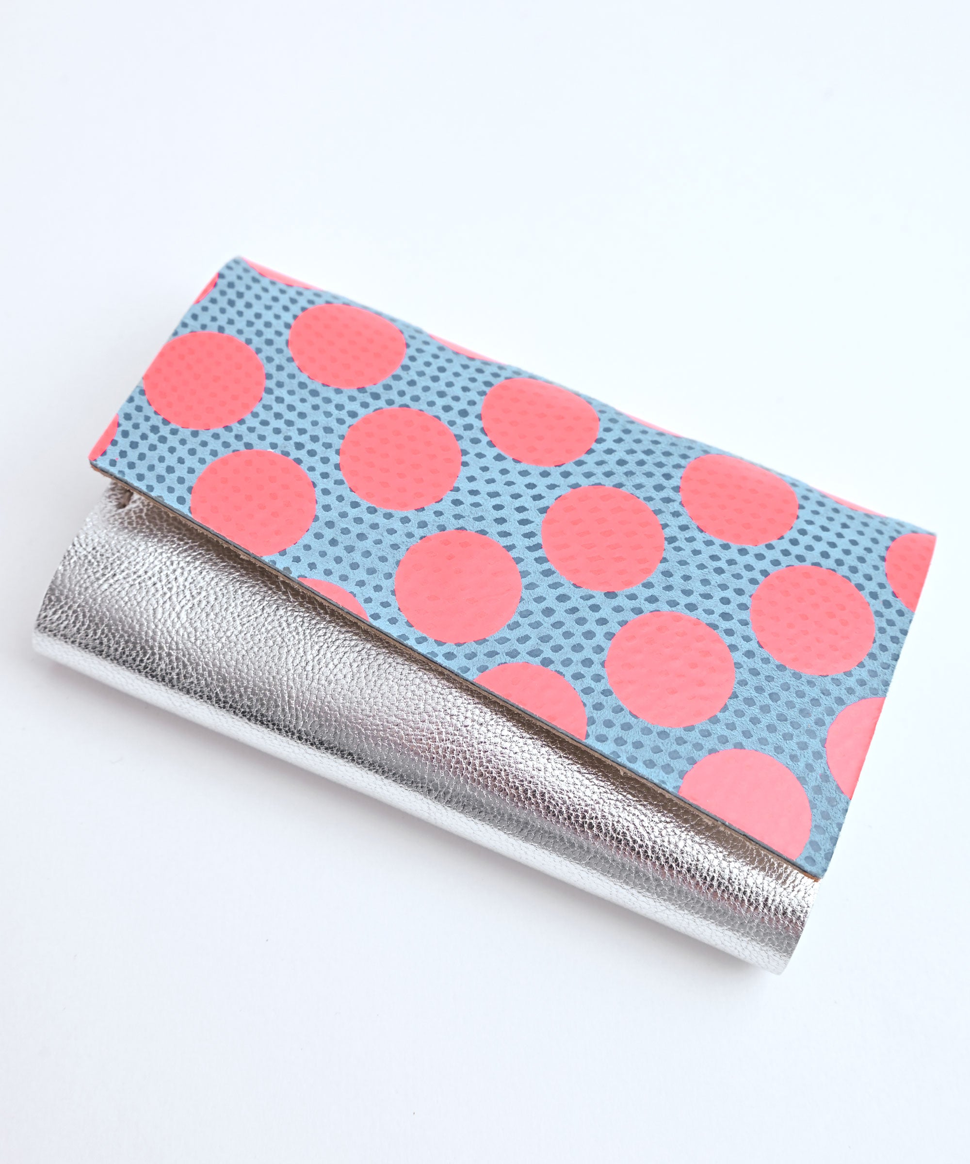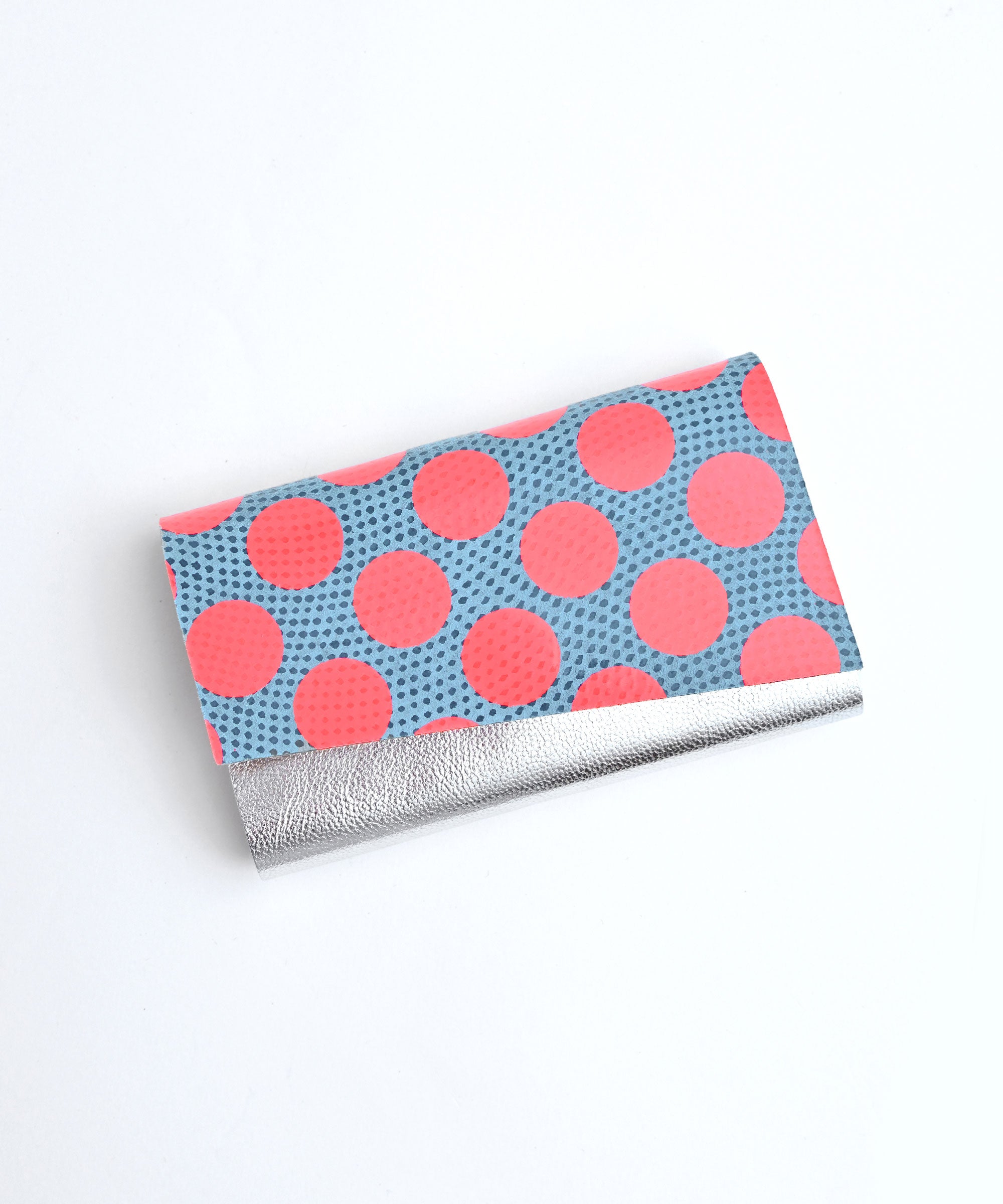 エナメル風コーティング加工により、傷や汚れに強くなっています。ネオンカラーのドット柄がカーマインらしい、キャッチーなデザインです。