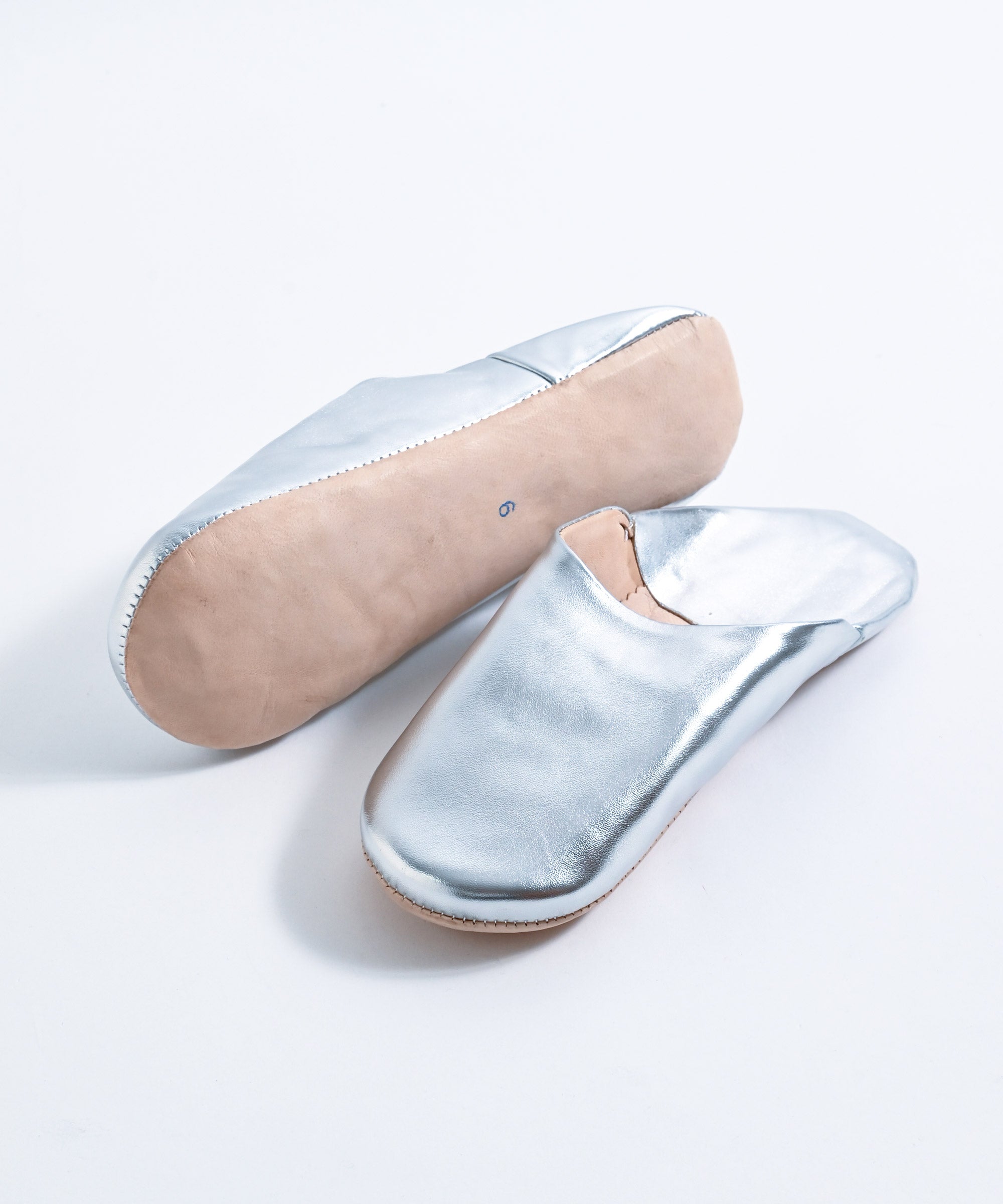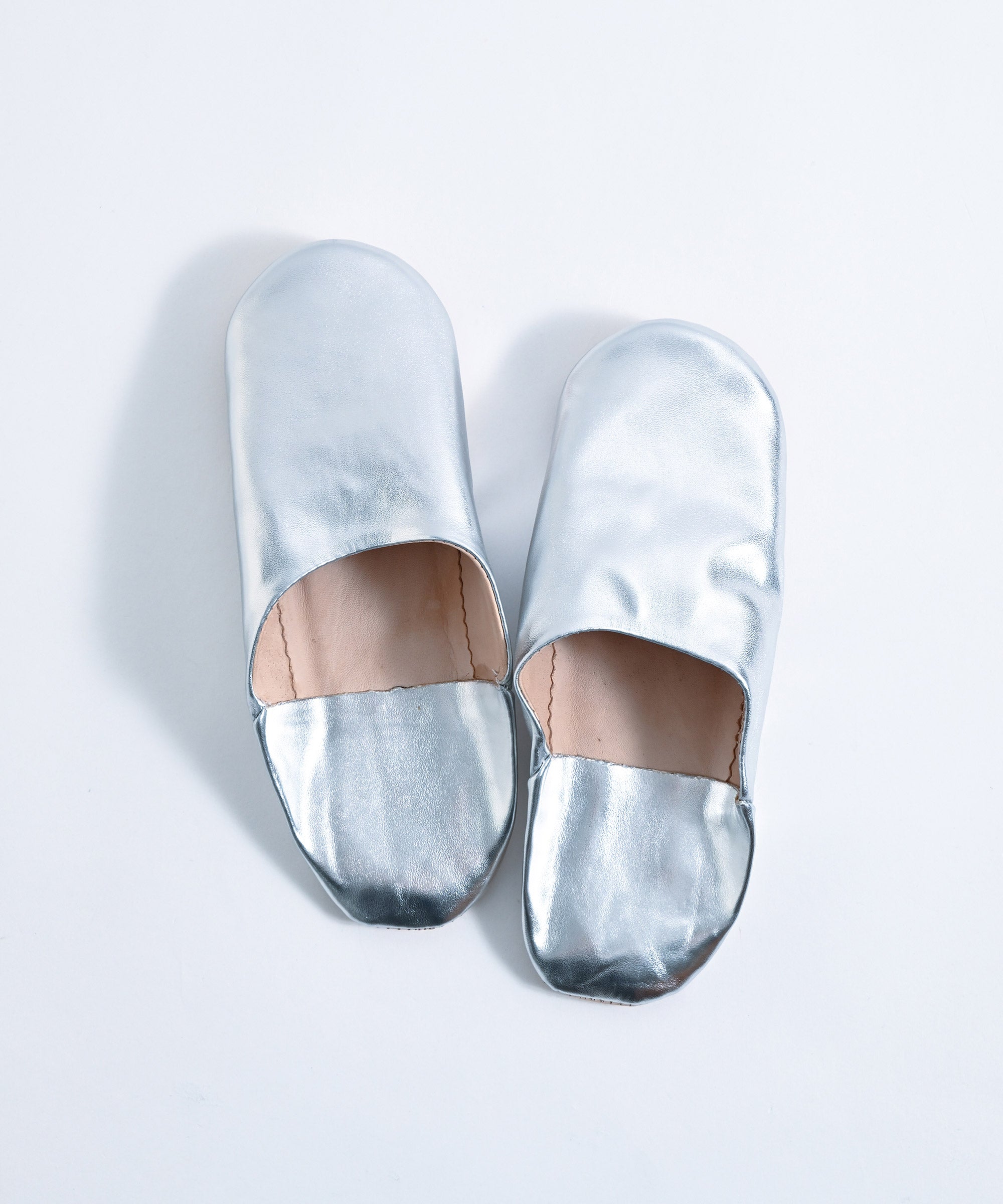 [数量限定] バブーシュ 無地 スリッパ シルバー