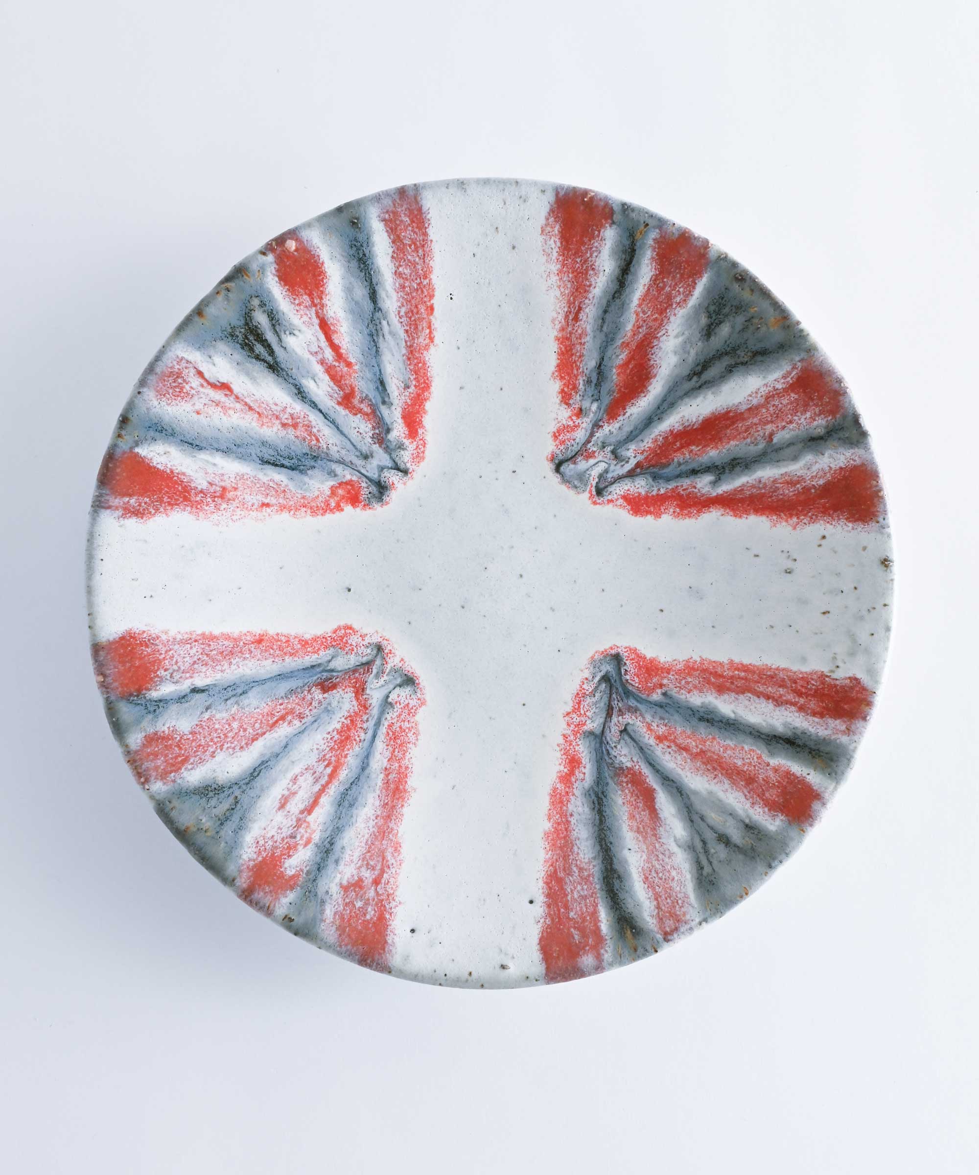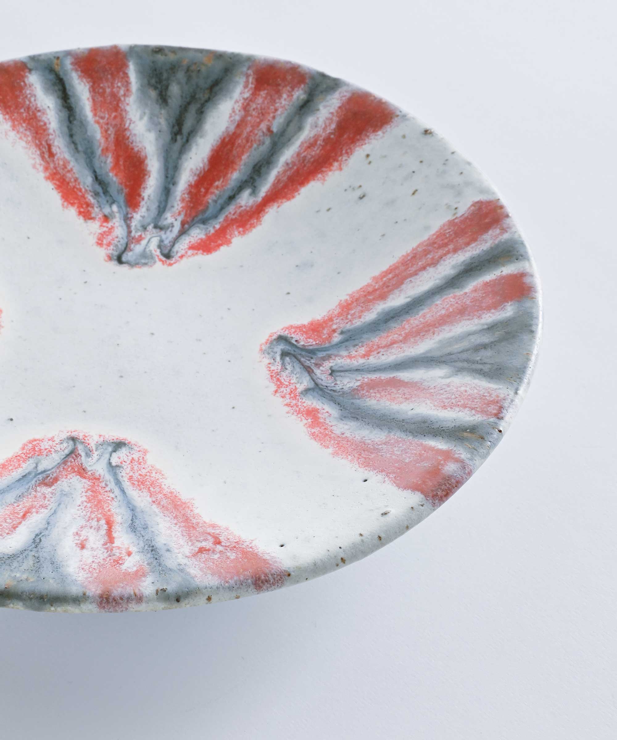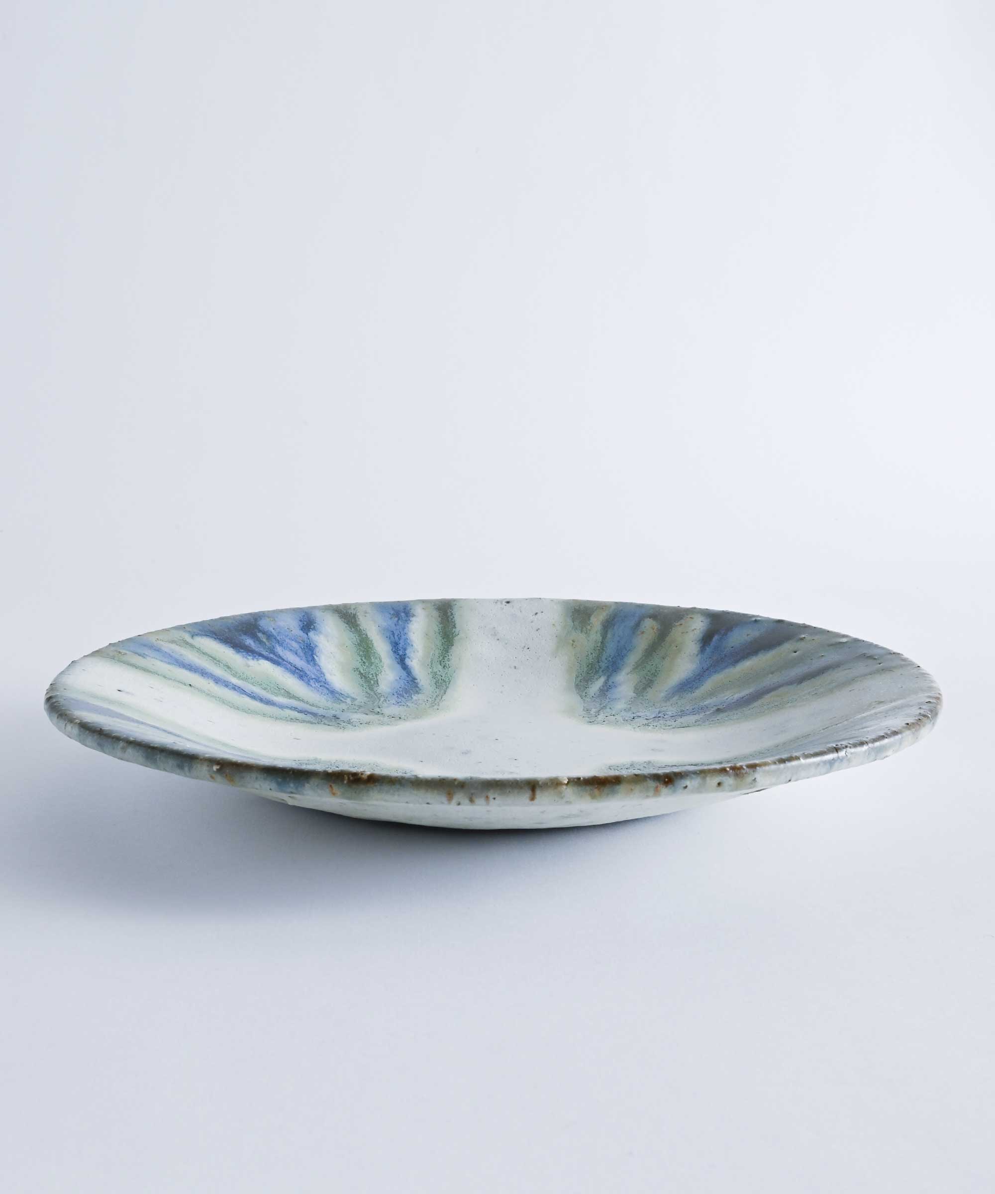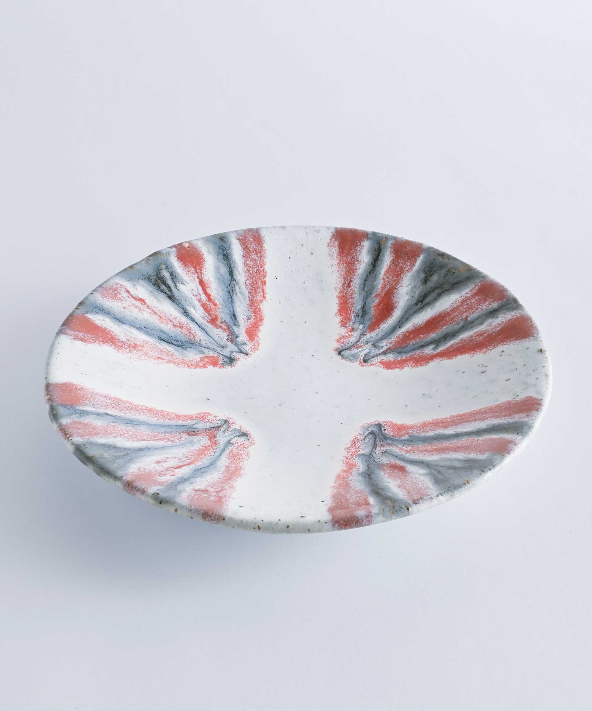 土の質感に大胆な釉薬が美しい1枚。