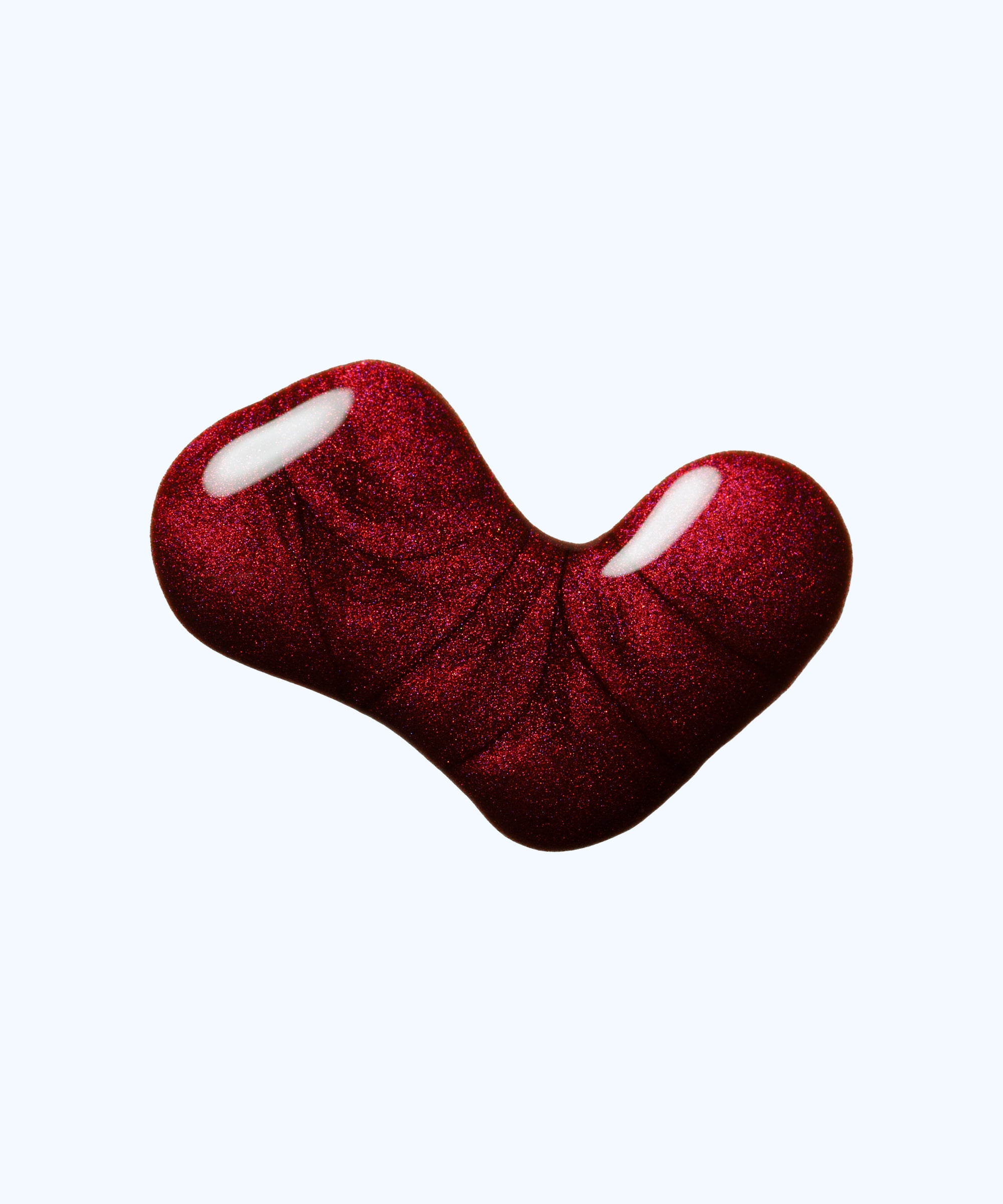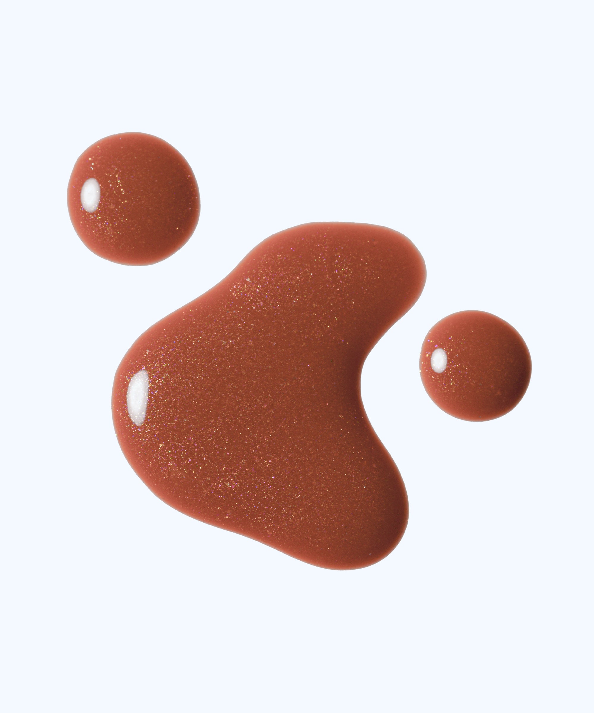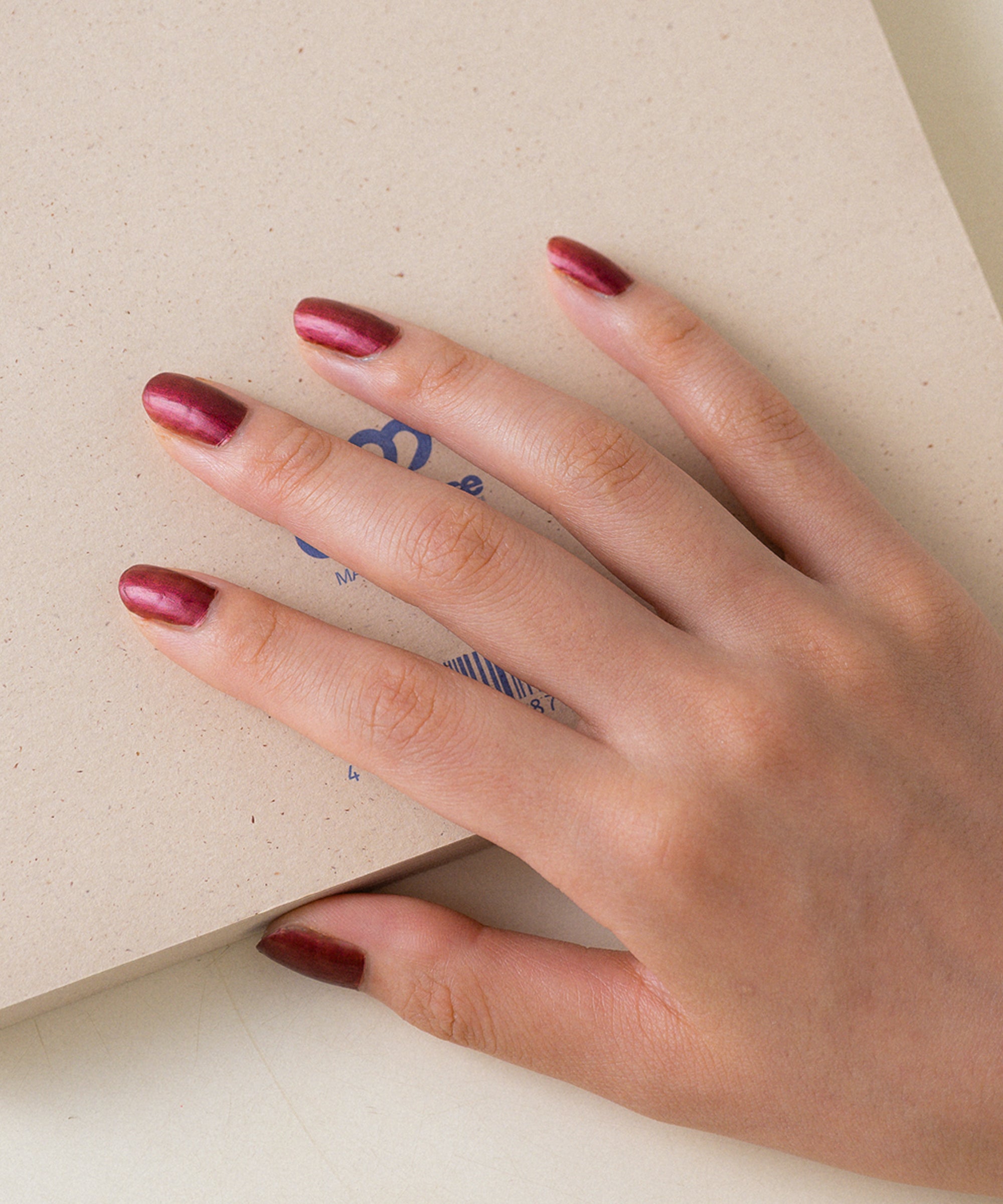 レッドとゴールドのパールをちりばめたトマトスープのようなニュアンスレッド。コーラルやブラウン、ピンクなど、さまざまな色の個性を内包し、ピュアでありながらシックな印象に。