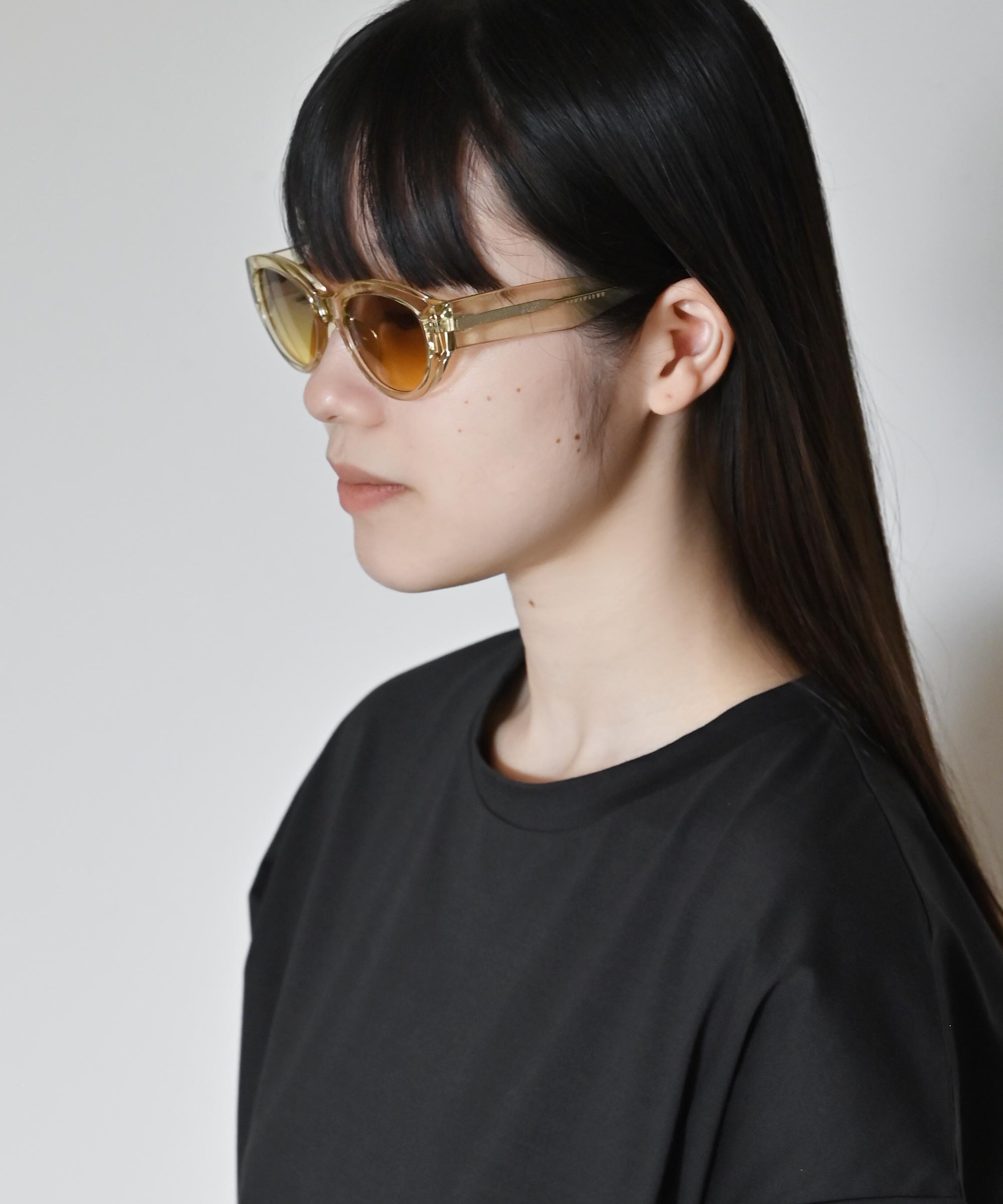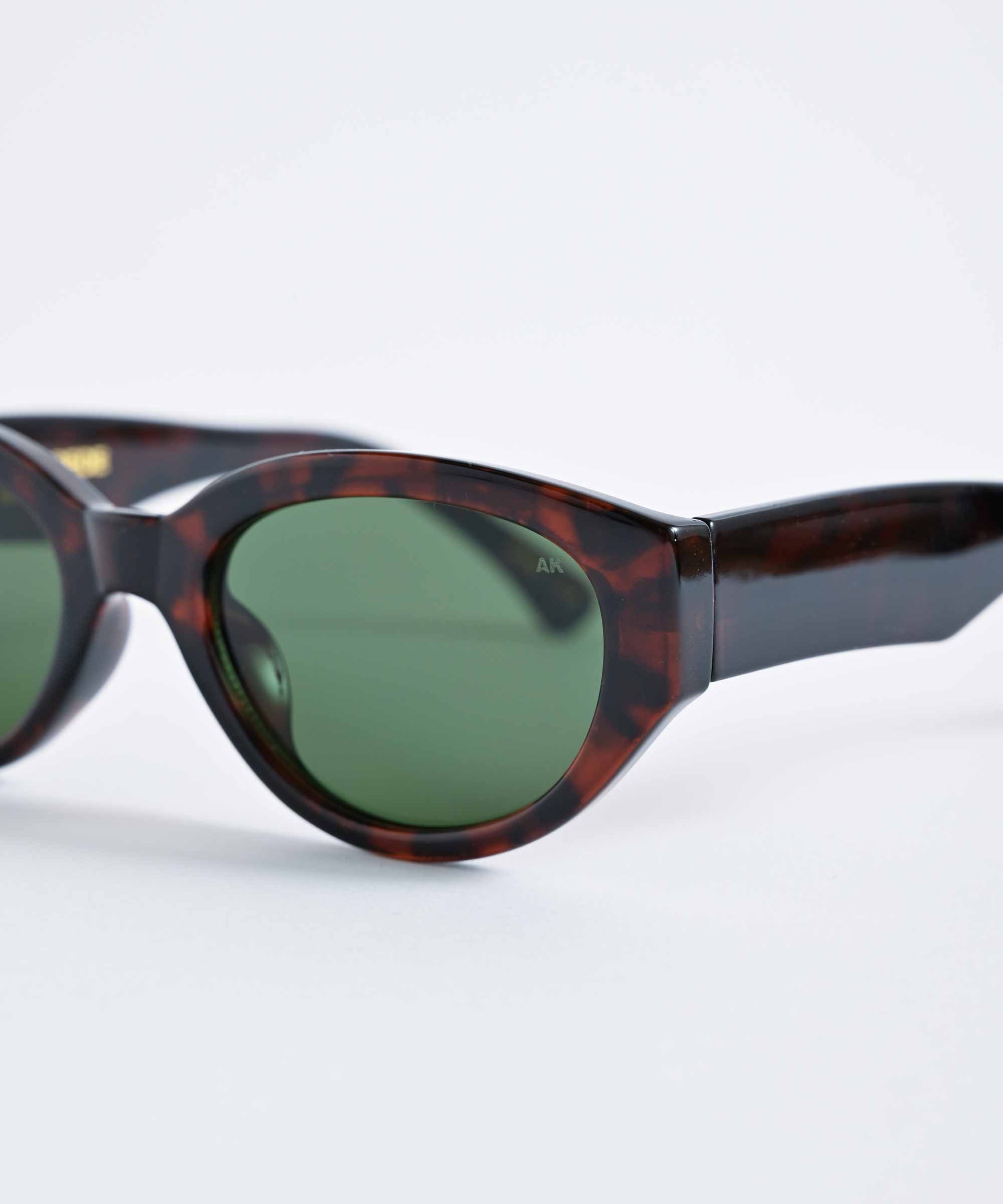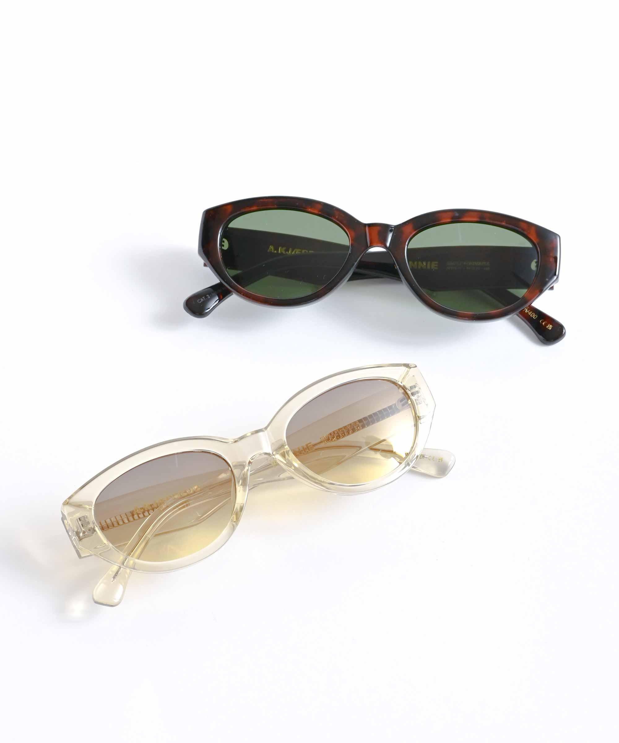 クラシックながらエッジの効いたWINNIEサングラス。横長なフォルムと太めのテンプルがシャープな印象ながらも、外縁が程よくラウンドが効いてクールになりすぎないバランスの取れたデザイン。