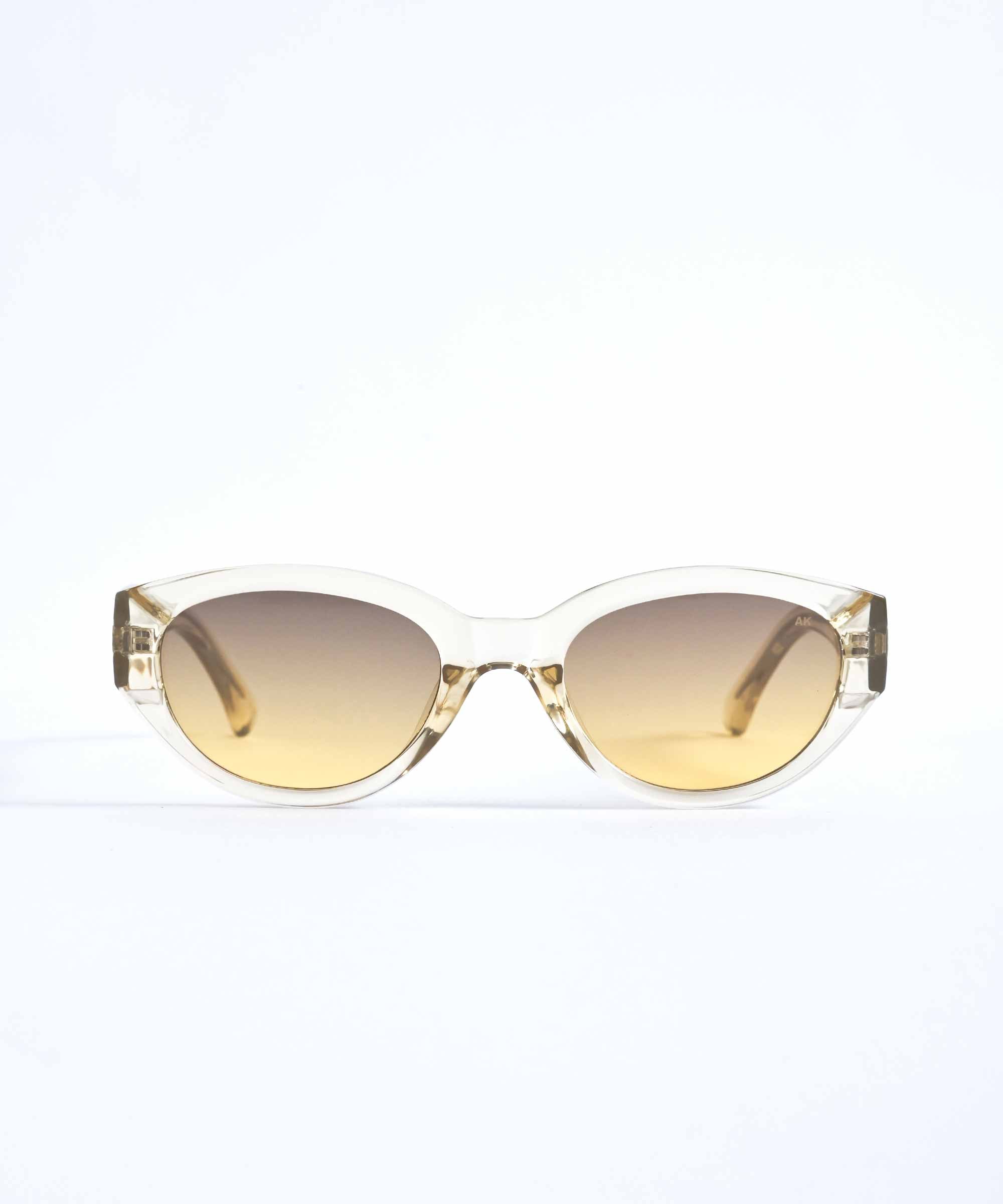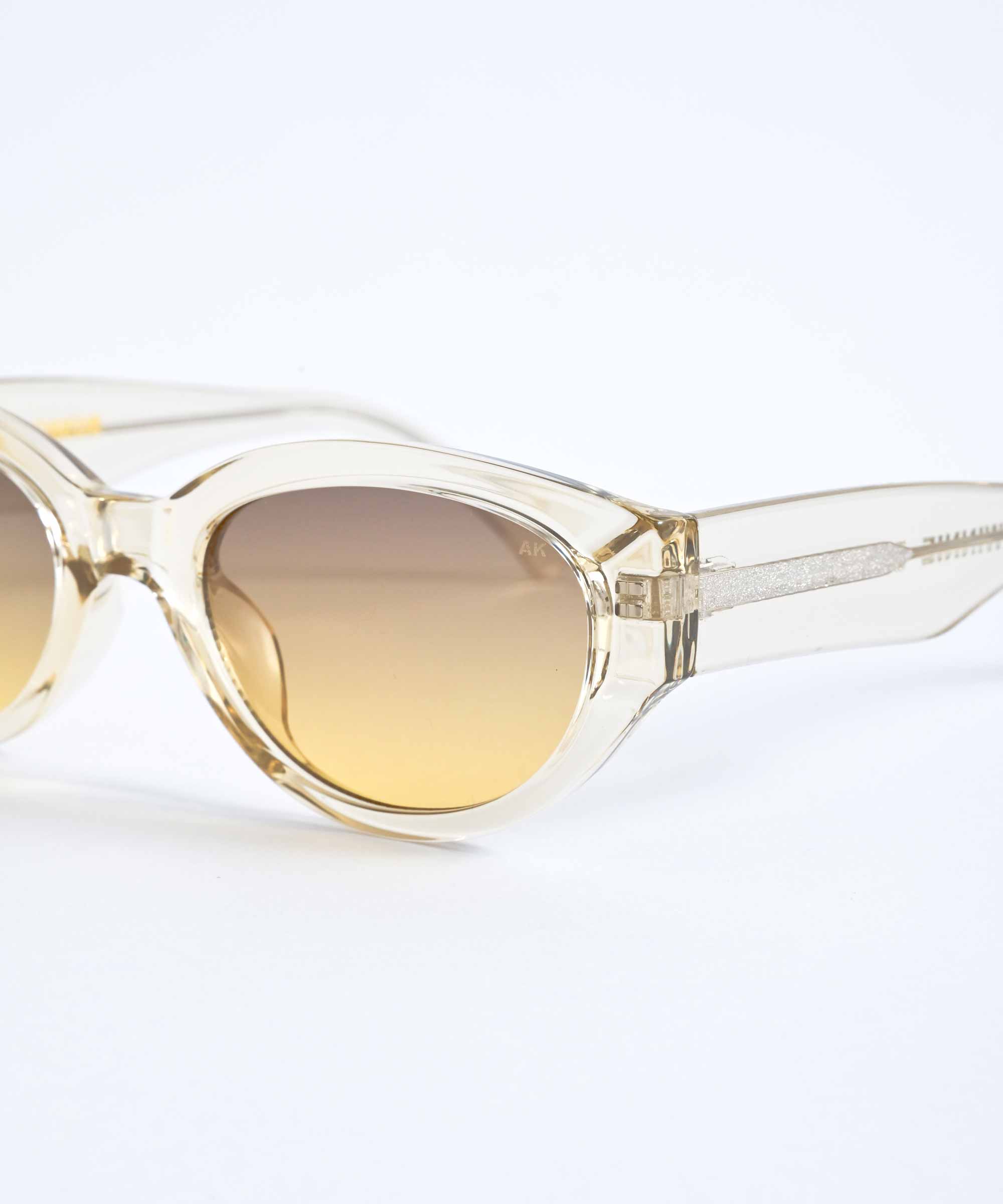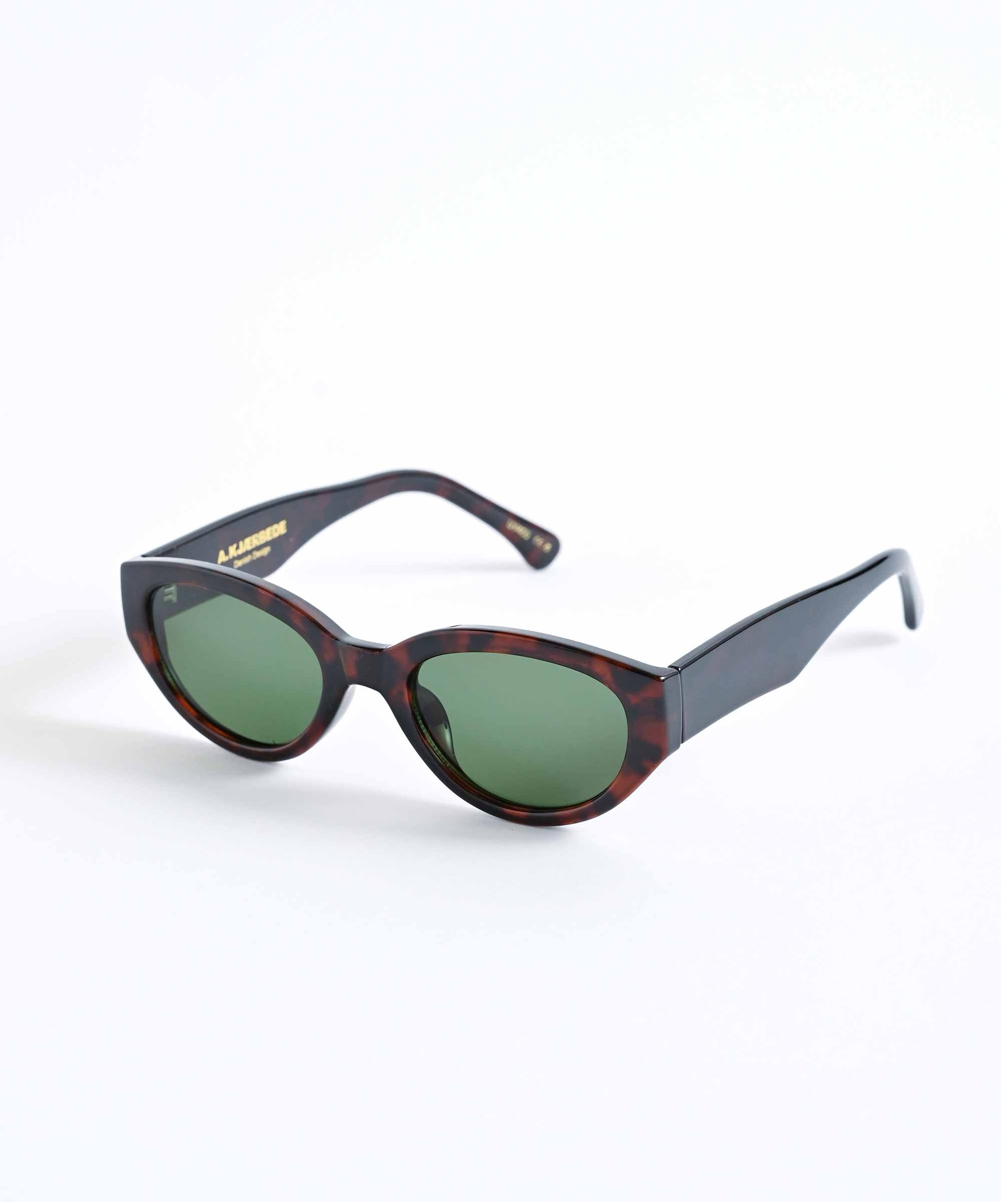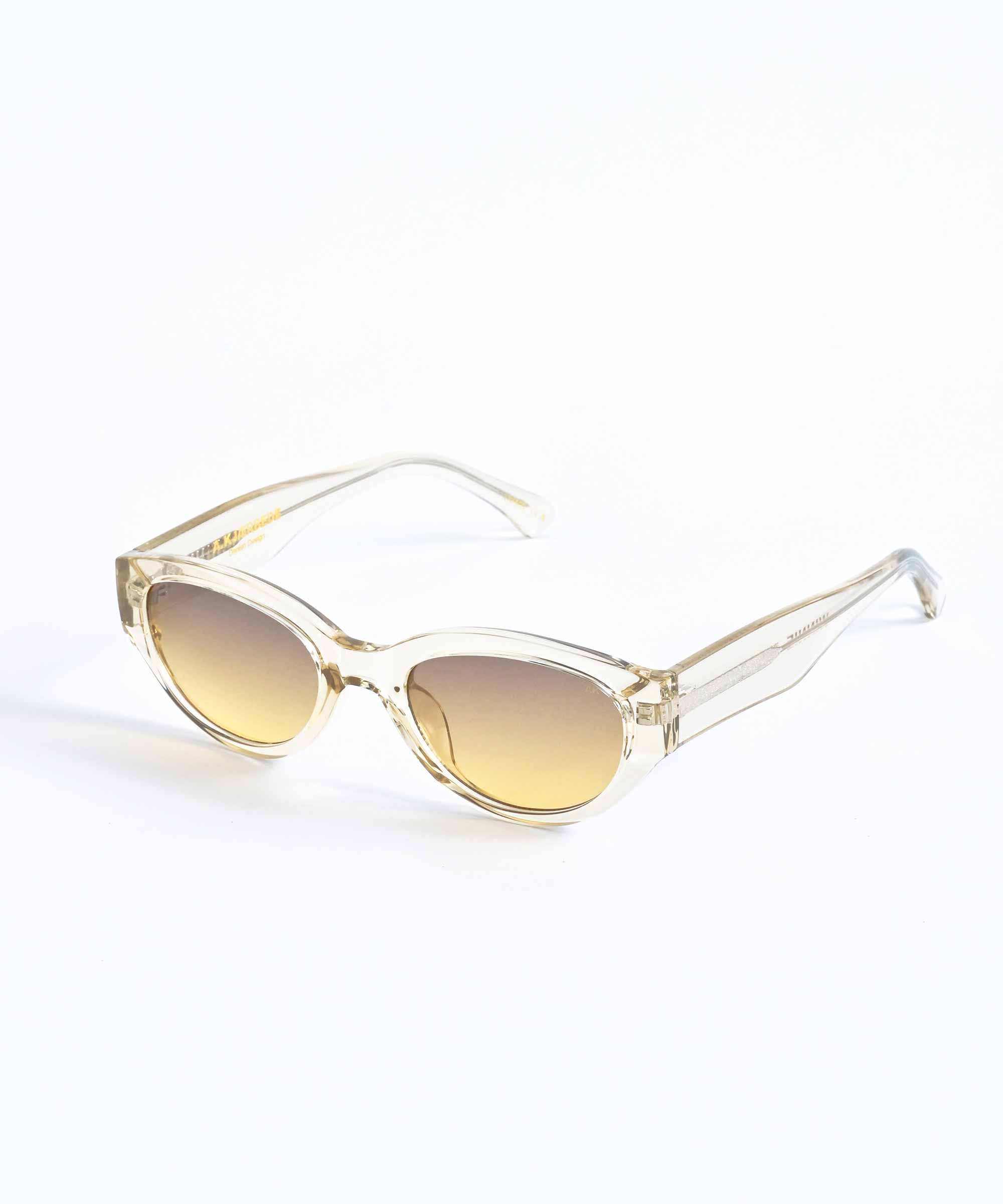 クラシックながらエッジの効いたWINNIEサングラス。横長なフォルムと太めのテンプルがシャープな印象ながらも、外縁が程よくラウンドが効いてクールになりすぎないバランスの取れたデザイン。