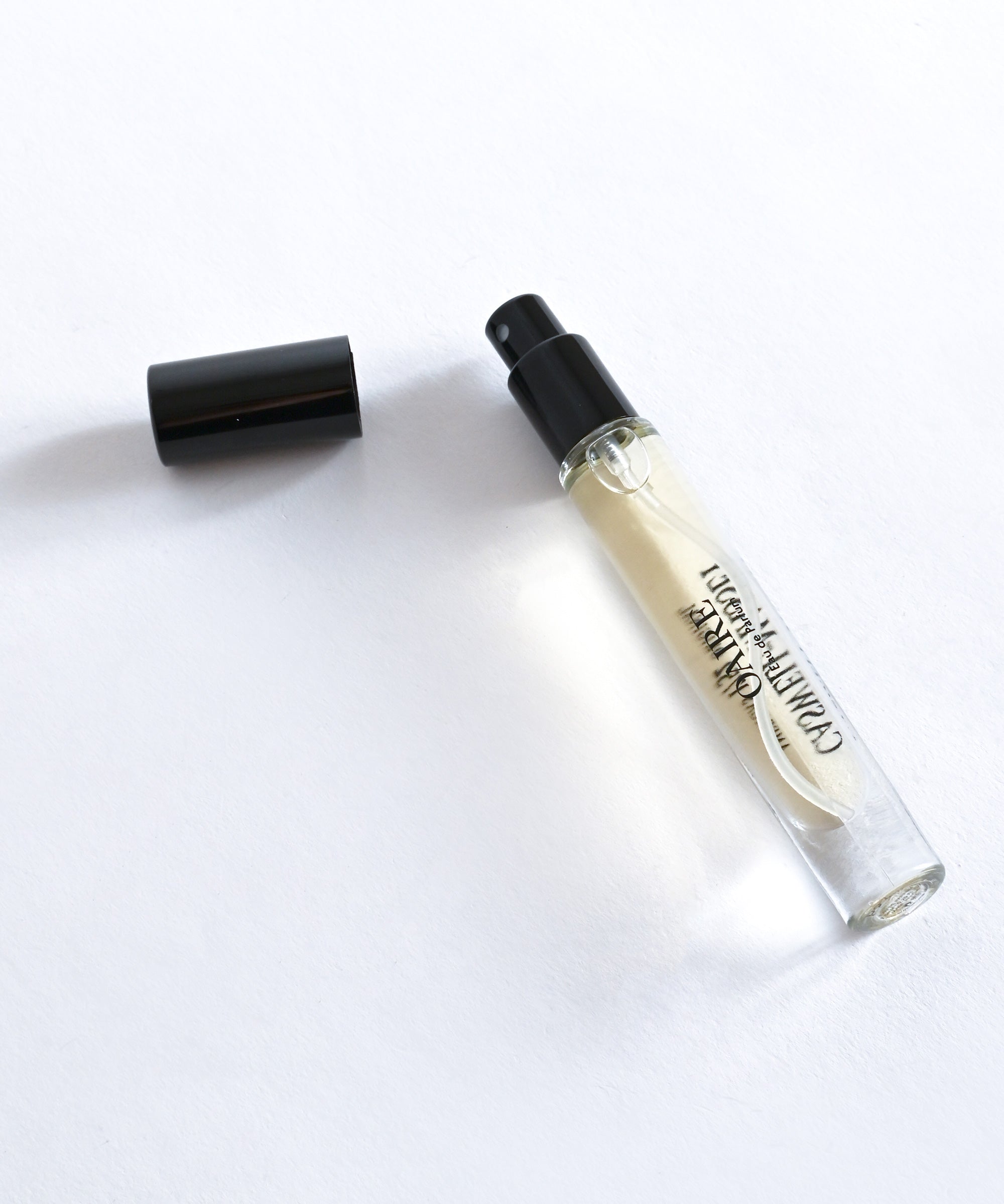 ブラックペッパー、キンモクセイ、シトラスがセージとパチョリのアロマティックなハートの上に鎮座し、ドライダウンするとスエードムスクとアトラスシダーが現れます。